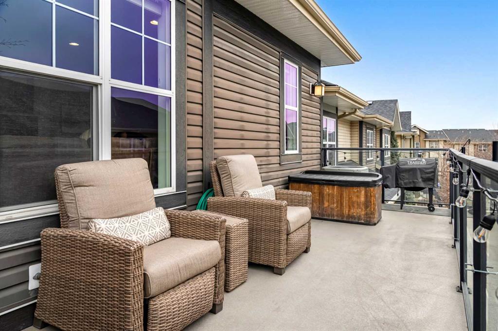 A show home–worthy townhome, this rare, top-floor bungalow hosts over 1,400 square feet of elevated living, complimented by an impressive 180 square-foot balcony designed for effortless entertaining. With three bedrooms, two bathrooms, and an exceptional sense of scale, this home is suited for those looking to right-size, families, or a lock-and-leave retreat. The gorgeous front walkway leads to your fenced, front yard oasis. From the moment you walk in, you will be astonished by the intricate details and opulent selections in this home. Ascend upstairs, to an extraordinary great room, with striking ceilings and a beautiful gas fireplace as the centrepiece. The inspiring family room seamlessly transitions into the formal dining, an unforgettable space to gather. The entire villa has integrated speakers ensuring you can cheer on the flames from every room. This end unit is framed with windows on three sides of the residence, offering a plethora of natural light, under sophisticated Hunter Douglas Blinds, and rest assured, this property features air-conditioning too. The true showpiece of this villa is the expansive outdoor terrace encompassing nearly the entire width of the unit, with a natural gas line, yes, townhome living can be this outstanding. The culinary retreat is exceptional with a notable island as the showpiece! The kitchen is curated with extended cabinetry, designer tile and a state-of-the-art appliance suite featuring a gas range and a four-zone refrigerator with customizable cooling! The bedrooms showcase new carpets and are located at the back of the residence – ideal for privacy. The spacious primary has a lavish three-piece ensuite with granite details and features a boutique worthy walk-in closet! The two additional bedrooms are generous in size with large closets too, and they are just steps to the shared four-piece bath and spacious laundry room, creating comfort for guests and family members. Descend to the lower level where you have flex space or storage area that could be converted into a gym, office, or family room – separate from the main living areas! From here you can access your double car garage – with space for a truck! This townhome is situated on top of the garage – ensuring your vehicles will be warm in the winter months, with additional visitor parking for guests. This pristine villa exudes elegance and has been newly painted in a colour palette that transcends time and trends, always in style, a true classic! This is the crown jewel of one level living, with its unique ability to offer a low maintenance lifestyle while ensuring you do not have to compromise on space when rightsizing, in-fact, the entertaining areas in this home are larger than what you would find in many single-family homes. Located in the desirable Mckenzie Towne, with a plethora of nearby amenities, restaurants and boutiques and close to schools, walking paths, parks, and community rink. This residence is waiting for a connoisseur of fine living to call it home!