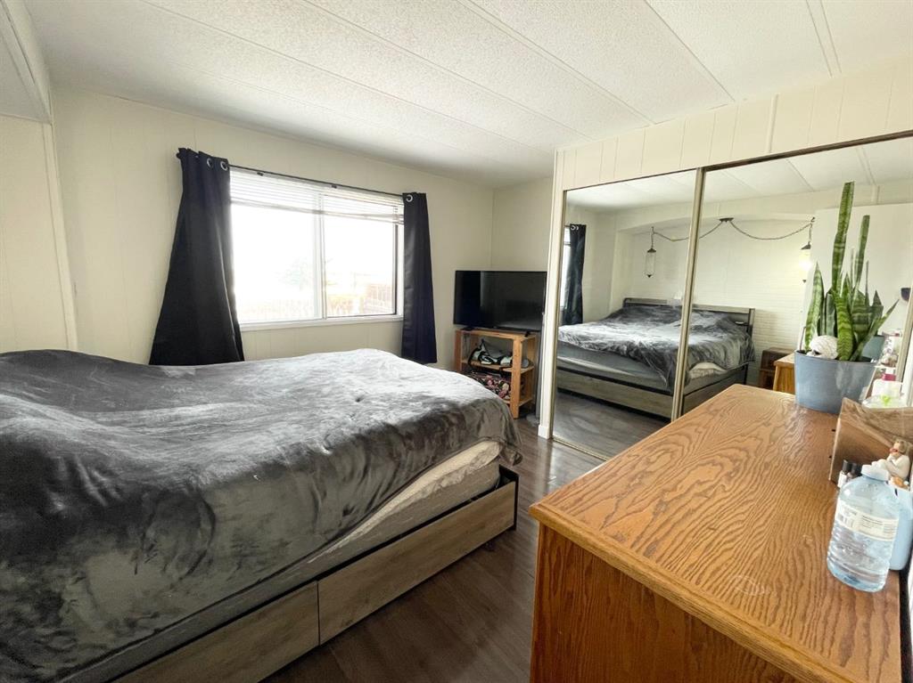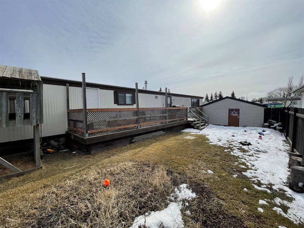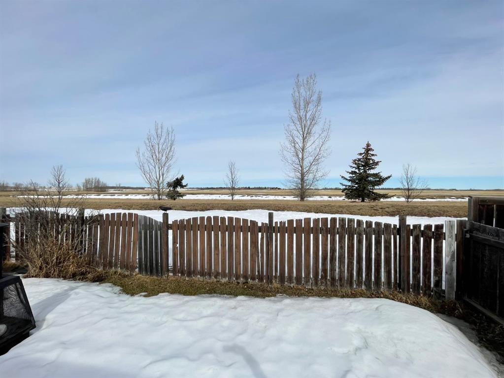 Situated at the edge of town, this home offers the perfect balance of peaceful living and everyday convenience. This property backs onto open farmland, offering tranquil views and wide-open skies at your doorstep. The home features two bedrooms and a full bathroom, including a comfortable primary bedroom. The updated kitchen offers generous counter space and a functional breakfast area, seamlessly flowing into the dining and living spaces to create a bright, open-concept layout. The electric fireplace adds warmth and comfort, making the living room a great place to unwind. Additional highlights include a large deck (8x34), two storage sheds—one at the front of the property (16x19) and another at the back (8x10)—providing plenty of room for tools and equipment.