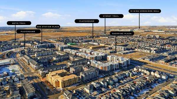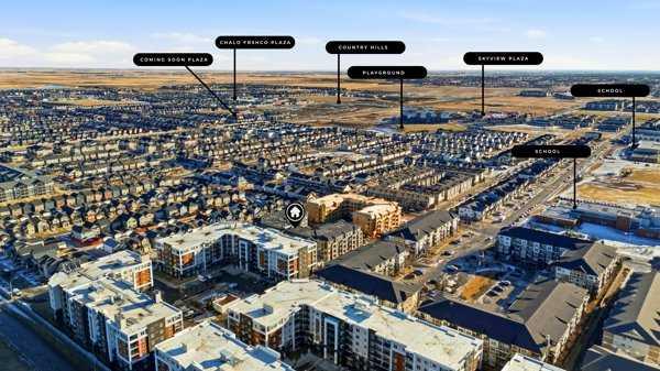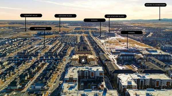 Welcome To This Brand-New, Move-In-Ready End Unit 1 Bedroom + Den, 1 Bathroom Condo Located In The Vibrant And Rapidly Growing Community Of Skyview Ranch In NE Calgary. Thoughtfully Designed For Modern Living, This Bright And Airy Home Features 9-Foot Ceilings And Expansive Windows That Fill The Open-Concept Layout With Natural Light. The Spacious Den, Complete With A Large Window, Offers Excellent Flexibility And Can Easily Be Converted Into A Second Bedroom With The Addition Of A Door. Wide-Plank Luxury Vinyl Flooring And Quartz Countertops Throughout Provide A Sleek, Contemporary Finish, While The Fully Upgraded Kitchen Showcases Stainless Steel Appliances, An Over-The-Range Microwave, Soft-Close Cabinetry, A Pantry, Quartz Countertops, And A Convenient Breakfast Bar—Perfect For Casual Dining, Working From Home, Or Entertaining. The Kitchen Flows Seamlessly Into The Living And Dining Areas, Creating A Comfortable And Inviting Space. This End Unit Offers Generously Sized Rooms And A Modern 4-Piece Bathroom Featuring Quartz Countertops And Quality Finishes, Along With In-Suite Laundry, Upgraded Designer Window Coverings, And A Large Private Balcony Complete With A BBQ Gas Line—Ideal For Outdoor Relaxation And Entertaining. The Property Includes Titled Underground Parking And A Titled Storage Locker, Providing Added Convenience And Value. Located In A Newly Constructed Building, Residents Benefit From Low-Maintenance Living With Close Proximity To Shopping, Schools, Public Transit, Major Amenities, Calgary International Airport, And Quick Access To Stoney Trail For Easy Commuting Throughout The City, Along With Secure Underground Bike Storage. Ideal For First-Time Buyers, Professionals, Or Investors, This Turnkey Condo Offers An Excellent Opportunity To Own In One Of Calgary’s Most Desirable And Growing Communities, Providing A Smart Alternative To Renting While Building Equity In A Modern And Well-Connected Location. Please Note: Property Taxes Have Not Yet Been Assessed And Additional Units Are Available—Contact Listing Agent For More Information.