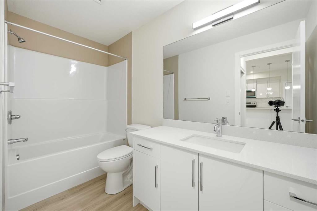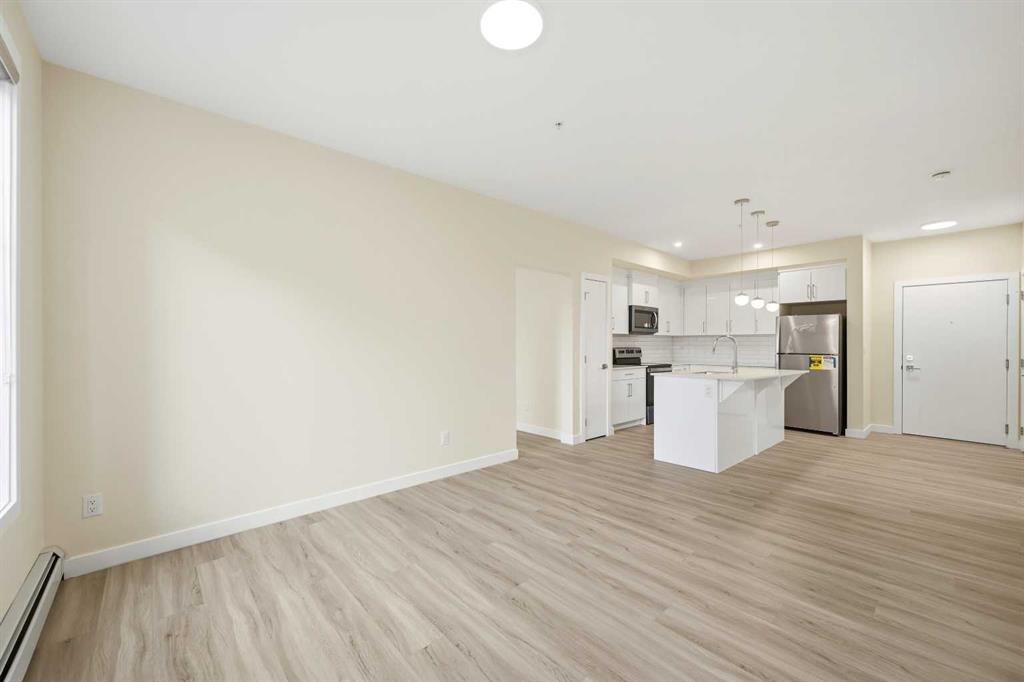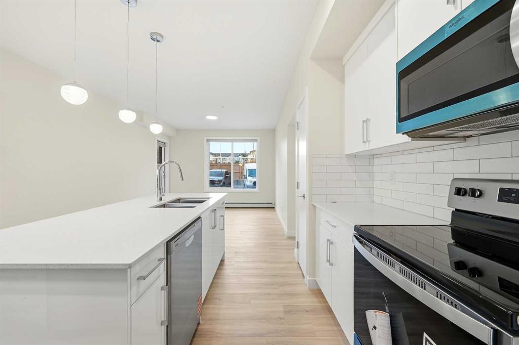 Welcome To This Brand-New, Move-In-Ready 1 Bedroom + Den, 1 Bathroom Condo Located In The Vibrant And Rapidly Growing Skyview Community Of NE Calgary. Thoughtfully Designed For Modern Living, This Bright And Airy Home Features 9-Foot Ceilings And Expansive Windows That Fill The Open-Concept Layout With Natural Light, While The Spacious Den With A Large Window Offers Excellent Flexibility And Can Easily Be Converted Into A Second Bedroom With The Addition Of A Door. Wide-Plank Luxury Vinyl Flooring And Quartz Countertops Throughout Create A Sleek, Contemporary Finish, And The Fully Upgraded Kitchen Is Both Stylish And Highly Functional, Featuring Stainless Steel Appliances, An Over-The-Range Microwave, Soft-Close Cabinetry, A Pantry, Quartz Countertops, And A Convenient Breakfast Bar—Perfect For Casual Dining, Working From Home, Or Entertaining. The Kitchen Flows Seamlessly Into The Living And Dining Areas, Providing A Comfortable And Inviting Space To Relax Or Host Guests. This Unit Offers Generously Sized Rooms And A Modern 4-Piece Bathroom With Quartz Countertops And Refined Finishes, Along With In-Suite Laundry, Upgraded Designer Window Treatments, And A Large Private Balcony With A BBQ Gas Line—Ideal For Summer Entertaining And Enjoying Open Views. The Home Is Complete With Titled Underground Parking, A Titled Storage Locker, And Secure Underground Bike Storage, Providing Exceptional Convenience And Value. Located In A Newly Constructed Building, Residents Enjoy Low-Maintenance Living With Easy Access To Shopping, Schools, Public Transit, Major Amenities, Calgary International Airport, And Quick Connections To Stoney Trail For Effortless Commuting Throughout The City. Ideal For First-Time Buyers, Professionals, Or Investors, This Turnkey Condo Presents An Excellent Opportunity To Own In One Of Calgary’s Most Desirable And Fast-Growing Communities While Building Equity In A Modern And Well-Connected Location. Please Note: Property Taxes Have Not Yet Been Assessed And Additional Units Are Available—Contact Listing Agent For More Information.