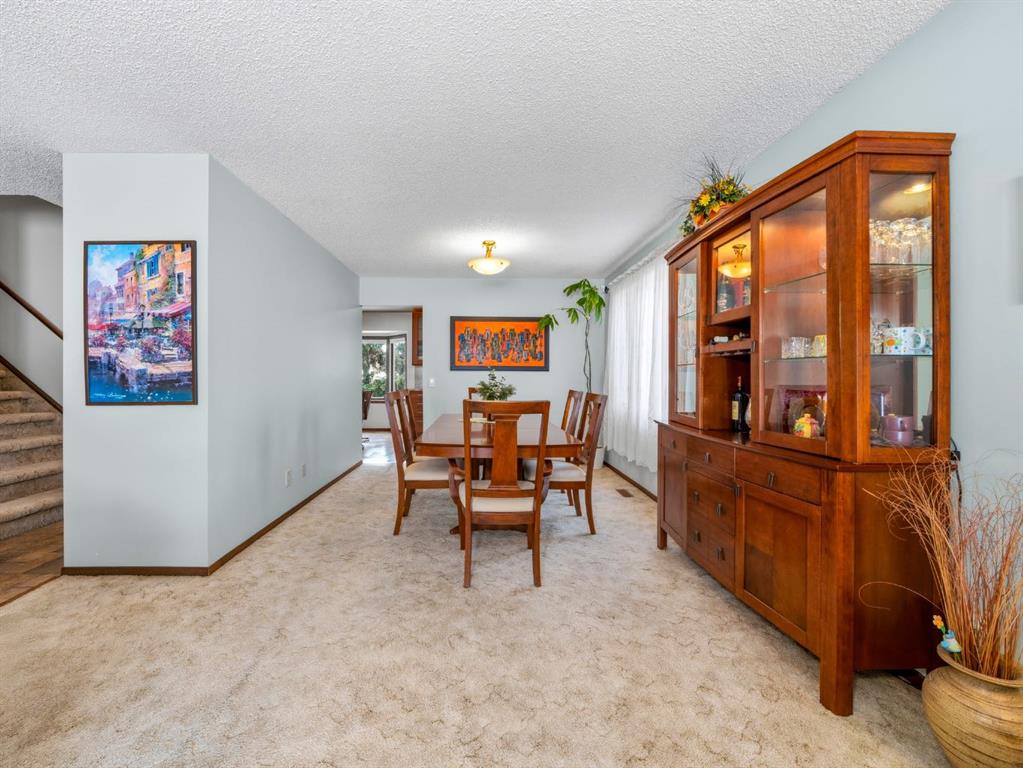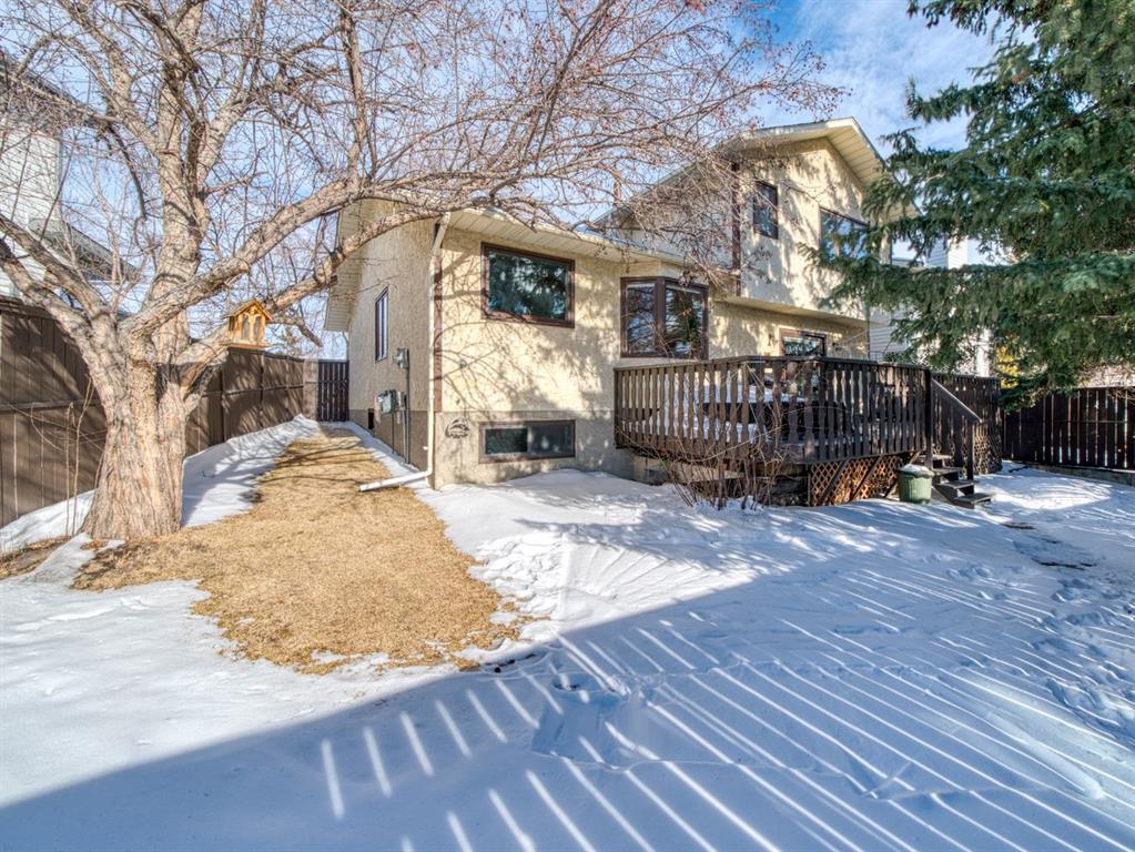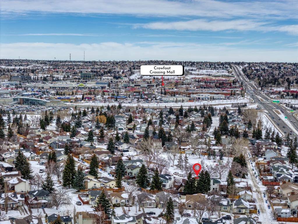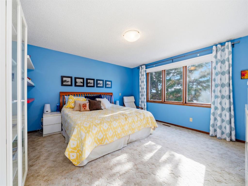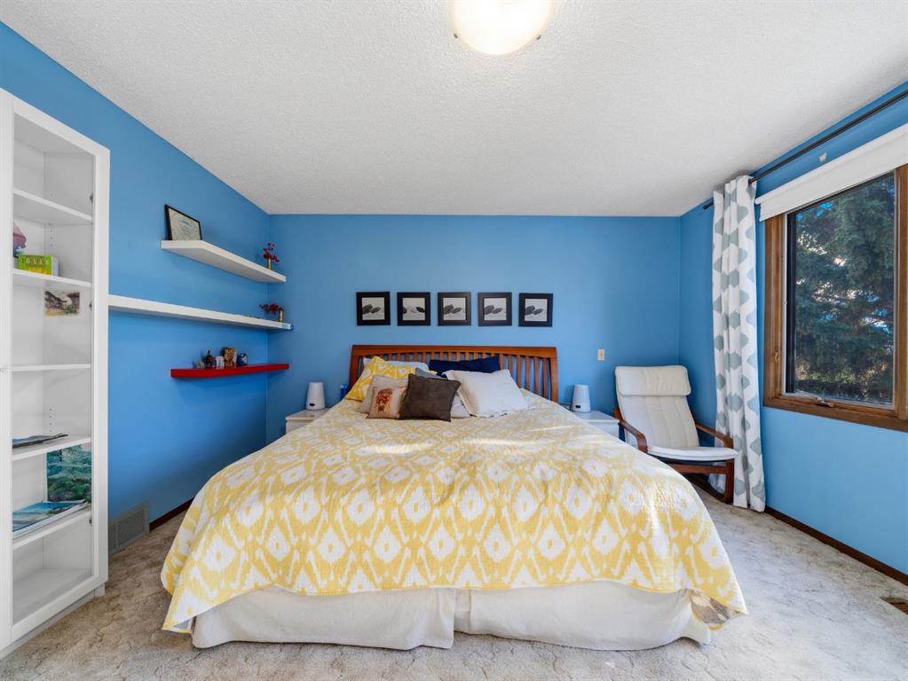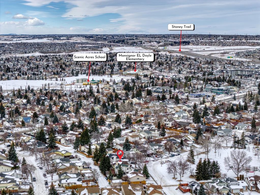 Perfectly situated across from a peaceful park, this Scenic Acres home offers the rare combination of a prime, quiet location and a thoughtfully designed floor plan. Sunlight pours through the bay windows into the main floor, highlighting the inviting living room and spacious formal dining area. The kitchen features updated cabinets, quality stainless steel appliances, granite countertops and a sunny breakfast nook with a bay window overlooking the private, treed backyard. In the adjoining family room, a cozy wood-burning fireplace creates an inviting atmosphere, while an upgraded sliding door leads directly to the outdoor space, creating a seamless indoor-outdoor flow. Solidly built and carefully updated over the years, this home combines original quality with essential modern comforts, including a newer furnace (2022), a replaced kitchen window and family room sliding door, while the remaining windows are original, high-quality Pella windows. The upper level is designed for comfort, featuring a spacious primary suite with a walk-in closet and an ensuite updated with a newer vanity, toilet and professional reglazing of the bathtub. Two additional bedrooms share a 4 piece bathroom, which has also been refreshed with a newer vanity and toilet. The fully finished basement offers a large recreation room and a generous storage area for all your seasonal needs. With quick access to Crowfoot Crossing, the YMCA, the LRT, Nose Hill Park, the Bow River Pathway, Crowchild Trail, Stoney Trail and schools, this home perfectly combines functional updates with an unbeatable location.
