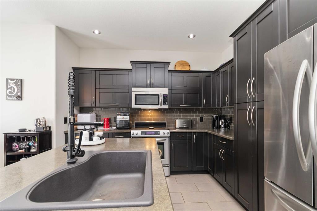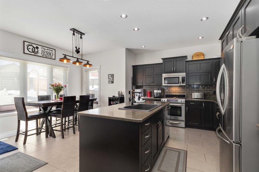 Welcome to 495 Killdeer Way where Location & Layout is SUPERB! This beautifully designed home features 4 bedrooms and 3.5 bathrooms, offering both comfort and functionality. A large entry/boot room, and exposed stairwell will satisfy your homely tastebuds upon entry!! The spacious main floor includes an open concept flow ready for entertaining and family! The welcoming living room complete with a cozy gas fireplace showcases gorgeous custom built in shelving and entertainment unit. The flow from living, kitchen and dining room is the perfect package for the growing family! ( Access to the backyard off the dining room is also perfect to enjoy the sunny days with the kiddos or late night soaks in the hot tub) The kitchen is complete with warm espresso cabinetry, boasting loads of storage, countertop prep space, stainless steel appliances and eat-up kitchen island. The double granite black sink offsets this space along with updated light fixtures! There are banks of windows throughout offering an abundance of natural light too! The 3 upper bedrooms are separated from the main floor by a few steps offering exceptional privacy. The stunning primary suite offers a spacious layout, a luxurious ensuite bathroom with double sinks, and an impressive walk-in closet, jetted tub and separated private lavatory. Enjoy the convenience of a large heated double attached garage along with double driveway and a bright, seamless main floor layout perfect for everyday living and entertaining. A separate entrance through the garage leads to a fully developed basement featuring a kitchenette, one large bedroom, and a full 4-piece bathroom—ideal for guests, income potential or extended family. The backyard has a hot tub recessed into the platform decking & enough room for the pool, toys and swings!