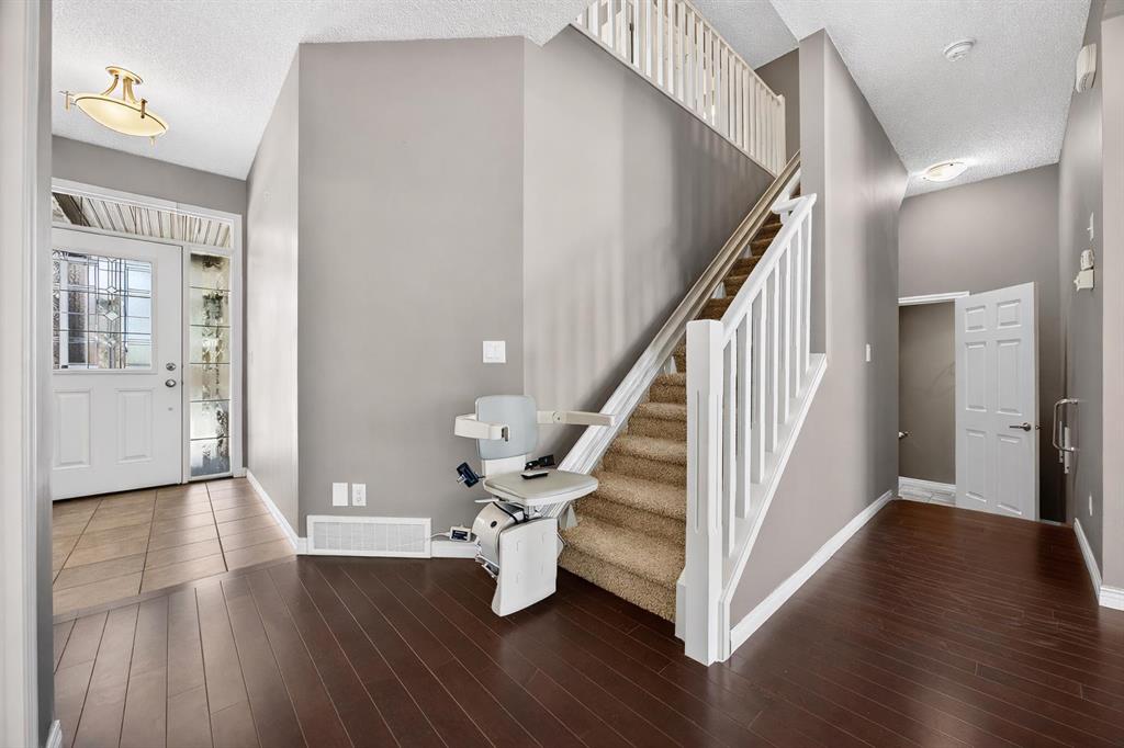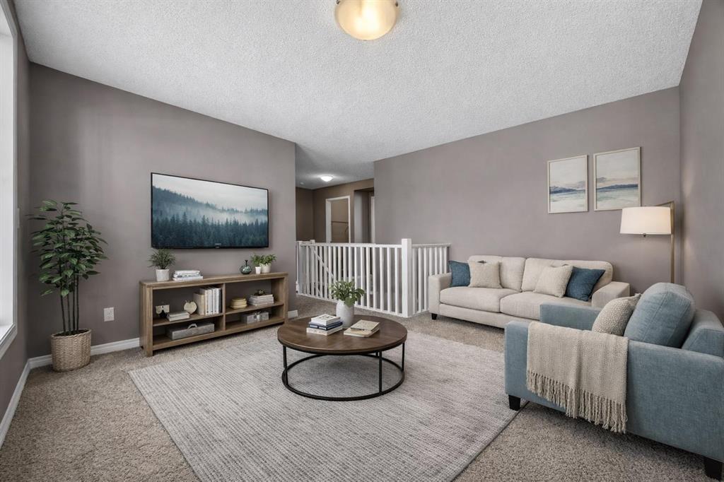 OPEN HOUSE SUNDAY MARCH 29th 12:00pm - 2:00pm. Thoughtful design and everyday comfort come together in this original owner move-in ready home located in a CUL DE SAC in Windsong backing onto GREEN SPACE and a WALKING PATH, delivering privacy with no direct rear neighbours bordering the property and a peaceful SUNNY WEST BACKING setting to enjoy year-round. An open-concept main level unfolds with hardwood flooring and a modern, neutral palette that enhances both light and flow. Relaxation settles naturally in the living area where a gas fireplace anchors the space and corner windows draw in natural light throughout the day. Connection to the outdoors feels effortless from the dining area where the sliding patio door extends gatherings outside, encouraging an easy transition for barbecuing and quiet evenings with beauitful west sunsets. Function and style align in the well-planned kitchen featuring granite countertops, stainless steel appliances (including a gas range!) and a large granite island that invites casual meals and conversation. Adjacent to the mudroom is the powder room and a professionally installed chair lift along the staircase adds accessibility and long-term flexibility, allowing easier movement between levels while remaining seamlessly integrated into the home. Upper level living continues with a spacious bonus room designed for gathering and unwinding, complete with direct access to a private balcony for fresh air and outdoor relaxation. Laundry is thoughtfully positioned on this upper level, bringing added ease to everyday living. A private primary retreat offers a quiet place to recharge, complemented by a walk-in closet and its own ensuite. Two additional bedrooms provide comfortable accommodations and a 4-piece bathroom keeps busy mornings running smoothly. The outdoor living stands out with a fully fenced yard that opens directly onto the walking path and green space, giving kids and pets room to play while preserving a sense of openness and connection to nature, while the rear deck sets the stage for barbecuing and unwinding in a private setting. Access to Chinook Winds Regional Park, pathways, schools and everyday amenities throughout Windsong reinforces a connected and family-friendly lifestyle while keeping commuting routes within easy reach.