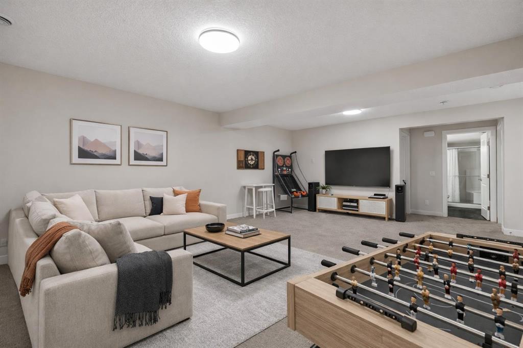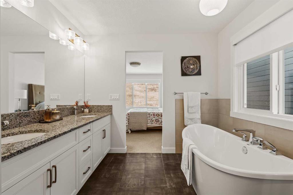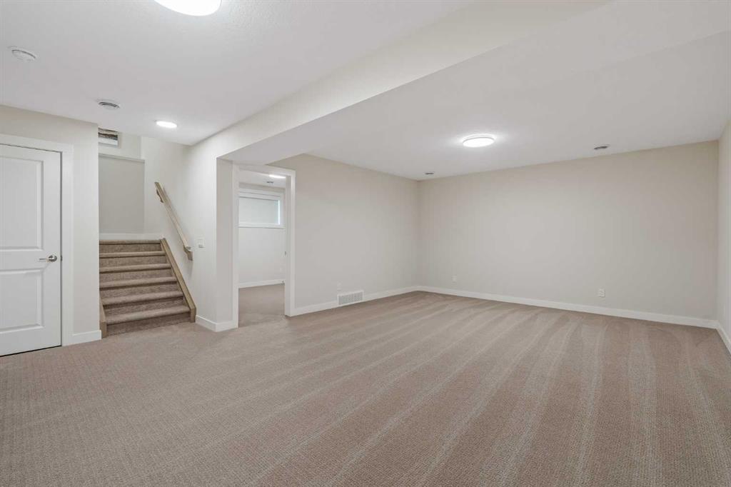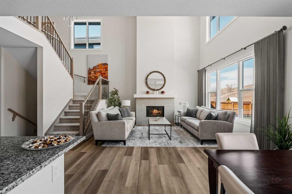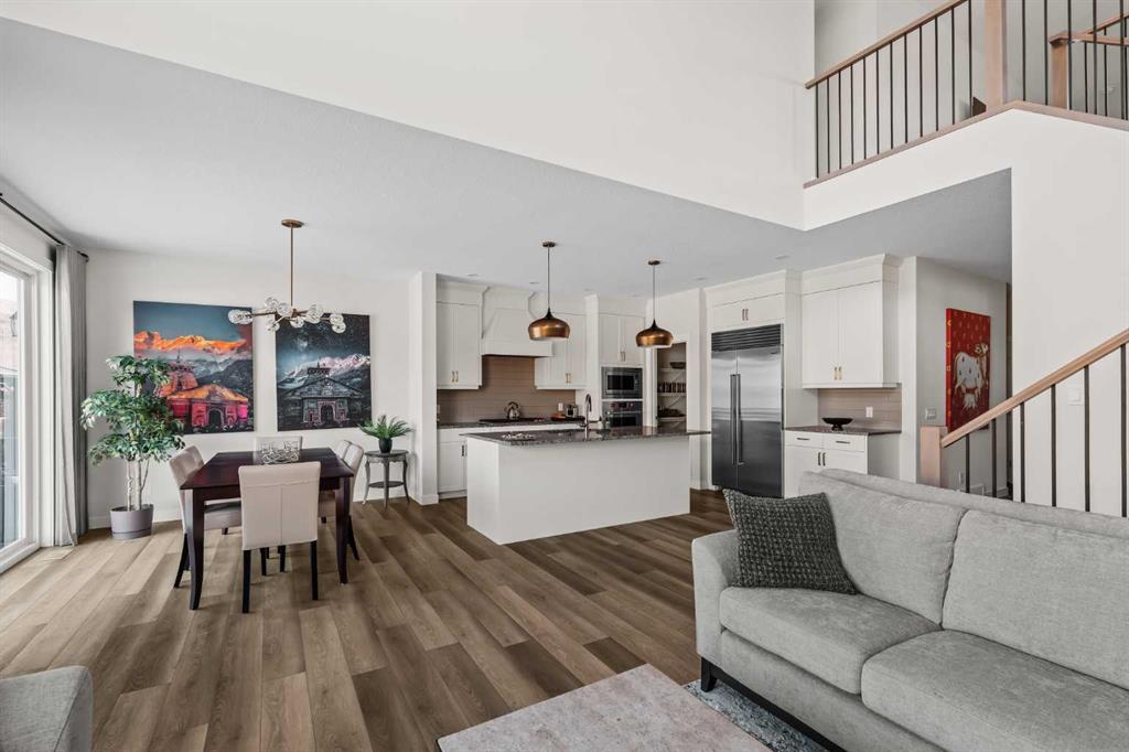 An exceptional opportunity awaits in the coveted community of Riverstone. This stunning, like-new home has been meticulously maintained by its original owners and offers over 3,300 sq. ft. of beautifully developed living space across three levels, featuring 5 bedrooms and 3.5 bathrooms. Tucked away on a quiet cul-de-sac and backing directly onto an environmental reserve with no neighbours behind, this property delivers a rare combination of privacy and natural beauty - just steps from the extensive pathway system along the Bow River. At the heart of the home is a truly show-stopping kitchen, designed to impress and built without compromise. A built-in Sub-Zero refrigerator is paired with a premium Wolf appliance package, including a gas cooktop, built-in wall oven, and microwave - perfectly suited for both everyday living and elevated entertaining. A sprawling walk-through pantry seamlessly connects to the mudroom and double attached garage, offering everyday convenience. The expansive main level is thoughtfully designed for both comfort and entertaining, with the kitchen flowing effortlessly into the dining and living areas. The great room features soaring open-to-below ceilings and is anchored by a central gas fireplace, while oversized windows frame the tranquil reserve beyond, creating a bright, airy space year-round. The dining area opens directly to the rear deck and professionally landscaped backyard, and a private main floor den provides the ideal work-from-home setup. Natural wood and spindle railings lead to the upper level where a central bonus room thoughtfully separates the primary retreat from the secondary bedrooms. The expansive primary suite overlooks the escarpment, offering peaceful views, complete privacy, and beautiful morning light. It is complemented by a large walk-in closet and a luxurious five-piece ensuite featuring dual vanities, a tiled shower, a soaker tub, and a private water closet. Two additional bedrooms - each over 14' x 10' - a well-appointed main bathroom with dual sinks and a walk-in shower, and a spacious laundry room with a sink complete the upper level. The professionally developed basement adds incredible versatility, featuring a large recreation room, two additional bedrooms, a full bathroom, and a utility room with ample storage. Completing this move-in ready property is a large deck that overlooks the backyard and green space. The professionally landscaped yard offers the perfect outdoor living space with grass and a rock garden completed with trees and shrubs. A rare offering in one of Calgary’s most sought-after natural communities, this is Riverstone living at its finest.