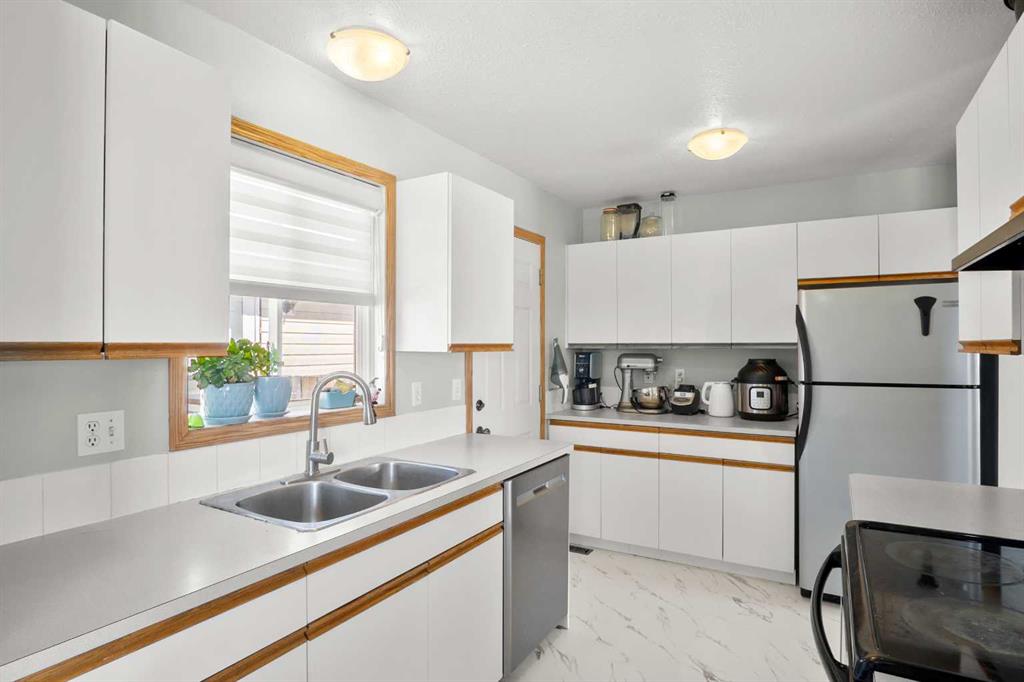 Welcome to this bright and inviting detached bungalow, perfectly suited for first-time homebuyers or savvy investors! Nestled on a quiet street in the vibrant community of Didsbury, this 3+1 bedroom, 2 full bathroom home offers both comfort and opportunity. Step inside to a sun-filled main floor featuring large windows that flood the space with natural light. The living room and kitchen are enhanced with durable vinyl plank flooring, creating a modern and low-maintenance living area. Three generously sized bedrooms complete the main level. The fully developed basement expands your living space with a large rec room, a fourth bedroom, full bathroom, and convenient laundry area—ideal for growing families or potential rental flexibility. Enjoy the Southwest-facing backyard, complete with a spacious deck that captures plenty of sunshine—perfect for relaxing or entertaining. The low-maintenance landscaping makes upkeep a breeze, while the side drive parking pad and ample yard space offer the potential to build a future garage. Located close to parks and scenic walking paths, this home combines small-town charm with everyday convenience. Whether you're stepping into homeownership or adding to your investment portfolio, this is a fantastic opportunity you won’t want to miss! Current Tenants have been excellent and would love to stay making this an easy option for investors.