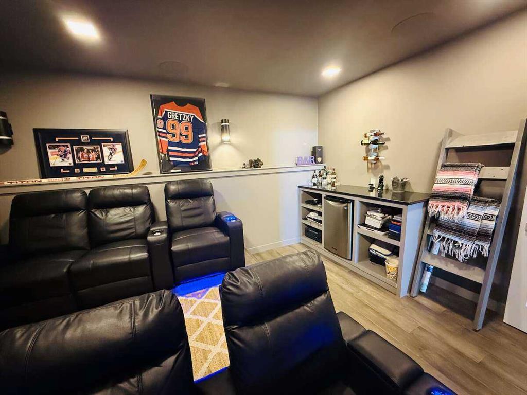 *** For more information, please click the "More Information" button. *** Imagine acreage living… without leaving town. We are listing our one of a kind custom dream home! This exceptional Sexsmith home offers the space, privacy, and views you’d expect from the country—paired with the convenience of town living. There are way too many features and extras to list. Built in 2018, this custom home is 1911 sq ft up and 1886 sq ft down. Over 3600 sq ft of developed living space. 5 bedrooms as well as a large theatre room that could serve as a 6th bedroom if desired. The theatre room includes a 7 speaker surround system installed by audio concepts. This home has high end finishing throughout. Quartz counters, LED lighting, hand scraped hardwood flooring and tile throughout, solid core doors to name a few. Every closet has custom wood shelving built in. It has many upgrades including a two level composite deck, a two level stamped concrete pad with firepit, a custom shed built under the deck big enough for your side by side, and extensive curbing and landscaping in the back. The garage is a heated, triple car with a folding staircase leading you up to the above garage storage level. It has plenty of parking for your RV with a 17’ by 85’ decorative gravel pad with a 30Amp plug. Other features include Central air conditioning, underground sprinklers, hot water on demand and more. 200Amp electrical service. All of this sits on a 1/2 acre corner lot, fully fenced that overlooks a farmers field. These are just some of the highlights of this home, do not miss out on this beauty!