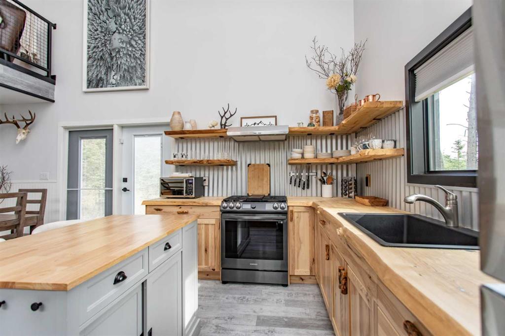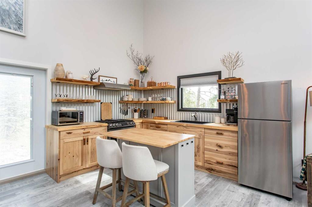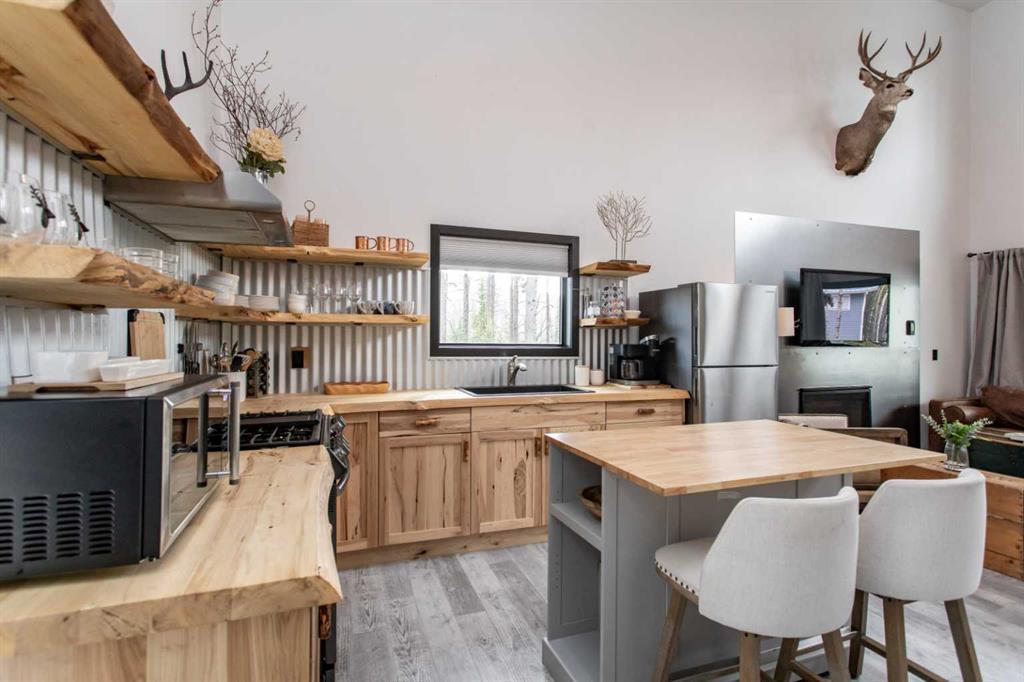 This property has operated as a successful county-approved short-term rental and is being sold turnkey, fully furnished and equipped. The property can be easily managed remotely, with security, water, sewer and propane systems that can all be monitored and managed off-site. 2026 bookings are already showing strong consistent growth compared to 2025. Welcome to a truly unique mountain retreat located in the growing recreational destination of Nordegg. Set on a rare 1.46-acre private, flat and fully usable treed lot, this beautiful cabin offers privacy, functionality, and year-round enjoyment in one of Alberta’s most stunning and up-and-coming outdoor playgrounds. Built in 2019, this 1.5 storey cabin features an open concept layout with soaring ceilings, large windows, and a warm modern rustic design. The custom poplar kitchen with live-edge countertops, open shelving, new stainless steel appliances with propane range and centre island which creates a space that is both functional and visually stunning. The main living area includes a cozy propane fireplace, perfect for relaxing after a day outdoors. The home offers 2 good sized bedrooms, 1 full bathroom with custom cedar shower, main floor laundry, and a loft space for additional sleeping or living area. Built for efficiency and year-round comfort, the cabin features 2x6 wall construction with additional exterior insulation, an ICF foundation, tankless hot water, air conditioning, a 2200-gallon water cistern, and septic tank with heat-traced lines. The property itself truly sets this listing apart. The lot is significantly larger and more usable than many surrounding properties, with flat topography, mature trees for privacy, a large parking area, camping space, storage shed, and future building potential for a garage or additional structure (subject to approval). The property has been fire-smarted with deadfall removed and landscaping completed with fresh gravel throughout. Enjoy the outdoor living areas including the composite front deck and secluded fire pit area near the rear of the property, all surrounded by beautiful mature forest. Whether you’re looking for a private recreational property, a mountain getaway, or an investment opportunity, this Nordegg property offers a rare combination of location, land, and cabin design. GST may be applicable to the sale and is in addition to the purchase price.