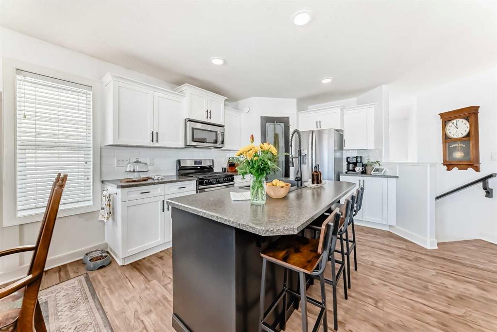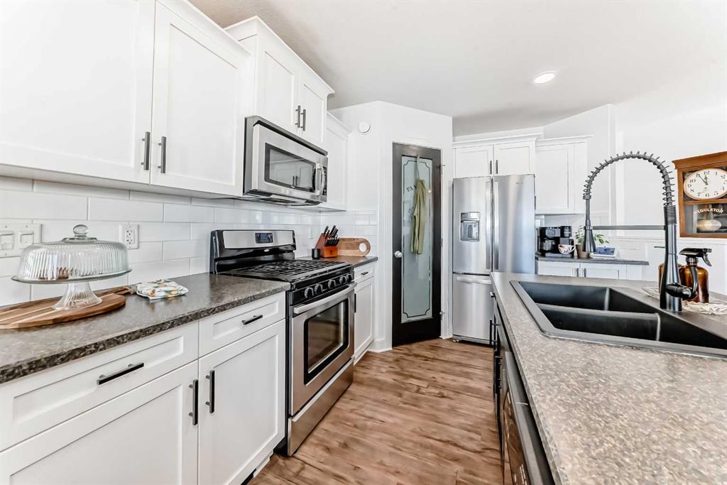 Tucked away on a quiet street that backs onto green space, in one of the most desirable areas of town, this stunning home offers the perfect blend of comfort, space, and location. From the moment you step inside, you’ll be welcomed by a stunning upper-level living room filled with natural light, creating a warm and inviting atmosphere for everyday living and entertaining. The spacious kitchen is thoughtfully designed with ample cabinetry and workspace, seamlessly connecting to a designated dining area that’s ideal for family meals and gatherings. The living room boasts a cozy fireplace with custom bead board accent, for an intimate setting. The main level features a generous bedroom along with a comfortable primary bedroom, complete with a walk-in closet and a private ensuite. A bathroom adds convenience and completes this level. The flooring has recently been replaced with durable vinyl plank flooring. The fully developed basement expands your living space with two additional bedrooms, another full bathroom, and a large family room that offers flexibility for a second living area, recreation space, or home theatre. A dedicated laundry room with overhead shelving provides practical storage and organization. Outside, you’ll appreciate the attached double garage and the expansive backyard, featuring a beautiful deck that overlooks the newly fenced yard, with no rear neighbours, offering added privacy and a peaceful outdoor setting. This is a fantastic opportunity to own a beautiful home in a sought-after neighbourhood.