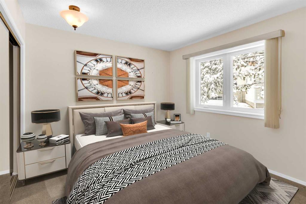 Welcome to this well-maintained end-unit in a desirable 55+ complex, ideally located on the quiet inner side backing onto the clubhouse. Offering over 1,000 sq. ft. of functional living space, this home features a bright living and dining area with large windows (2020), a spacious primary bedroom with 2-piece ensuite, and a generously sized second bedroom with new window (2020). Main floor laundry adds convenience. Numerous updates completed in 2014 include flooring, kitchen, and bathrooms. Additional upgrades include stainless steel fridge (2022) and Poly-B replacement (2023). Enjoy easy access to major routes, Calgary International Airport, Nose Hill Park, and nearby shopping and amenities. Residents have access to a fully equipped clubhouse featuring games room (pool tables, shuffleboard, darts), library, TV lounge, event space with stage, kitchens on both levels, elevator access, and outdoor covered seating. Move-in ready and offering a comfortable, low-maintenance lifestyle in a vibrant community—don’t miss this opportunity!