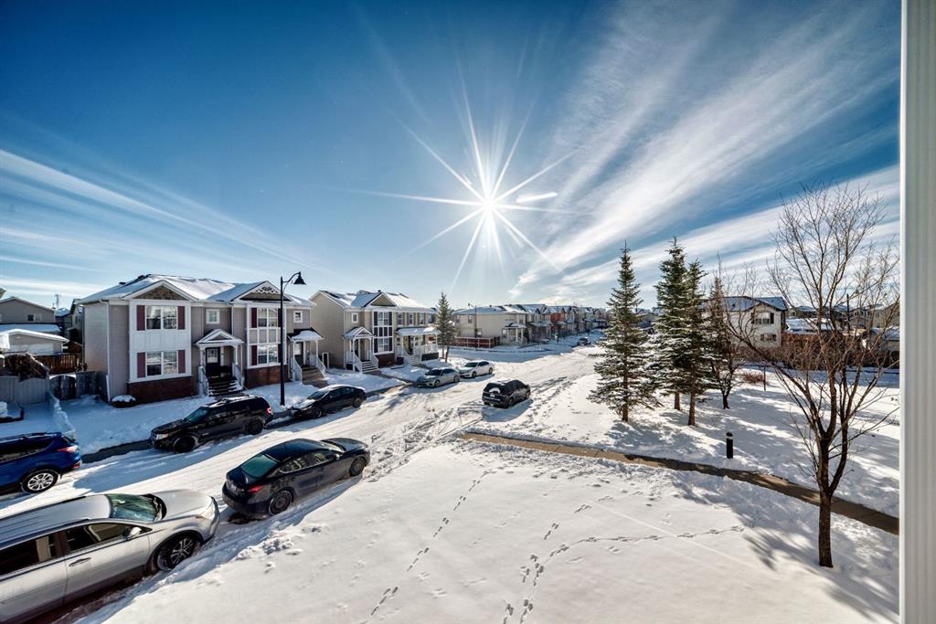 Welcome to this beautiful, bright, and spacious 2-bedroom, 2 full bathroom corner apartment located in the highly desirable community of Taradale. Offering 883.50sq. ft. of well-designed living space, this unit is filled with natural sunlight throughout the day thanks to its corner positioning and large windows in both bedrooms, the kitchen, and living area. The open-concept layout creates a comfortable and airy feel, perfect for both everyday living and entertaining. The primary bedroom features a walk-in closet and private ensuite, while the second full bathroom provides added convenience for family or guests. Enjoy a private balcony with an open view, along with the practicality of in-unit laundry, separate storage, and one assigned parking stall, plus ample street parking. This secure building is ideally situated just steps from everyday amenities, including Taradale Lake, schools, playgrounds, grocery stores, restaurants, and public transit, as well as being close to 80 Plaza. Perfect for first-time buyers, small families, or investors, this well-maintained home offers exceptional value in a vibrant and convenient location.