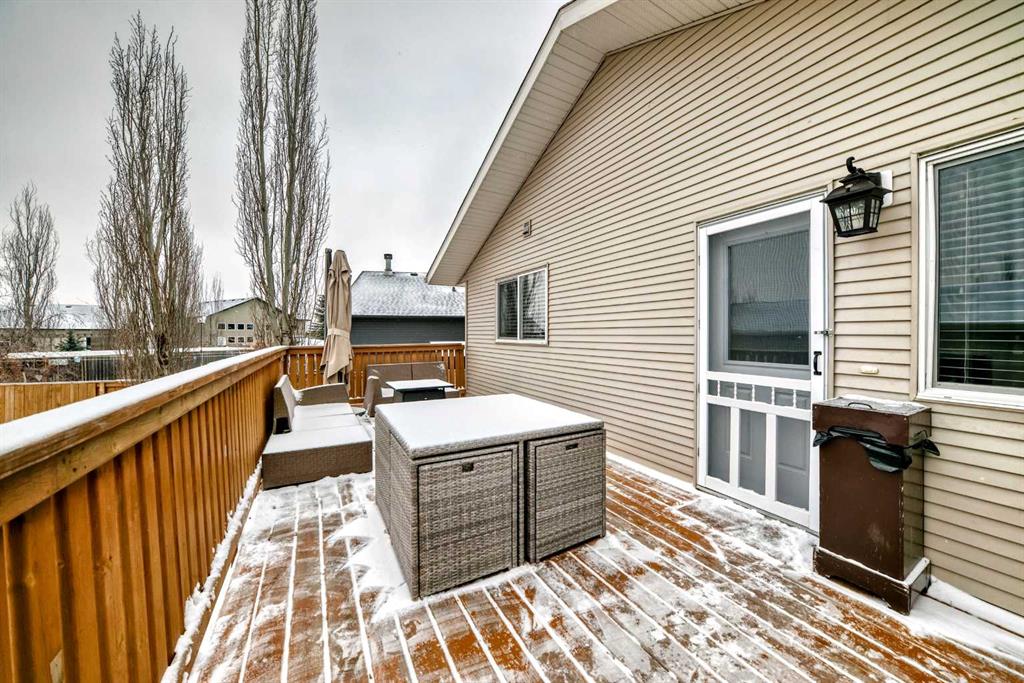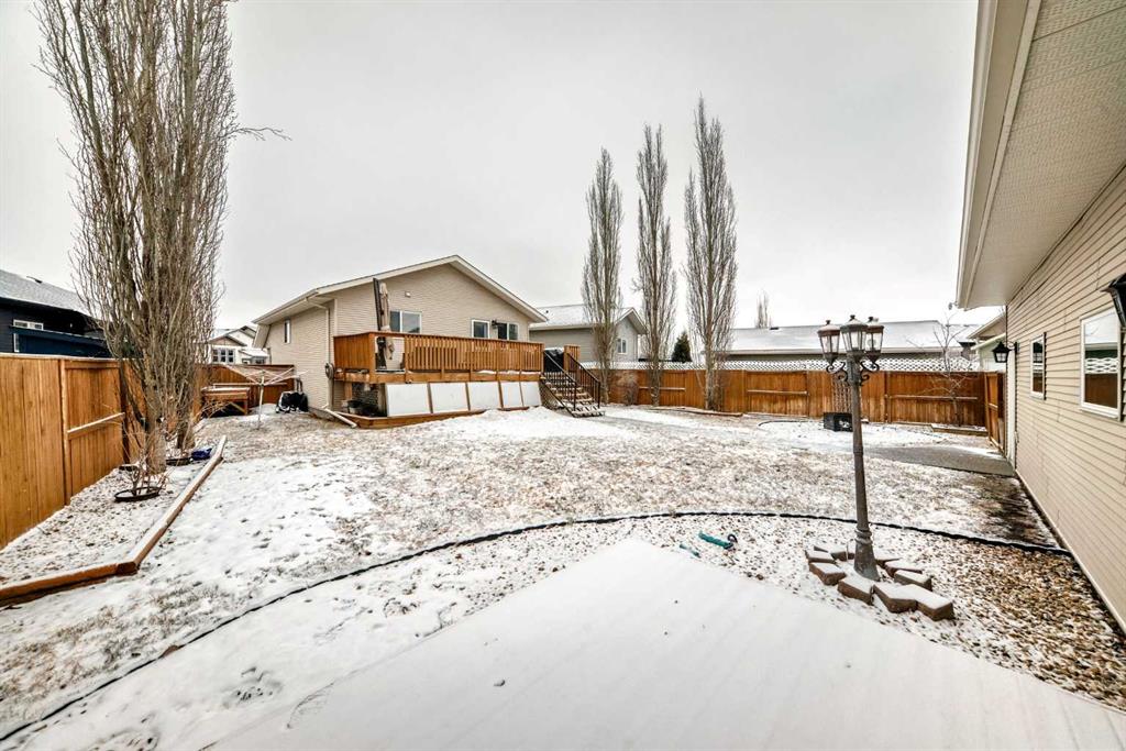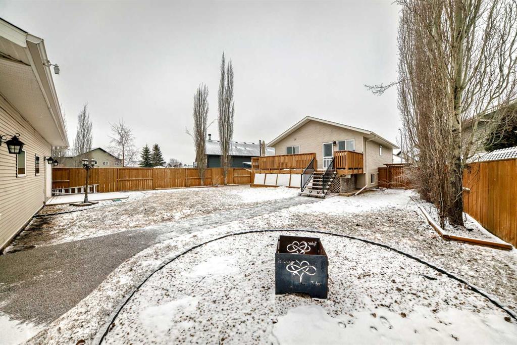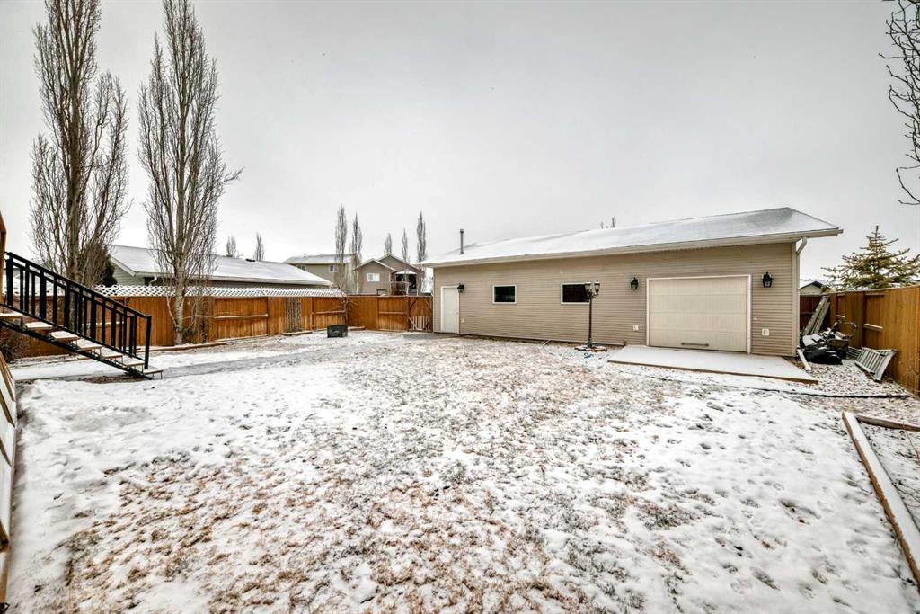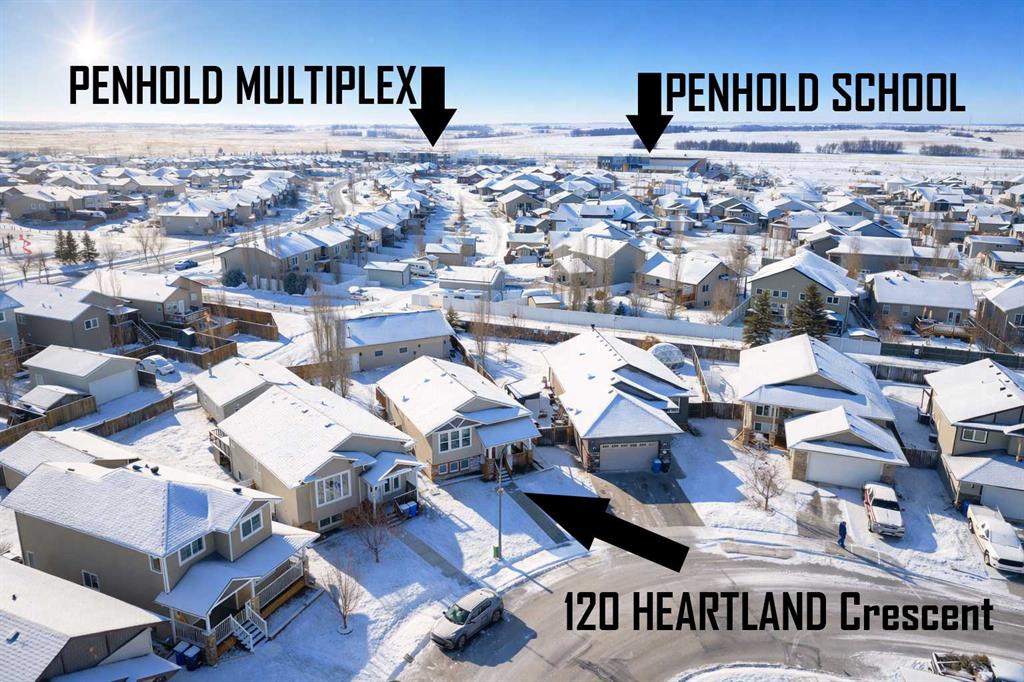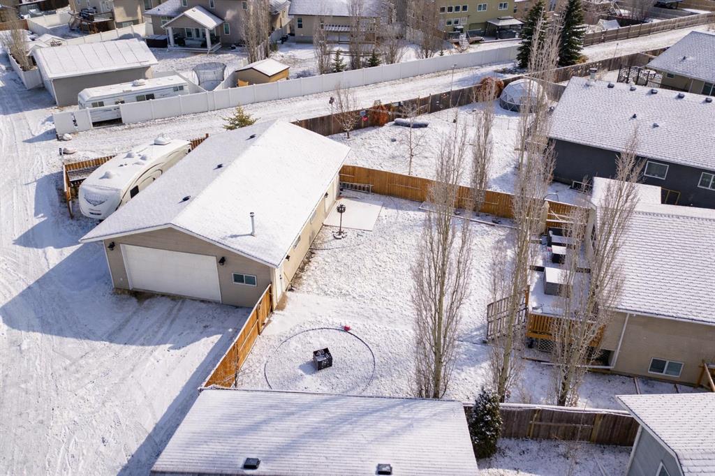 Welcome to this beautifully maintained bi-level home in the heart of Penhold, offering exceptional value, space, and functionality for the whole family. Situated on a HUGE, fenced lot in a quiet, family-friendly crescent, this property is just a short walk to schools, shopping, and restaurants—making everyday living incredibly convenient. This immaculate home features 3 bedrooms and 2 full bathrooms, with a fully developed basement providing plenty of additional living space for relaxing or entertaining. The interior showcases warm, neutral tones throughout, complemented by durable laminate flooring and a bright, inviting layout. The eat-in kitchen is equipped with stainless steel appliances, rich wood cabinets, a pantry, & lots of countertop space, perfect for family life. Comfort is top of mind with central AIR CONDITIONING and a newer hot water tank already in place. Step outside and you’ll find one of the STANDOUT FEATURES of this property—a MASSIVE 28x40 heated detached garage, ideal for hobbyists, storage, or all your toys. There’s also rear RV parking complete with 30 amp service, plus underground sprinklers to keep the yard looking its best all season long. Pride of ownership is clearly evident throughout—this home is in superb condition and truly move-in ready. A rare opportunity to own a property with this much space, both inside and out, in a desirable Penhold location!