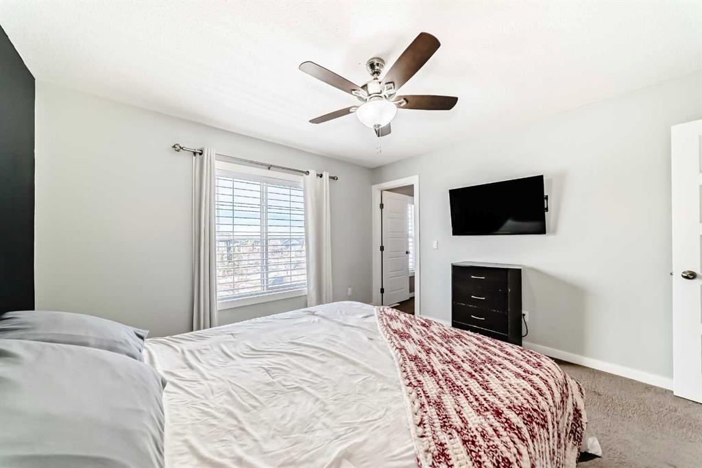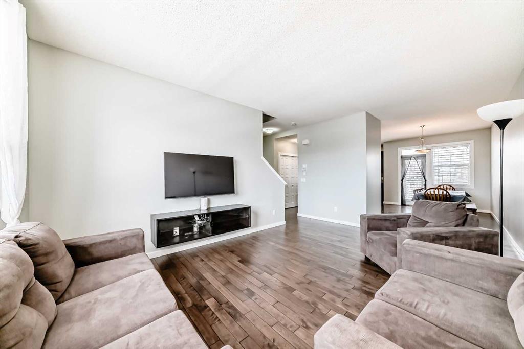Welcome to this beautifully maintained two-storey townhome in the highly sought-after community of New Brighton. Offering over 1,500 sq ft of living space and an attached heated double garage, this home combines comfort, style, and functionality. Step inside through the spacious front entry and head up to the bright open-concept main living area, featuring hardwood flooring, and large windows that fill the space with natural light. The kitchen is a true highlight and a chef’s dream, complete with custom cabinetry, modern tile backsplash, a large island, and upgraded appliances including a Maytag refrigerator, double oven, and dishwasher. The adjacent dining area provides plenty of space for entertaining and offers access to a private balcony — perfect for summer BBQs. A conveniently located half bathroom completes the main level. Upstairs you’ll find three spacious bedrooms, all featuring large windows. The primary suite includes a walk-in closet and private ensuite, while the two additional bedrooms offer generous closet space and share a beautifully finished full bathroom with modern tile work. The upper floor also features a large laundry area with built-in cabinetry and storage, along with a Samsung washer and dryer. A tucked-away bonus storage room on the staircase landing offers the perfect place for seasonal items or a fun hideaway for kids. The lower level provides another versatile room, ideal for a home office, workout space, or flex room, along with access to the utility room and attached garage. Located in one of Calgary’s most family-friendly communities, New Brighton offers excellent schools, nearby shopping, and quick access to major roadways. Residents also enjoy access to the New Brighton Clubhouse, featuring a water park, hockey rink, tennis courts, and event facilities. Don’t miss your chance to own this exceptional home — book your private viewing today!