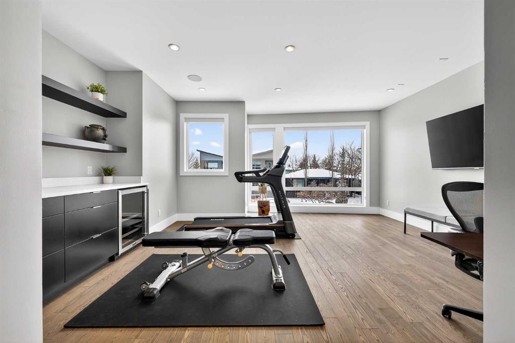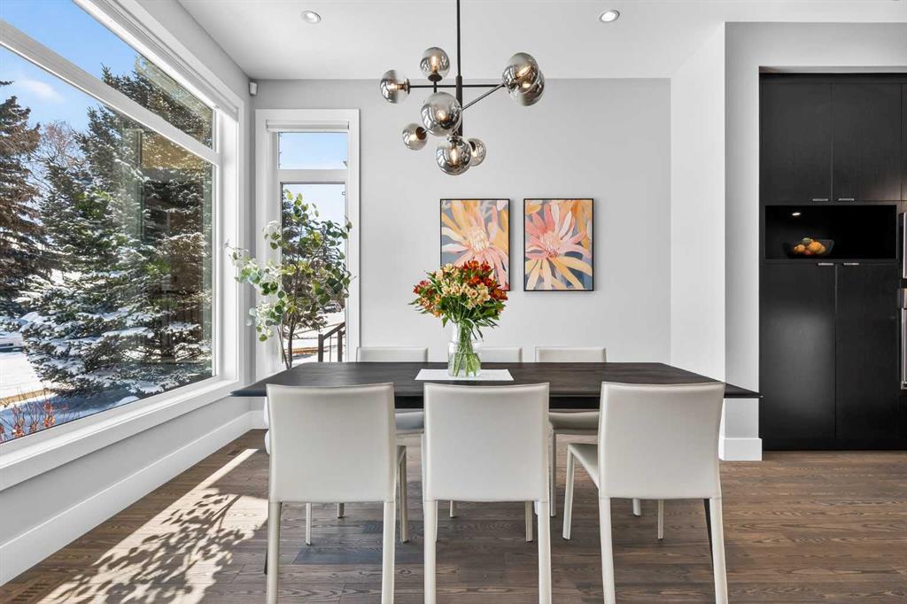 Rooftop Patio | Full City Views | Over 3,400 Sq Ft of Finished Living Space | West-Facing Backyard | Prime Location Welcome to a rare offering in the heart of Altadore—an exceptional contemporary three-storey detached home crafted for those who appreciate refined design, open-concept living, and effortless entertaining. With over 3,400 sq ft of meticulously finished space, this residence showcases a level of quality and attention to detail seldom found in today’s infill market. Step inside to a welcoming front foyer with a convenient side closet, leading into an elegant dining area illuminated by a stunning smoked glass chandelier. The main floor unfolds into a showpiece kitchen, featuring premium stainless steel appliances and a striking dual waterfall Caesarstone island with updated pendant lighting and generous seating—perfect for gathering with family and friends. Throughout the home, Kentwood hardwood flooring, rich oak ebony cabinetry with soft-close hardware, and solid-core doors reflect a commitment to both style and durability. A dramatic open-rise hardwood staircase with floor-to-ceiling glass creates a striking architectural focal point, while the built-in wired audio system enhances everyday living and entertaining. A custom Sugi Ban burnt oak barn door adds a unique designer touch. Designed with versatility in mind, this home offers multiple spaces to relax and entertain. The main living room is anchored by a stone-encased gas fireplace with an art niche, creating a warm, inviting setting. Upstairs, are 2 Large bedrooms + Full Bath & Laundry room & flex/entertainment room with a wet bar provides the perfect retreat or hosting space. The fully developed basement expands your options further, featuring brand-new plush carpeting, a second wet bar with cooler and wine fridge, ample storage, a spacious guest bedroom with a walk-in closet, and a full bathroom just steps away. The entire third level is dedicated to a luxurious private retreat. Enjoy breathtaking city views from your rooftop patio and expansive primary suite. The spa-inspired ensuite features programmable in-floor heating, a freestanding soaking tub, a large glass shower, dual vanities finished in vein-cut limestone, a dedicated makeup station, and a generous walk-in closet with built-in cabinetry—creating a true sanctuary to unwind at the end of the day. The exterior is equally impressive, showcasing cedar soffits, metal-clad windows, and durable acrylic stucco. The fully landscaped yard includes exposed aggregate walkways and low-maintenance Trex composite decking. A sunny west-facing backyard offers the perfect setting for outdoor living, complete with a gas line rough-in for barbecuing. Ideally located just minutes from downtown, with a playground at the end of the street and close proximity to Sandy Beach and the river pathways, this home offers the perfect blend of luxury, comfort, and convenience. An outstanding opportunity to own in one of Calgary’s most desirable communities.
