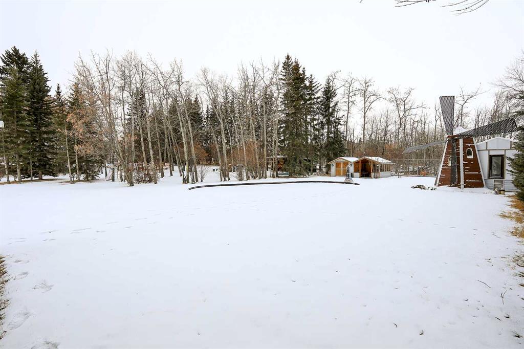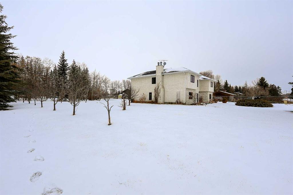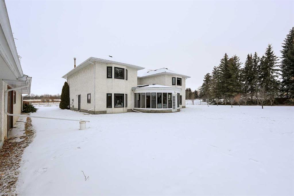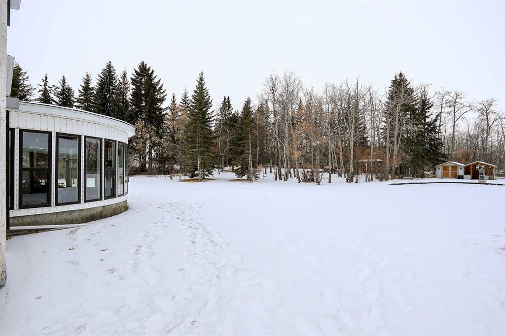 FULLY DEVELOPED, CUSTOM BUILT ESTATE HOME ON 1.08 ACRES ~ LOCATED IN MCKENZIE SUBDIVISION JUST MINUTES SOUTH OF RED DEER ON PAVEMENT ~ 48' X 24' & 22' X 28' DETACHED GARAGE & WORKSHOP ~ FULLY FENCED W/ELECTRIC GATED ENTRY ~ Pride of ownership is evident in this original owner home loaded with character ~ Recent updates include; new plumbing, new windows and new shingles ~ Welcoming entry leads to a spacious foyer with coffered ceilings, parquet flooring, a secret room, and large windows that fill the space with natural light ~ Archway leads to the oversized living room featuring a cozy wood burning fireplace with a raised hearth, mantle and stone surround, large windows overlooking the treed property ~ Sliding patio doors lead to the solarium with heated brick floors, hot tub, cedar lined ceiling with skylights, a bar with built in cabinets, hot tub, raised flower beds, and a wall of west facing windows that overlook the treed backyard and pond ~ The kitchen offers a functional layout, featuring tons of warm stained cabinets, ample counter space, open display shelving, window above the sink and space for a casual dining area ~ Just off the kitchen is a generous size mud room with ample closet space, a separate entry to the yard and garage, and huge walk in pantry with built in shelving ~ The formal dining room with French doors, another cozy wood burning fireplace with a raised hearth, mantle and floor to ceiling stone, plus tons of space to host large gatherings with ease ~ Home office is conveniently located just off the foyer and next to a 2 piece bathroom ~ Double stairs lead to the upper level bonus room that's flooded with natural light from an abundance of large windows ~ The private primary bedroom can easily accommodate a king size bedroom suite with space for a sitting area, and offers a walk in closet with built in organizers and an ensuite with an oversized vanity, walk in shower and a jetted corner tub ~ Second level laundry room~ 2 generous size guest bedrooms are located next to massive den with a west facing bay window overlooking the backyard ~ One bedroom has been converted to a kitchen and features white cabinets, and space for an eating area ~ Outside this fully fenced property is surrounded by mature trees offering shade and privacy and features a pond, greenhouse with a windmill, garden, gazebo, bar with power and custom seating, fire pit and two large garages with built in shelving and work benches ~ Located just minutes south of Red Deer, on pavement ~ Unbeatable convenience with easy access to Highways 2 and 2A, and walking distance to Gasoline Alley, where you'll find a wide range of amenities, including the popular Gasoline Alley Farmers' Market, Costco, Cineplex and transit to Red Deer, making it an ideal location for families and commuters alike.