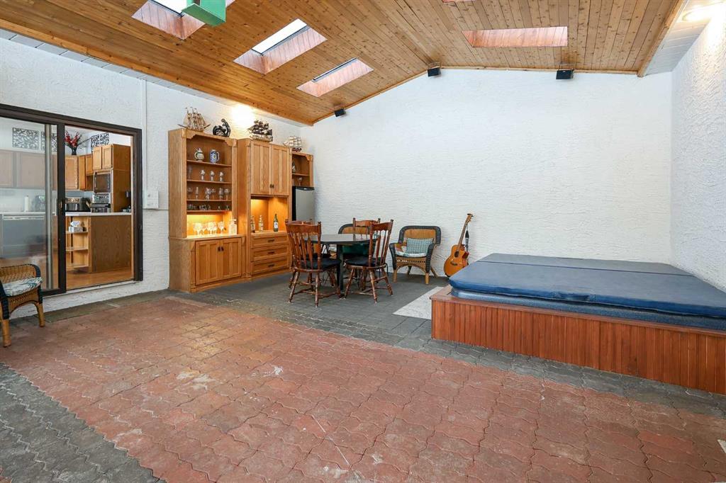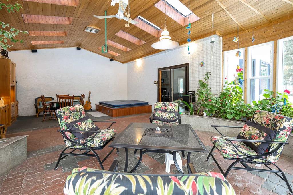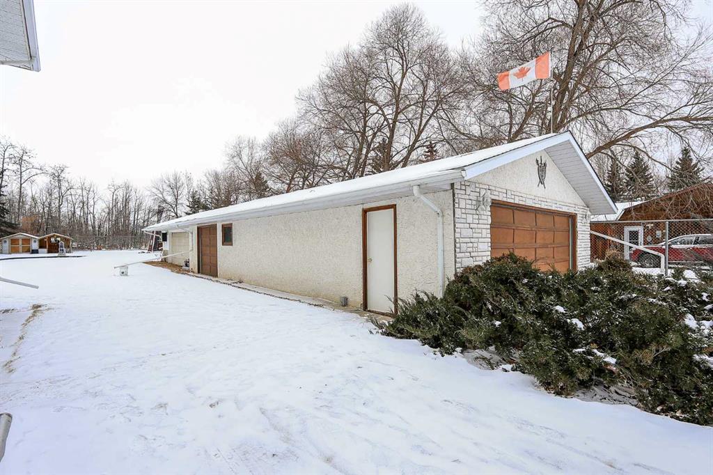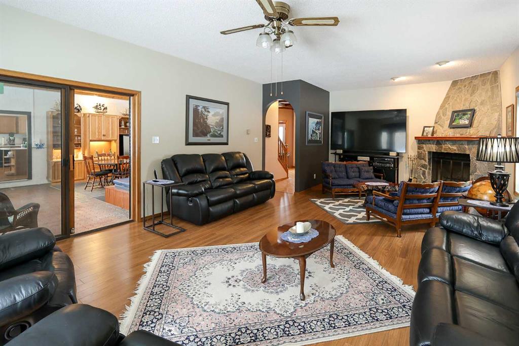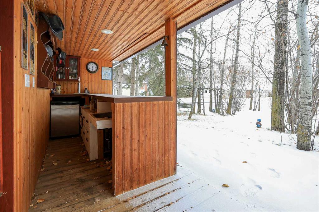 FULLY DEVELOPED, CUSTOM BUILT ESTATE HOME ON 1.08 ACRES ~ LOCATED IN MCKENZIE SUBDIVISION JUST MINUTES SOUTH OF RED DEER ON PAVEMENT ~ 48' X 24' & 22' X 28' DETACHED GARAGE & WORKSHOP ~ FULLY FENCED W/ELECTRIC GATED ENTRY ~ Pride of ownership is evident in this original owner home loaded with character ~ Recent updates include; new plumbing, new windows and new shingles ~ Welcoming entry leads to a spacious foyer with coffered ceilings, parquet flooring, a secret room, and large windows that fill the space with natural light ~ Archway leads to the oversized living room featuring a cozy wood burning fireplace with a raised hearth, mantle and stone surround, large windows overlooking the treed property ~ Sliding patio doors lead to the solarium with heated brick floors, hot tub, cedar lined ceiling with skylights, a bar with built in cabinets, hot tub, raised flower beds, and a wall of west facing windows that overlook the treed backyard and pond ~ The kitchen offers a functional layout, featuring tons of warm stained cabinets, ample counter space, open display shelving, window above the sink and space for a casual dining area ~ Just off the kitchen is a generous size mud room with ample closet space, a separate entry to the yard and garage, and huge walk in pantry with built in shelving ~ The formal dining room with French doors, another cozy wood burning fireplace with a raised hearth, mantle and floor to ceiling stone, plus tons of space to host large gatherings with ease ~ Home office is conveniently located just off the foyer and next to a 2 piece bathroom ~ Double stairs lead to the upper level bonus room that's flooded with natural light from an abundance of large windows ~ The private primary bedroom can easily accommodate a king size bedroom suite with space for a sitting area, and offers a walk in closet with built in organizers and an ensuite with an oversized vanity, walk in shower and a jetted corner tub ~ Second level laundry room~ 2 generous size guest bedrooms are located next to massive den with a west facing bay window overlooking the backyard ~ One bedroom has been converted to a kitchen and features white cabinets, and space for an eating area ~ Outside this fully fenced property is surrounded by mature trees offering shade and privacy and features a pond, greenhouse with a windmill, garden, gazebo, bar with power and custom seating, fire pit and two large garages with built in shelving and work benches ~ Located just minutes south of Red Deer, on pavement ~ Unbeatable convenience with easy access to Highways 2 and 2A, and walking distance to Gasoline Alley, where you'll find a wide range of amenities, including the popular Gasoline Alley Farmers' Market, Costco, Cineplex and transit to Red Deer, making it an ideal location for families and commuters alike.