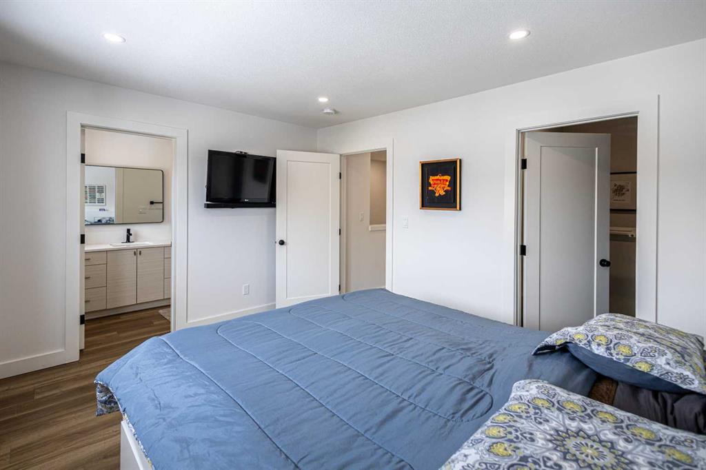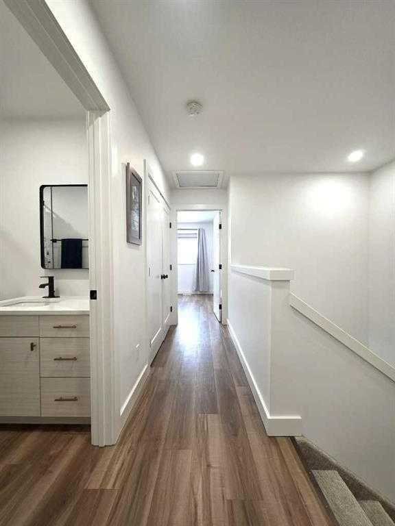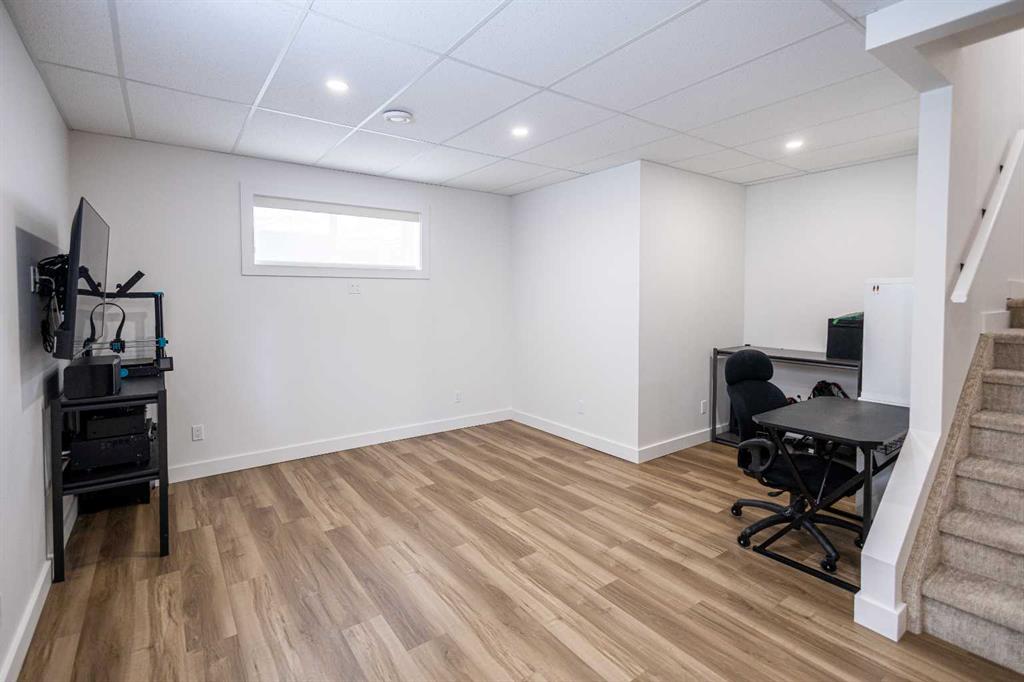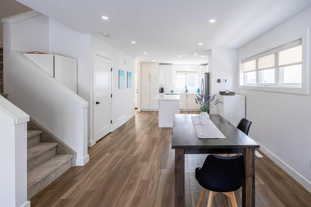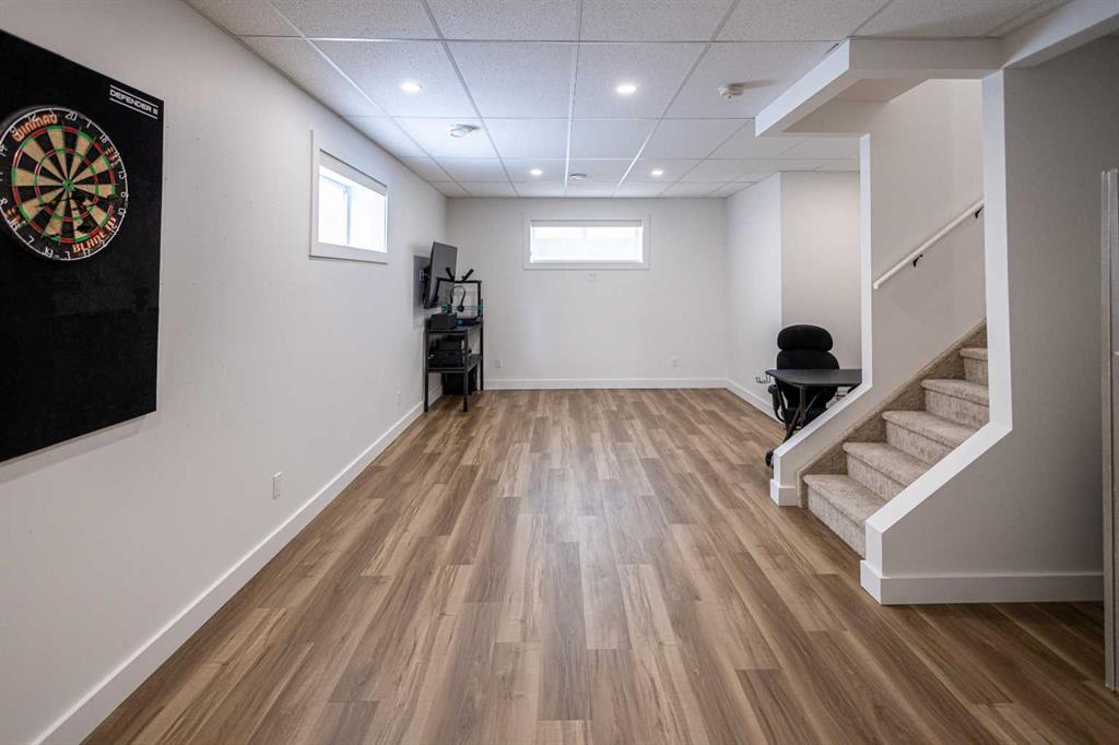 Discover the perfect blend of modern style and comfort in this one-owner, 2-storey gem crafted by one of Wainwright's top builders, Smith Builders. Set against the serene backdrop of a beautiful green space, (Dr. Brilz Park) with extensive walking trails, this home is a true retreat you'll love coming home to. From its striking modern, architectural design to the thoughtful attention in every detail, no corner has been overlooked. The main floor greets you with an open-concept layout that seamlessly connects the kitchen, dining area, and living room, providing an ideal space for both entertaining and everyday living. The kitchen is a standout, featuring sleek soft-close cabinets, a large pull-out pantry, a breakfast bar island, and pristine quartz countertops, modern stainless-steel appliances all highlighted by a white subway tile backsplash. A convenient 2pc powder room is located just off the back entrance, adding an extra level of functionality. Throughout the home, vinyl plank flooring, plush carpet stairs and LED pot lights create a cohesive and stylish vibe. Upstairs, the spacious primary bedroom offers a peaceful sanctuary, complete with a walk-in closet and a luxurious 3pc ensuite with a beautifully tiled walk-in shower and glass doors. Two additional bedrooms, a well-appointed 4pc bathroom, and the second-floor laundry room complete the upper level, offering both convenience and comfort. The fully finished basement provides even more living space, perfect for a family room or extra bedroom, with a 3 pc bathroom, large storage area and mechanical room. The family room is also well-equipped with CAT5 wiring designed for seamless and reliable network connectivity as you work from home or enjoy dedicated gaming! Waiting right outside your back door step onto the south-facing back deck, and savor your morning coffee and then relax in the evening or take a stroll on the Brilz Park walking trails. Families will appreciate the large playground right across the street to keep the kids entertained for hours. Additional features include a 16x22 detached, heated and insulated single car garage with plenty of room for your vehicle, toys and even a workbench! There's a gravel parking pad at the rear, a poured concrete walkway leading to your back deck as well as a poured concrete sidewalk leading to the front entrance. With this property’s close proximity to shopping and restaurants, who needs a vehicle to get to work? Plus, you'll have peace of mind with 6 years remaining of the 10-year National New Home Warranty. This is the home you’ve been waiting for—don’t miss the opportunity to make it yours!