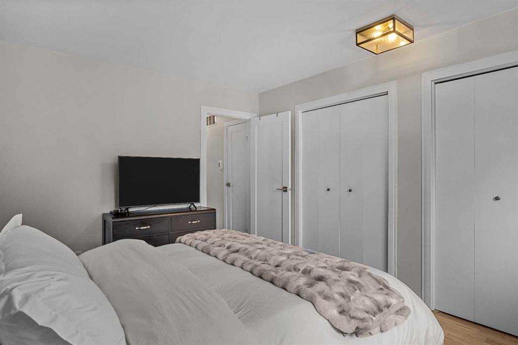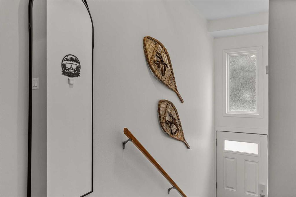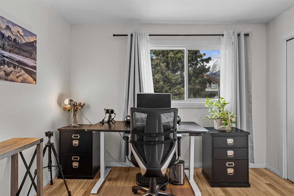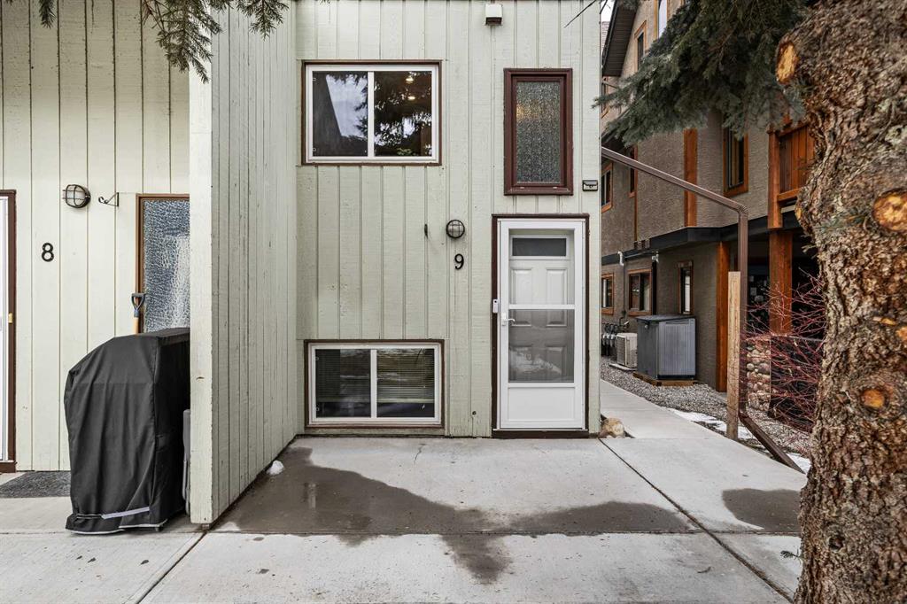 On a quiet street, only blocks from the Bow River as well as the enticing sights & sounds of Canmore’s vibrant Main St, this mechanically & cosmetically, fully renovated 2 bed top level end unit townhome is a “turnkey” stand-out. Entering from ground level, the landing leads up to a spacious & completely remodelled eat-in kitchen. Light & bright finishes gleam as sun pours in through recently replaced south-facing windows. New flooring & smooth, “paint grade” ceilings transition to the living room in a seamless fashion. Here, an airtight wood-burning stove is a major upgrade from the original fireplace & is a wonderful focal point in this restful space. Through new sliding doors, a covered deck adds outdoor living space where convenient stairs take you to the rear yard of the complex. Up stairs flanked in new handrails, you arrive at a broad landing complete with side-by-side laundry, storage & a convenient laundry folding area. The mechanical room contains a new furnace & hot water tank. The bedrooms are a hallmark of a time when developers built more generous floor plans, where the primary bedroom size rivals those in far more costly homes. The second bedroom is also comfortably proportioned. Both share a 4-pc bathroom with designer touches. One off street parking space, a sizable storage shed, all in a well-managed corporation offers value second to none.