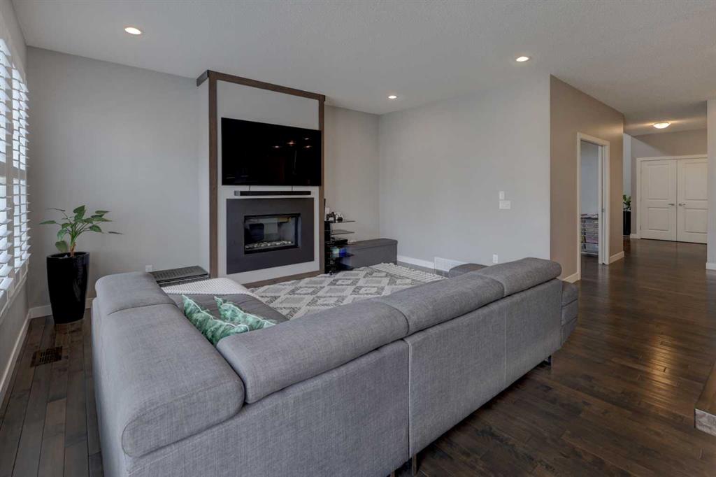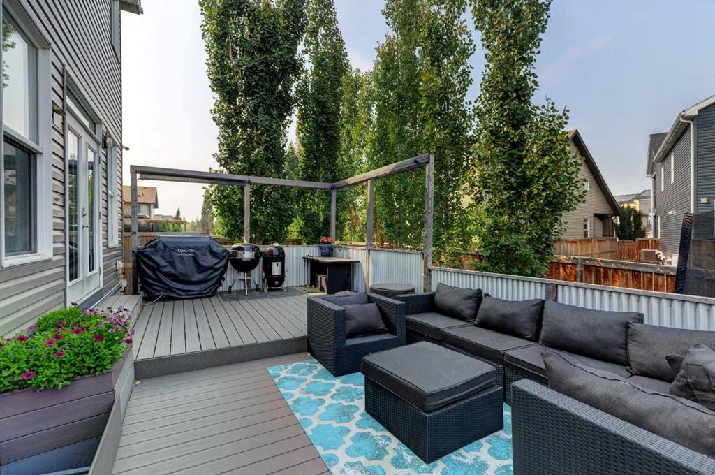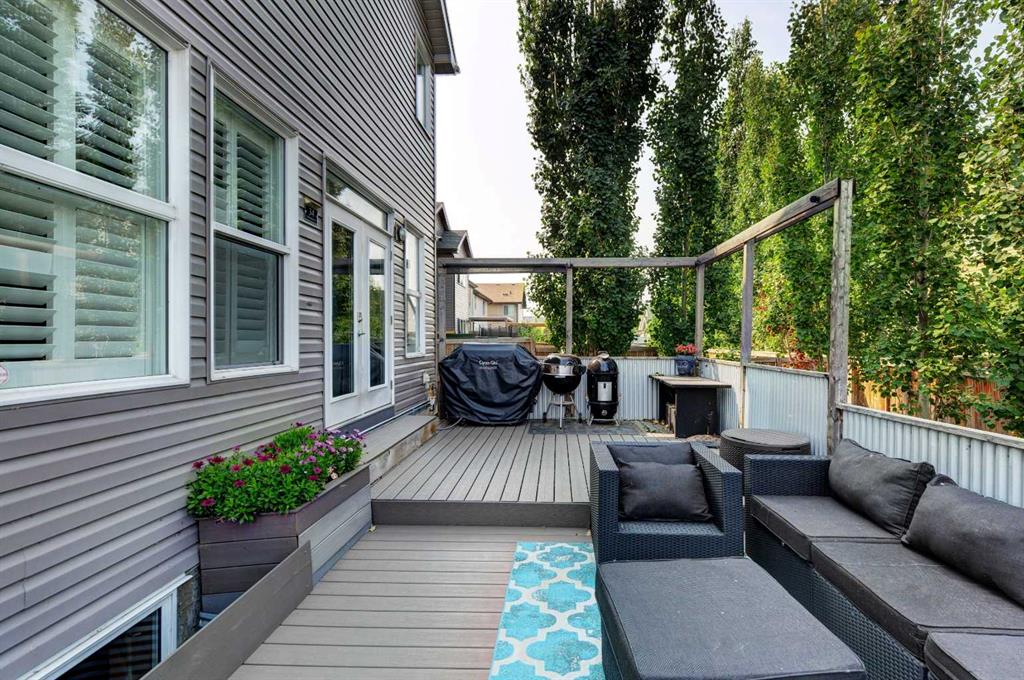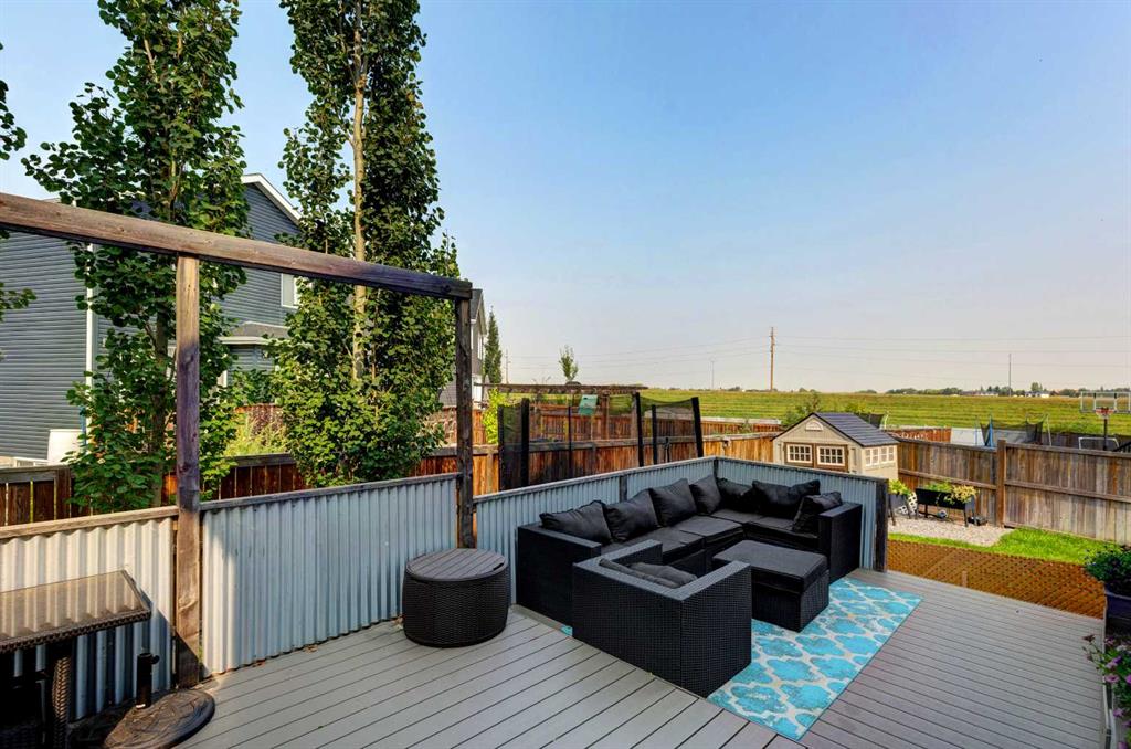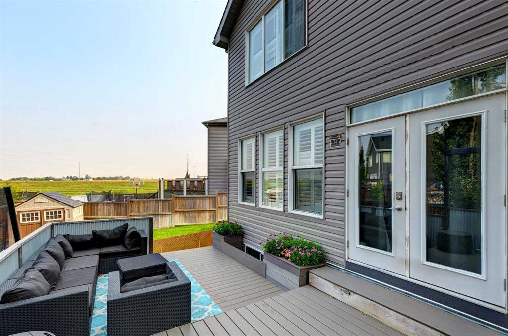 Wake up to stunning sunrises near the countryside in this beautifully upgraded, custom-built Stepper home in Copperfield. Filled with natural light throughout, the 2,356 sq ft home offers 4 bedrooms, a huge versatile bonus room, quartz countertops throughout, central air conditioning, and a heated oversized 24x20 garage. Step outside to a well designed and fully landscaped oversized pie-shaped lot with full irrigation, a large two level vinyl deck, and shed for extra storage. Move-in ready and thoughtfully upgraded, the open-concept main level features rich espresso hardwood and tile flooring, soft-close cabinetry throughout, and elegant custom shutters throughout the home. At the center is a chef’s kitchen with a large island, dual wall ovens, induction cooktop, built-in microwave, ultra-quiet Bosch dishwasher, built-in wine fridge, and quartz countertops—ideal for everyday cooking and entertaining. A beautiful great room with a modern fireplace is perfect to unwind at the end of the day. A private den with french doors, a perfect space for those who work from home. An elegant recently renovated powder room. The mudroom features a quartz countertop, a built-in providing storage and hooks, along with a large capacity Samsung steam laundry pair. Upstairs, the oversized bonus room provides a fantastic theatre space which is big enough for multi-use. The spacious master retreat at the back features large sleeping quarters, built-in his-and-her closet, his-and-her sinks, a soaker tub, and a separate shower, creating a luxurious private sanctuary. Three additional generously sized bedrooms, including one with its own walk-in closet share a well-appointed bathroom. The thoughtful upstairs layout provides privacy, comfort, and plenty of room for everyone, making this home perfect for families of all sizes. Additional upgrades among others include: a brand-new 50G John Wood hot water tank, Kinetico water softener, enhanced lighting with extra pot lights, and smart Nest thermostats. Ideally located close to schools, parks, and major roadways like Deerfoot Trail and Stoney Trail, this turnkey home blends comfort, style, and convenience in a vibrant, family-friendly community. With so much to offer at such a great price, it will not last so call today!