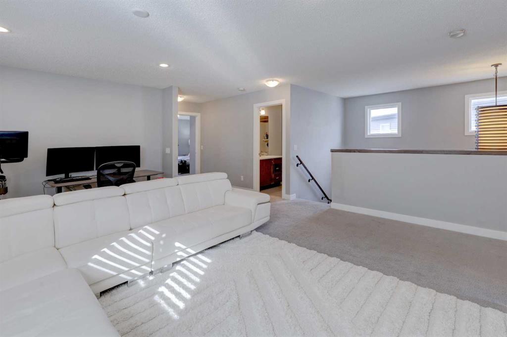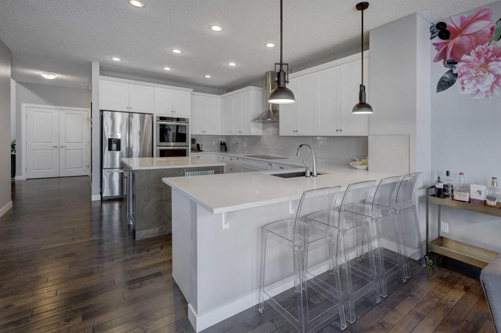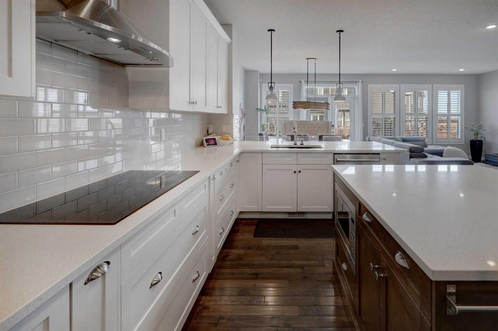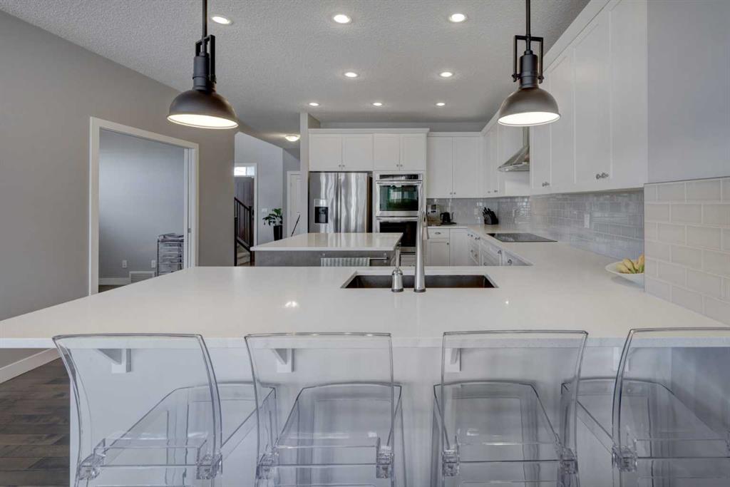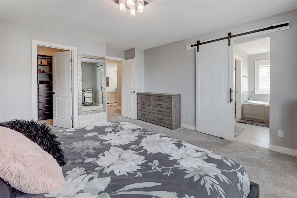 Wake up to stunning sunrises near the countryside in this beautifully upgraded, custom-built Stepper home in Copperfield. Filled with natural light throughout, the 2,356 sq ft home offers 4 bedrooms, a huge versatile bonus room, quartz countertops throughout, central air conditioning, and a heated oversized 24x20 garage. Step outside to a well designed and fully landscaped oversized pie-shaped lot with full irrigation, a large two level vinyl deck, and shed for extra storage. Move-in ready and thoughtfully upgraded, the open-concept main level features rich espresso hardwood and tile flooring, soft-close cabinetry throughout, and elegant custom shutters throughout the home. At the center is a chef’s kitchen with a large island, dual wall ovens, induction cooktop, built-in microwave, ultra-quiet Bosch dishwasher, built-in wine fridge, and quartz countertops—ideal for everyday cooking and entertaining. A beautiful great room with a modern fireplace is perfect to unwind at the end of the day. A private den with french doors, a perfect space for those who work from home. An elegant recently renovated powder room. The mudroom features a quartz countertop, a built-in providing storage and hooks, along with a large capacity Samsung steam laundry pair. Upstairs, the oversized bonus room provides a fantastic theatre space which is big enough for multi-use. The spacious master retreat at the back features large sleeping quarters, built-in his-and-her closet, his-and-her sinks, a soaker tub, and a separate shower, creating a luxurious private sanctuary. Three additional generously sized bedrooms, including one with its own walk-in closet share a well-appointed bathroom. The thoughtful upstairs layout provides privacy, comfort, and plenty of room for everyone, making this home perfect for families of all sizes. Additional upgrades among others include: a brand-new 50G John Wood hot water tank, Kinetico water softener, enhanced lighting with extra pot lights, and smart Nest thermostats. Ideally located close to schools, parks, and major roadways like Deerfoot Trail and Stoney Trail, this turnkey home blends comfort, style, and convenience in a vibrant, family-friendly community. With so much to offer at such a great price, it will not last so call today!
