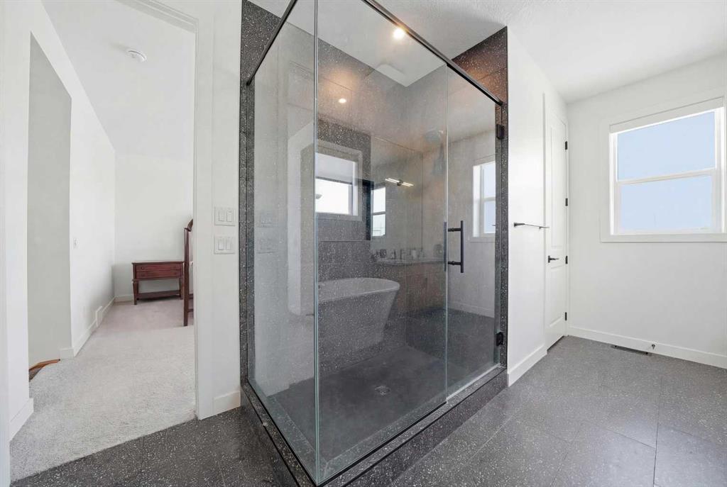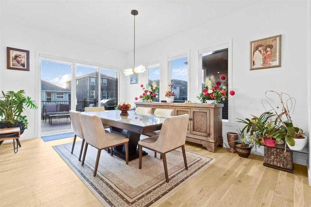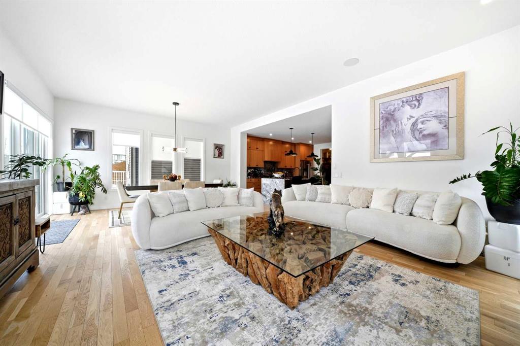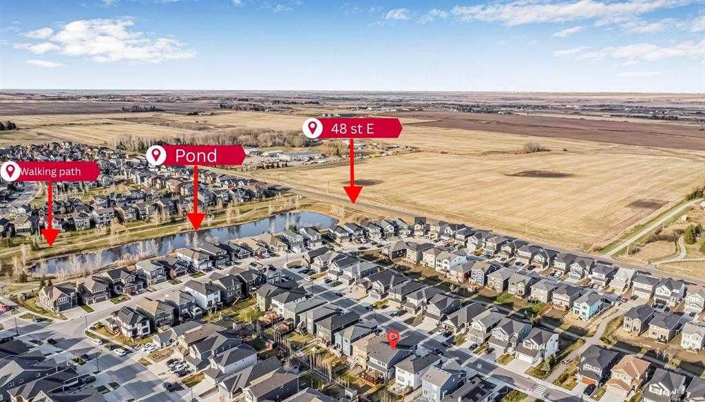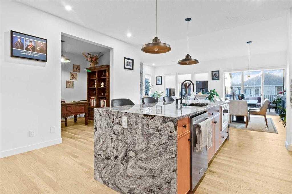 Welcome to this exceptional, fully upgraded home in the heart of beautiful Okotoks—offering quality construction and opulent features. Designed with both style and function in mind. Upon entry, this home makes an immediate impression with its soaring vaulted entry and 9’ ceilings spanning all three levels, including the basement. The rear living and dining areas elevate the experience even further with impressive 10’ ceilings and expansive windows that flood the space with natural light, creating an open and inviting atmosphere. The chef-inspired kitchen is a true showpiece, featuring premium KitchenAid appliances, a Hansgrohe faucet, rift-cut white oak cabinetry with stacked uppers, a custom hood fan, and striking Viscount White granite waterfall countertops. A matching granite backsplash and custom fireplace surround tie the space together with a sophisticated finish. Thoughtful upgrades continue throughout, including 8’ interior doors on the main and upper floors, triple-pane casement windows, an oversized 8’ patio door, and sleek black spindle railings. Mirage white oak hardwood floors extend through the main level and staircase, adding warmth and timeless elegance. The home is illuminated by designer Kuzco lighting, backed by the 5-year Alberta New Home Warranty, while roller blinds throughout provide both privacy and style. Upstairs, you’ll find four generously sized bedrooms, a central bonus room, and the convenience of upper-floor laundry. The primary suite offers a private retreat with dual walk-in closets and plenty of space to unwind. The ensuite and bathrooms throughout the home are beautifully finished with fully tiled showers, a freestanding tub, high-end Toto and Moen fixtures, and full-height mirrors that enhance the sense of space. The lower level is partially developed with a completed 4-piece bathroom and a fifth bedroom, while over 700 sq. ft. remains for your personal vision—complete with a wet bar rough-in, ideal for a future media room, recreation space, or home gym. Additional highlights include built-in ceiling speakers in the living room, Lutron Caseta smart lighting controls, and a double attached garage for year-round comfort and convenience. Step outside to enjoy the expansive custom-built 18’ x 26’ cedar deck—perfect for relaxing or entertaining on warm summer evenings. This is a rare opportunity to own a meticulously upgraded, move-in-ready home in one of Okotoks’ most desirable settings—without the delays of building from scratch.