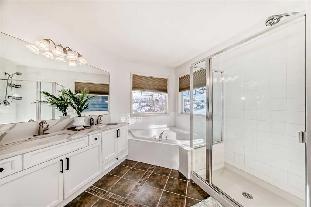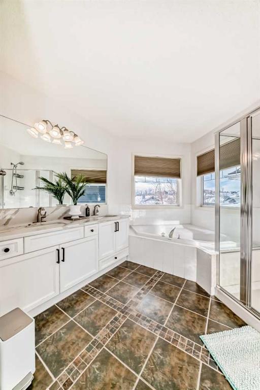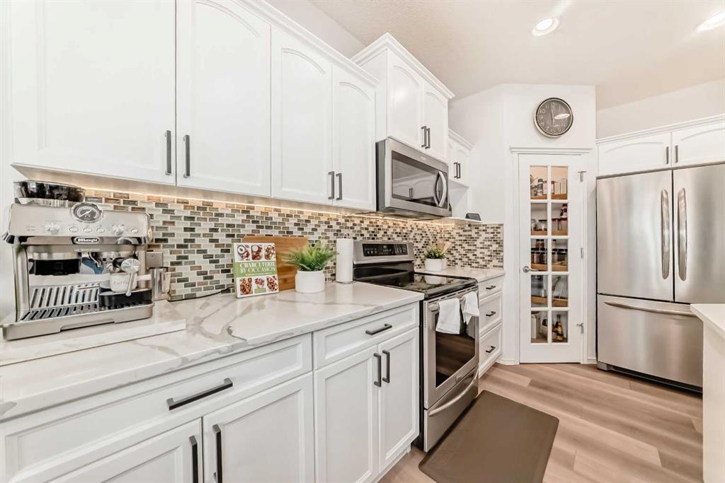 Fantastic opportunity to raise your family in this lovingly maintained Cedarglen two-storey home on a quiet crescent in The Cascades of Royal Oak. The highly rated Renert School is just a 5-minute drive away. With two schools and neighbourhood parks only a short 5-minute walk from your doorstep, this cherished family home offers comfort, warmth, and thoughtful updates throughout. With an oversized 2-car garage with new garage door and a fenced backyard complete with a kids’ playhouse and huge deck, it’s the perfect setting for creating lasting family memories. Step inside to a wonderful open-concept design drenched in natural light, featuring an expansive great room with a cozy stone-facing fireplace, a formal dining room accented by French doors, and a bright dining nook with access to the backyard. The heart of the home is a beautiful white kitchen with an island, quartz countertops, and a walk-in pantry, offering ample cabinet space and Frigidaire Gallery stainless steel appliances, including a convection oven—ideal for family meals and gatherings. The main floor now features brand new vinyl flooring, adding durability and modern style to the home’s warm aesthetic. Upstairs, you’ll find three relaxing bedrooms highlighted by the primary suite with a walk-in closet and a luxurious soaker tub ensuite featuring a separate shower, double vanities, and corner windows. Over the garage, a spacious bonus room with a custom-built-in desk and cabinets provides the perfect retreat for family movie nights or a quiet workspace. Additional main-floor conveniences include a laundry area with a built-in bench, underground sprinklers, and an oversized garage with built-in storage. Thoughtful updates include updated Levolor blinds and a new water heater installed last year. The backyard is newly painted fenced, and landscaped, featuring an inviting deck for summer entertaining, a playhouse and swing for children, and plenty of space for gardening or relaxation. Bus stops are just steps away, and you’re minutes from the Royal Oak Shopping Centre with quick and easy access to Tuscany and major routes. The newly developed basement enhances the home’s living space with a large bedroom, a stylish full bathroom with a tiled standing shower, and newly installed carpet flooring. The home also offers fresh paint throughout, a painted deck and fence, quartz countertops throughout, a garden shed, outdoor lighting, and an irrigation system—ensuring comfort, beauty, and convenience inside and out.