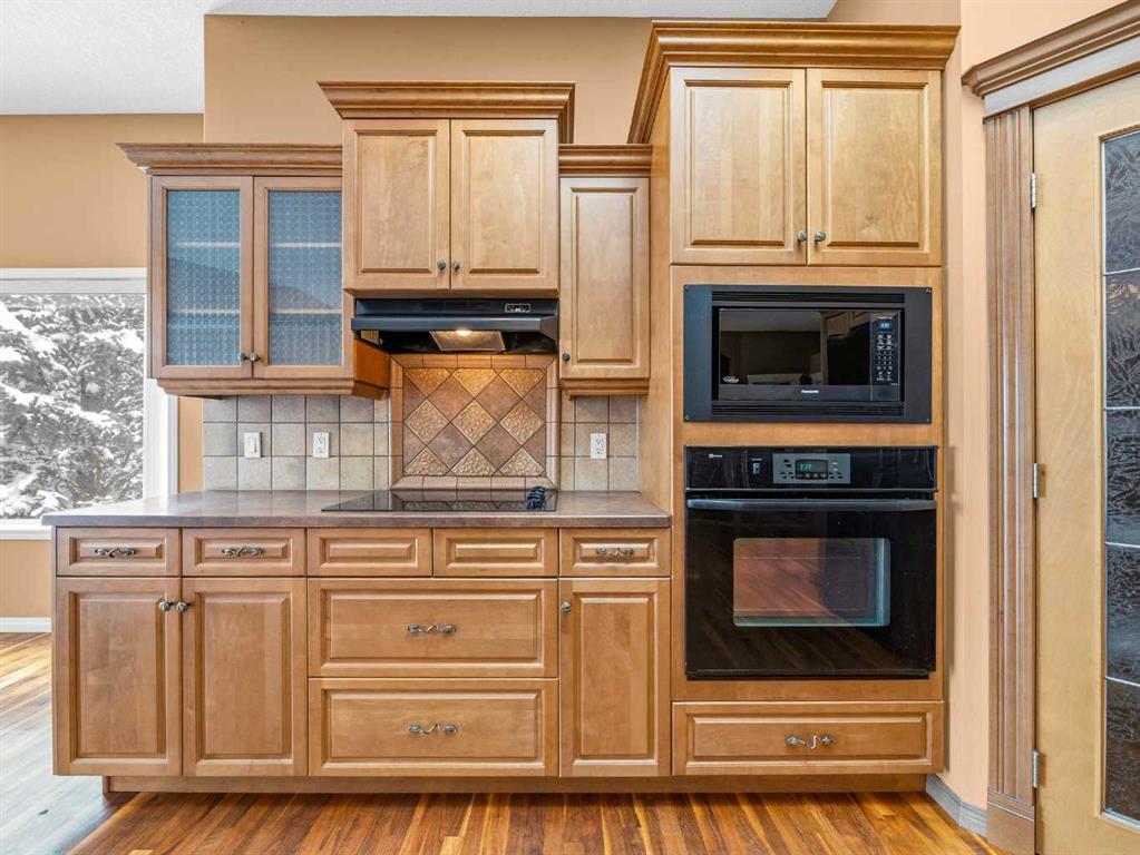 Come home to desirable Valley Ridge! A large bungalow on a corner lot without sidewalks to shovel located in a quiet cul-de-sac overlooking the ravine! The front driveway is upgraded aggregate concrete, the stunning stucco exterior home sits on a landscaped yard with trees, and perennial shrubs and flowers. Excessive parking includes a front double wide driveway, attached double garage and extra gated parking out back that can be used for a small boat or RV. The welcoming open floor plan showcases 10' ceilings, built in speakers, skylights and gorgeous hardwood flooring! The kitchen has plenty of storage with step in pantry, cooktop, separate wall oven and the island overlooks the spacious dining room. Sliding doors open to the covered deck and beautiful yard with a gazebo! The living room showcases a tray ceiling, cozy gas fireplace and custom hardwood build-ins. Relax in the primary wing with an enormous 5 pc ensuite with jet tub and stand alone shower. There is a flex room for a den, office, formal dining or use as you wish! Enjoy the convenience of main floor laundry! Head down to the fully finished basement boasting 9' ceilings! Enjoy a grand recreation room, two sizable bedrooms, another den and a full bathroom. There is extra dedicated storage room and more space in the utility room. Valley Ridge is an upscale community with paths, river access, ravine views and is an easy escape to the mountains! And if you like golf, Valley Ridge Gold Course meanders through the community! Book your private showing today!