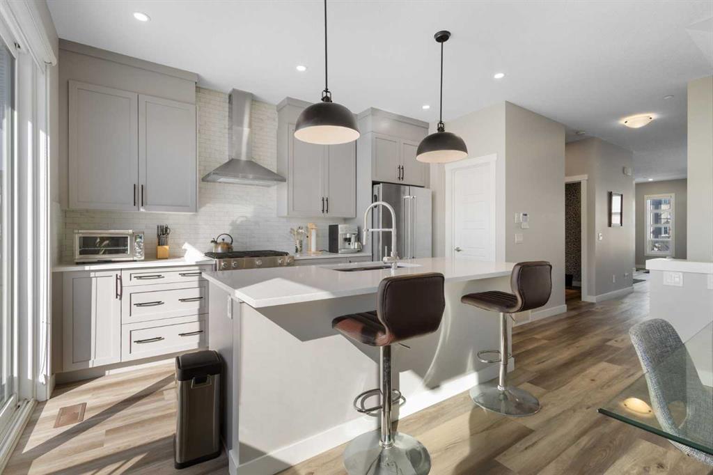 Welcome to 45 Howse Street in the vibrant community of Livingston, offering 4 bedrooms (3 up, 1 down) and a spacious bonus room upstairs, over 2,300 sq ft of developed living space, and a double detached garage, all complemented by thoughtful upgrades throughout. The open concept main floor is bright and inviting, featuring full height cabinetry, a large corner pantry, quartz countertops, a spacious kitchen island, upgraded KitchenAid stainless steel appliances, and designer lighting. Built-in speakers enhance both everyday living and entertaining. The living area is anchored by a cozy fireplace and complemented by durable vinyl plank flooring and large windows that fill the space with natural light. The mounted TV, wall mount, and Bluetooth receiver connected to the built-in speaker system are all included. Upstairs, you will find three well-sized bedrooms, including a spacious primary retreat with a full ensuite, along with the convenience of upper level laundry and a versatile bonus room. The fully developed basement, with a separate side entrance, adds excellent flexibility with a fourth bedroom, large recreation area, and additional bathroom, ideal for guests, a home office, or future potential. The downstairs family room is equipped with built-in surround sound speakers with hidden wiring, creating a clean and immersive entertainment space. Additional highlights include central air conditioning and a landscaped backyard with a deck, perfect for outdoor enjoyment. The backyard is fully fenced, ideal for keeping pets safely contained while also helping to keep rabbits out. Recent exterior upgrades include new roofing, siding, and eavestroughs completed in 2025 following the August 2024 hail storm. The detached garage is insulated and features an upgraded Wi-Fi enabled overhead door opener. This home is equipped with an indoor fire suppression sprinkler system, offering added safety and peace of mind. Potential savings on home insurance may be available due to the nearby fire station just two blocks away. The location of this property is priceless, with it being within walking distance of the Livingston Community Center where you will find skate parks, splash pools, tennis courts, walking paths, kid’s playgrounds, a community hall, theatre, private schools, and so much more.