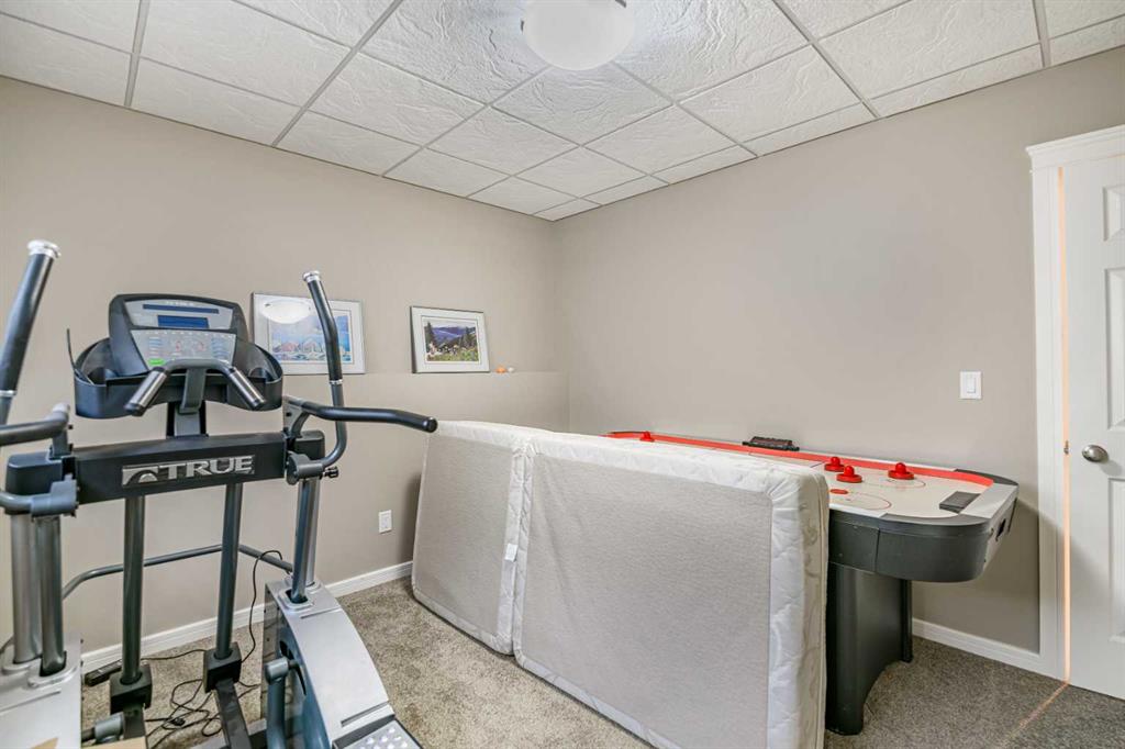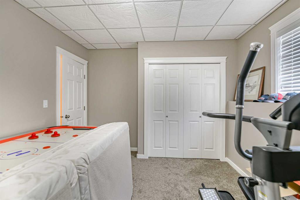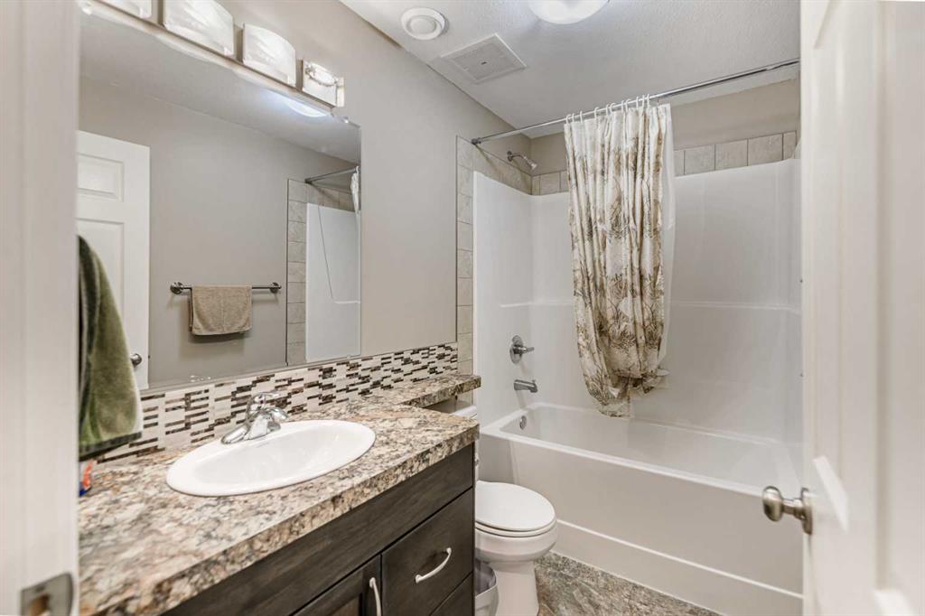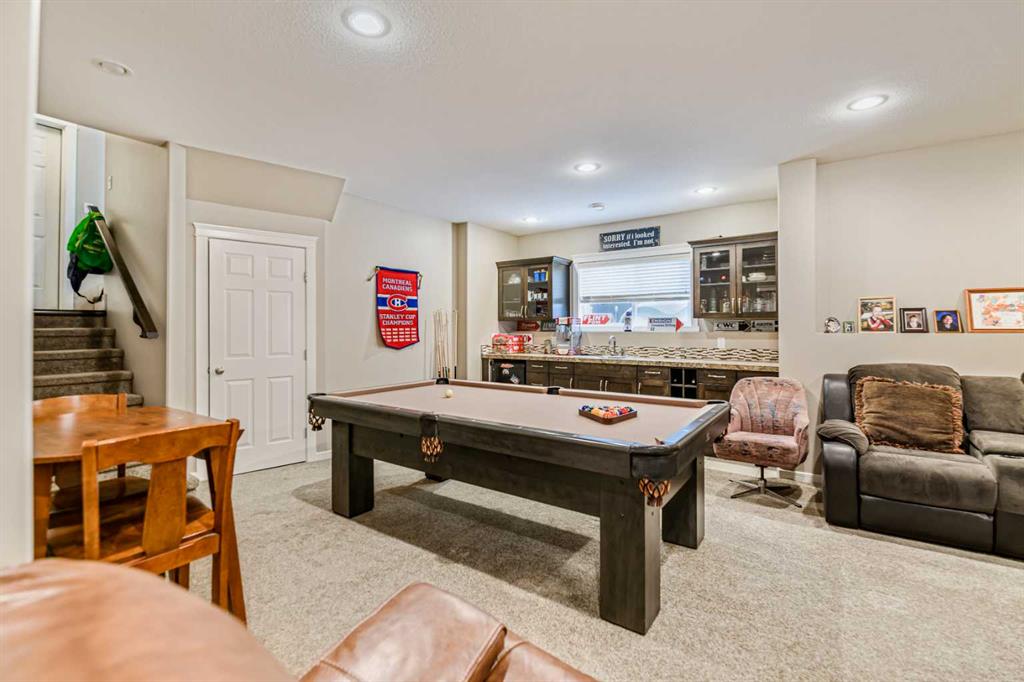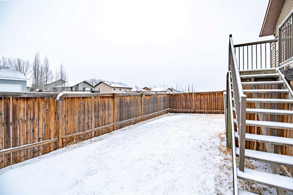 Nestled on a quiet crescent in one of Lacombe's well-established neighbourhoods, this charming 1½ storey home offers a functional and inviting layout with quality finishes throughout. The main floor welcomes you with a bright living room featuring a striking feature wall and a cozy fireplace with beautiful stone surround. Natural light flows generously through the home, creating an airy and comfortable atmosphere. The kitchen is a standout space, thoughtfully designed with ample workspace and easy access to the partially covered back deck that offers a gas hookup for a BBQ. Gas stove top with electric double ovens and dishwasher 4 years old. Two bedrooms are located on the main floor, with the spacious primary suite on the upper level, complete with a large walk-in closet and private ensuite. The fully developed basement with 9 ft ceilings adds excellent versatility, offering two additional bedrooms, a full bathroom, dedicated laundry/utility room, and a storage room. The impressive wet bar makes this lower level a natural gathering space, and in-floor heat throughout ensures year-round comfort. Outside, the large heated double attached garage provides convenient parking and storage. The backyard is a practical featuring dedicated RV parking with a 50-amp hookup and the added benefit of an extra-wide back alley for easy access. Additional features include central air conditioning and central vacuum. A meticulously well kept home home offering space, comfort, and standout amenities. This home is ready to welcome its next family.