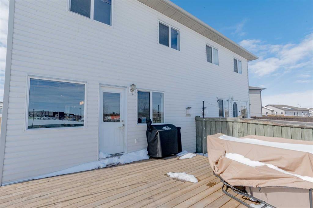 Welcome to this beautifully updated duplex in Westpointe, perfectly positioned with no rear neighbors and an oversized backyard that offers both privacy and space to enjoy. Thoughtfully refreshed throughout, this home showcases modern flooring, fresh paint, and brand-new stainless steel appliances. The open-concept main floor is designed for both comfort and entertaining, featuring a cozy corner gas fireplace and a stylish kitchen complete with upgraded cabinetry, a functional island, and pantry leading to spacious dining nook and oversized rear patio overlooking the massive fully fenced backyard. Upstairs, retreat to the spacious primary suite with a walk-in closet and private ensuite, alongside two additional bedrooms, a full bath, and convenient upper-level laundry. With hot water on demand, a high-efficiency furnace, and an undeveloped basement ready for your custom design, this home offers both comfort and future potential. Located near schools, parks, and walking paths—this is the perfect blend of lifestyle and location.