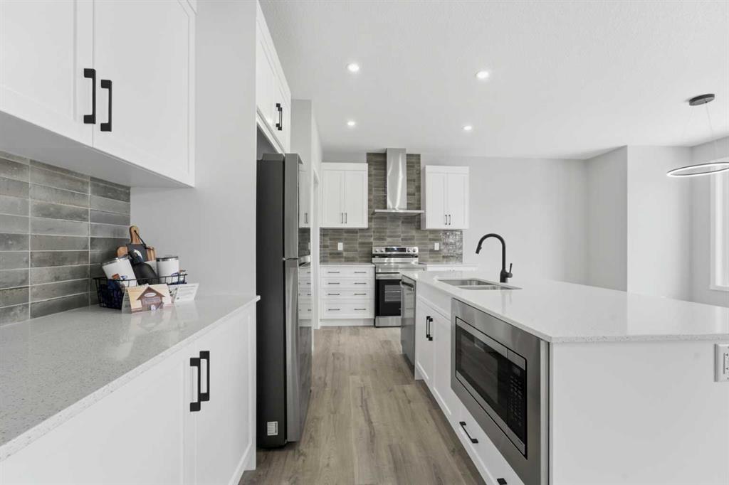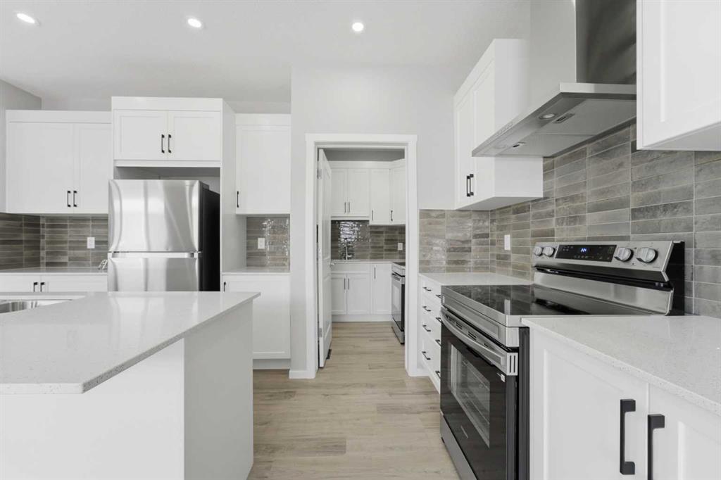 Luxury Living in Cityscape – Exceptional Front Garage Home. Welcome to this stunning BRAND NEW, NEVER OCCUPIED front garage home located in the highly desirable community of Cityscape in NE Calgary. Situated on a 36-foot-wide lot, this impressive property offers 4 SPACIOUS BEDROOMS, 2.5 bathrooms, and a large bonus room, with over 2,276 sq. ft. of thoughtfully designed living space. Be sure to explore the 3D virtual tour. Built in 2026, the home features 9-foot ceilings on main floor and in the basement , creating a bright and open atmosphere, along with modern upgrades including smart home features designed for comfort and convenience. The chef-inspired kitchen serves as the heart of the home and showcases elegant maple cabinetry, granite countertops, stainless steel appliances, an electric range with chimney hood fan, refrigerator, a large central island, and a modern backsplash. One of the most notable upgrades is the dedicated SPICE KITCHEN, offering additional cooking space and everyday functionality. The spacious main floor is perfect for entertaining, highlighted by a large living room with an electric fireplace that creates a warm and inviting environment for both gatherings and daily living. Upstairs, you will find four generously sized bedrooms, including a luxurious primary suite featuring walk in closets and a 4-piece ensuite with dual sinks, a soaker tub, and a separate shower. The upper level also includes a HUGE BONUS ROOM, a stylish 4-piece bathroom, and the convenience of top-floor laundry. The sunshine basement offers large windows, 9- FEET CEILING, and a SEPARATE SIDY ENTRANCE, providing excellent flexibility for future development. It is ideal for creating additional living space or a potential legal basement suite (subject to city approval), along with ample storage. Step outside to enjoy the large backyard with a deck, perfect for relaxing or hosting gatherings. Perfectly located close to Cityscape Plaza, playgrounds, and transit, this home also offers quick access to Stoney Trail and Deerfoot Trail, along with nearby parks, shopping, and scenic walking paths. Move-in ready and beautifully upgraded, this exceptional property is a must-see. Book your private showing today.