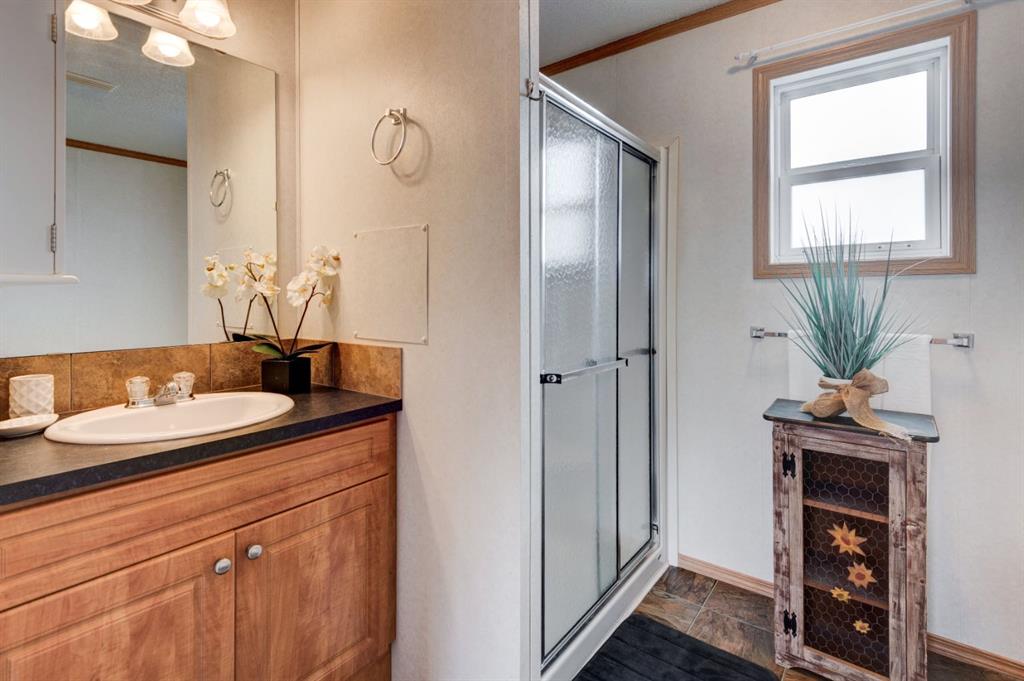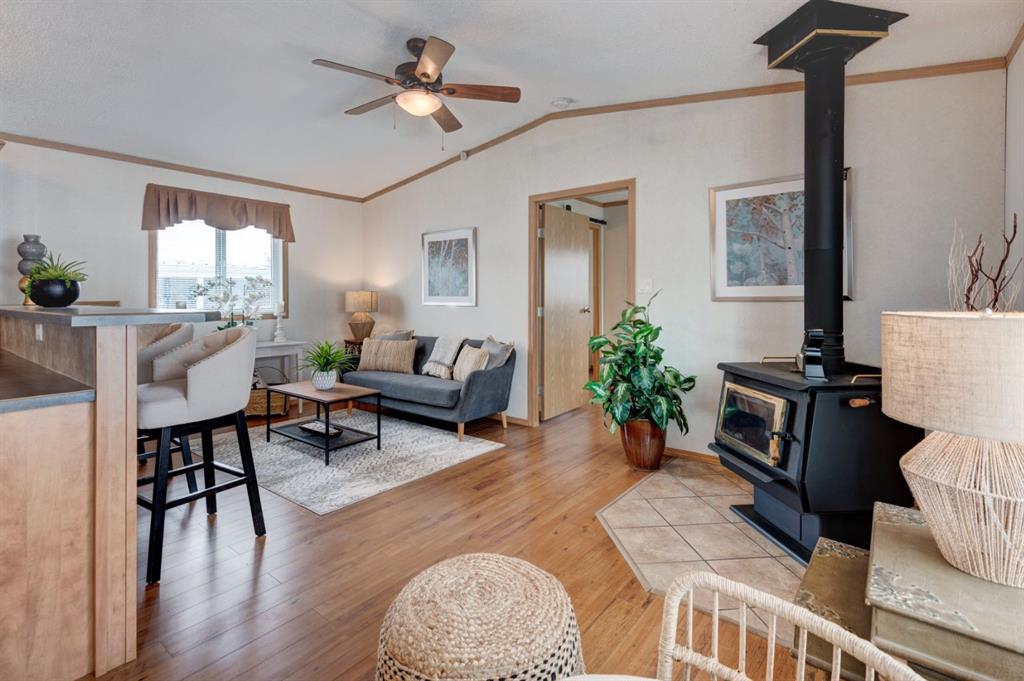 Enter into this immaculate and charming Custom Built 2013 manufactured home, 1120 sf home located in the plus-18 section of Mountview. Prepare to be impressed with everything this home has to offer. It is spacious with vaulted ceilings, bright and airy with the many windows in the living area, and the entire home, and open concept living. Click on the interactive iGuide for a virtual tour and "virtual walk through". This large kitchen has beautiful wood cabinets, loads of counter space to explore your culinary side, prep for your cooking and baking adventures plus plenty of room to move around. Newly installed dishwasher, newer gas stove, newer fridge. There is a large counter peninsula island that provides even more space for eating or entertaining. Adjacent to the kitchen is a spacious dining area that is drenched in light. The living room has ample space for your furniture and the open den area provides a wood burning woodstove (WETT inspection done) to keep you warm and cozy. This is a 2013 model, 20x56, with two bedrooms, two bathrooms, and has everything you could need. The primary bedroom at the front of the home has a huge ensuite with soaker tub, separate shower, and good size vanity. This bedroom can easily accommodate a king bed. The second bedroom is at the opposite end, along with a 4-piece bath, large separate laundry room with a new on-demand hot water system and back entry hall. This home has a new composite vinyl fence, new skirting, new front deck, new eavestrough and downspouts, new sewer pipes, and a newly installed electrical hookup and meter, with a City of Calgary permit. Don’t wait to view this property - you won’t be disappointed! Lease approval is required. Pets are allowed with approval. Lease rate of $1100 per month includes water, sewer, garbage pick up and snow removal. Sunpark Mountview is across from Elliston Park, minutes to East Hills Shopping Centre, Stoney Trail, International Avenue, and all levels of transit, shopping, restaurants and amenities.