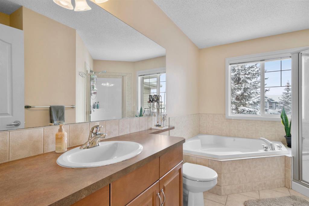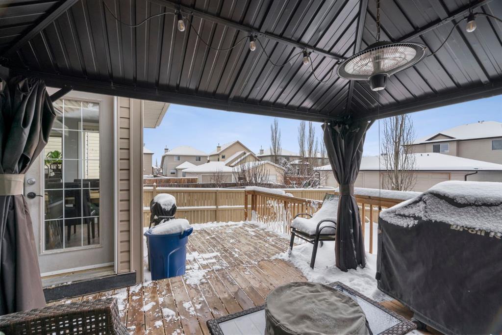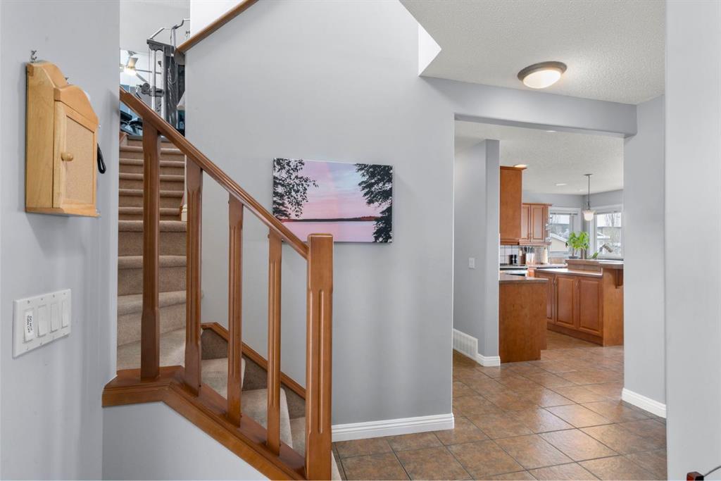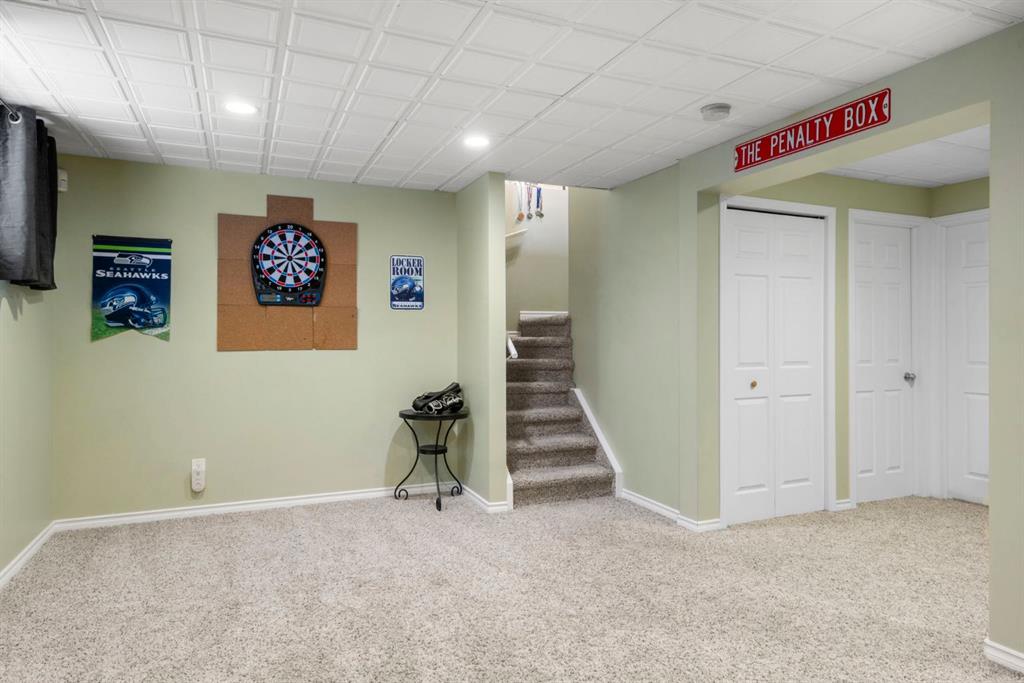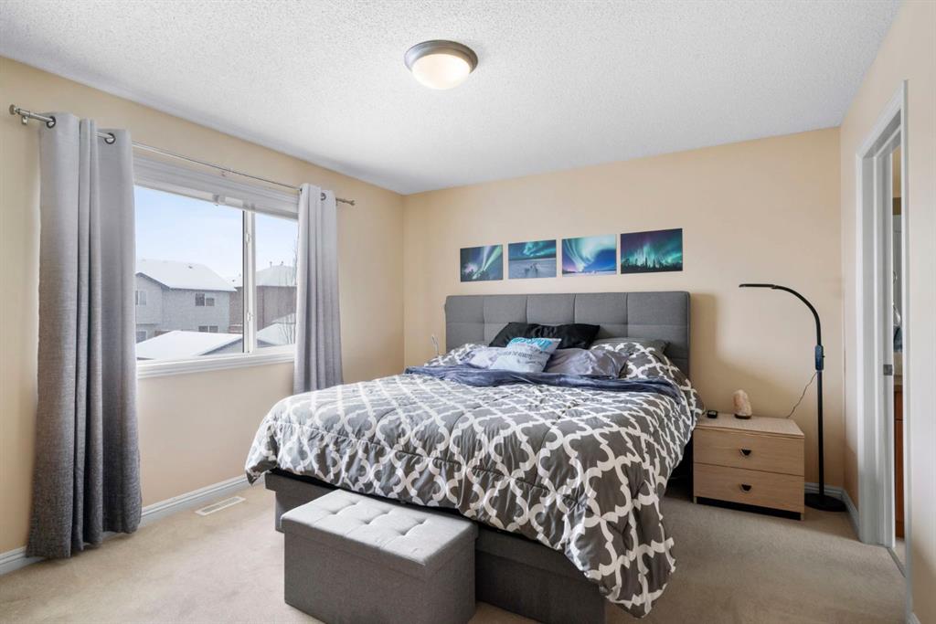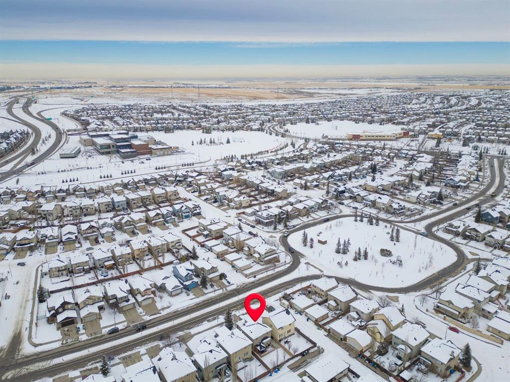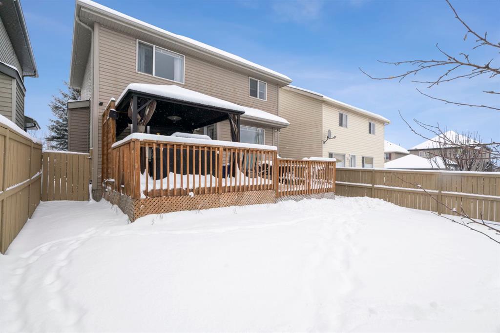 WELCOME TO THIS LOVINGLY MAINTAINED ONE-OWNER TWO-STOREY HOME WITH A DOUBLE ATTACHED GARAGE IN THE SOUGHT-AFTER COMMUNITY OF COVENTRY HILLS! Pride of ownership shines throughout, offering 2,368 SQ FT of functional living space, a family-friendly layout, and thoughtful upgrades including a newer roof (2022), new attic insulation and venting (2022), central air conditioning (2020), garage door (2025), and a newer deck with adjacent concrete pad (2021). Step inside to an open-concept main level designed for both everyday living and entertaining. The spacious living room features a cozy gas fireplace and large windows, creating a bright and inviting atmosphere. The kitchen is well-appointed with updated appliances, a center island, and a convenient pantry, seamlessly connecting to the dining area and overlooking the backyard. Step outside to the deck and concrete pad with back alley access, complete with two natural gas lines for a BBQ and fire table perfect for summer gatherings or relaxing outdoors. A powder room and laundry area complete the main level. The upper level showcases a unique split staircase leading to a versatile bonus room, ideal for a family lounge, home office, or gym. The spacious primary bedroom offers a peaceful retreat with a walk-in closet and a large 4-piece ensuite featuring a soaker tub and separate shower. Two additional well-sized bedrooms and a shared 4-piece bathroom complete this level, providing excellent space for growing families. The fully finished, professionally completed and permitted basement adds even more functional living space, featuring a recreation room, a fourth bedroom, and rough-ins for a future bathroom offering flexibility for customization. The double attached garage is fully insulated, providing added comfort and convenience year-round. The location is hard to beat with quick access to Deerfoot Trail and Stoney Trail, making commuting around Calgary simple. Calgary International Airport, shopping centres, transit hubs, and the Vivo Recreation Centre are all nearby. Families will love having multiple schools within walking distance, including rare K–12 access within the community, along with a bus stop for the elementary school just steps outside the home. Enjoy an abundance of walking paths, bike trails, parks, and green spaces close by. A move-in ready home offering space, comfort, and an unbeatable location.