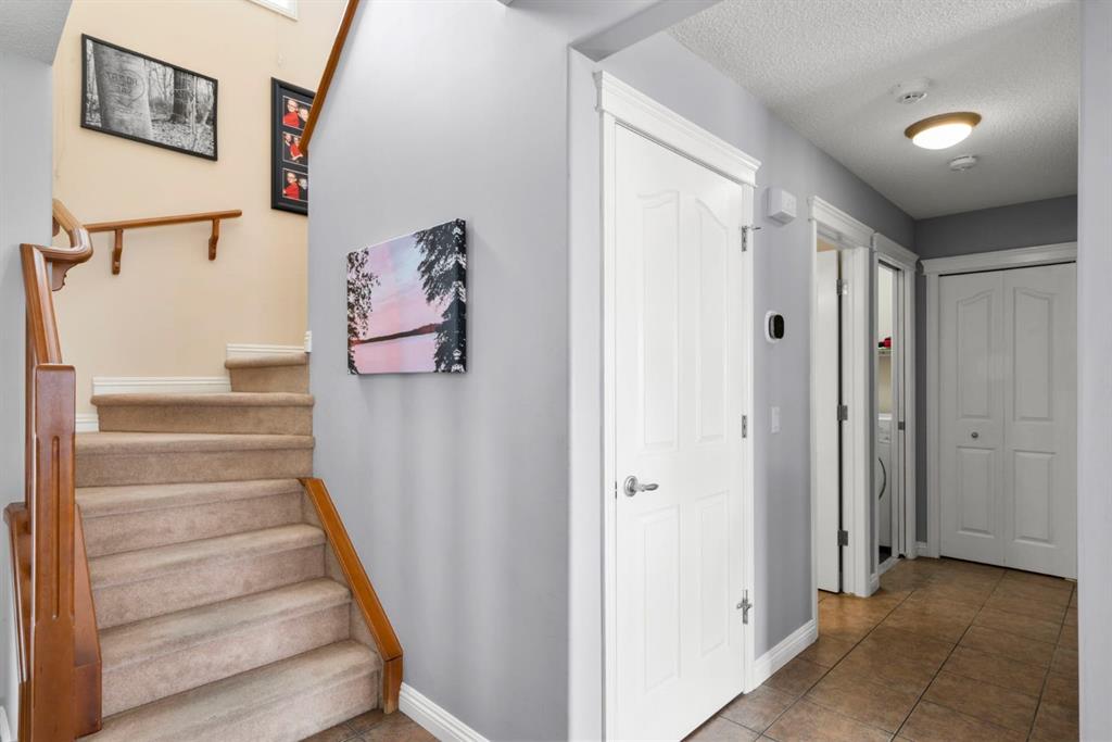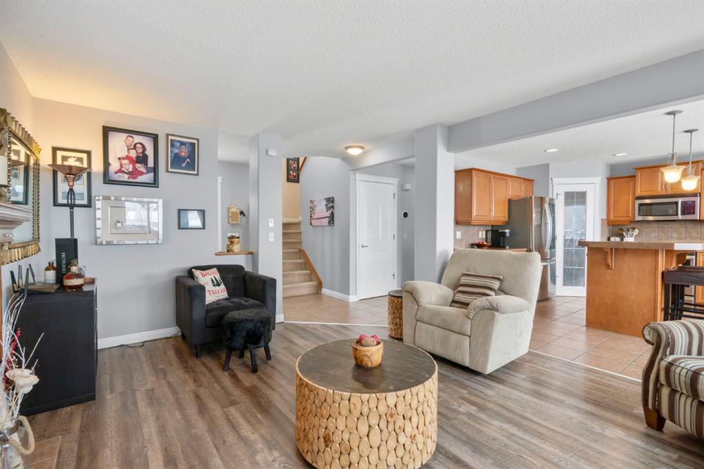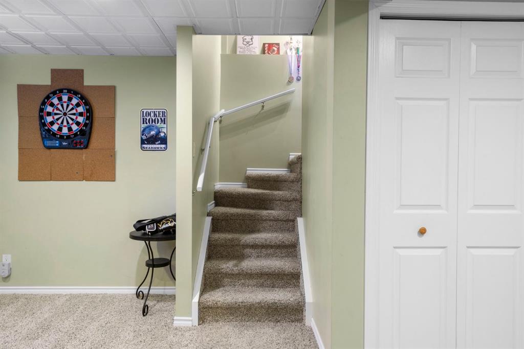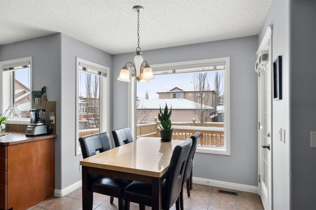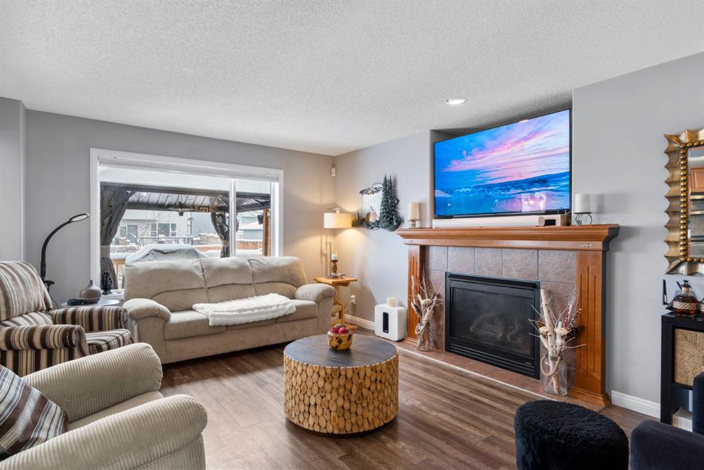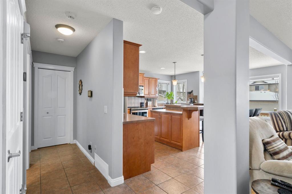 WELCOME TO THIS LOVINGLY MAINTAINED ONE-OWNER TWO-STOREY HOME WITH A DOUBLE ATTACHED GARAGE IN THE SOUGHT-AFTER COMMUNITY OF COVENTRY HILLS! Pride of ownership shines throughout, offering 2,368 SQ FT of functional living space, a family-friendly layout, and thoughtful upgrades including a newer roof (2022), new attic insulation and venting (2022), central air conditioning (2020), garage door (2025), and a newer deck with adjacent concrete pad (2021). Step inside to an open-concept main level designed for both everyday living and entertaining. The spacious living room features a cozy gas fireplace and large windows, creating a bright and inviting atmosphere. The kitchen is well-appointed with updated appliances, a center island, and a convenient pantry, seamlessly connecting to the dining area and overlooking the backyard. Step outside to the deck and concrete pad with back alley access, complete with two natural gas lines for a BBQ and fire table perfect for summer gatherings or relaxing outdoors. A powder room and laundry area complete the main level. The upper level showcases a unique split staircase leading to a versatile bonus room, ideal for a family lounge, home office, or gym. The spacious primary bedroom offers a peaceful retreat with a walk-in closet and a large 4-piece ensuite featuring a soaker tub and separate shower. Two additional well-sized bedrooms and a shared 4-piece bathroom complete this level, providing excellent space for growing families. The fully finished, professionally completed and permitted basement adds even more functional living space, featuring a recreation room, a fourth bedroom, and rough-ins for a future bathroom offering flexibility for customization. The double attached garage is fully insulated, providing added comfort and convenience year-round. The location is hard to beat with quick access to Deerfoot Trail and Stoney Trail, making commuting around Calgary simple. Calgary International Airport, shopping centres, transit hubs, and the Vivo Recreation Centre are all nearby. Families will love having multiple schools within walking distance, including rare K–12 access within the community, along with a bus stop for the elementary school just steps outside the home. Enjoy an abundance of walking paths, bike trails, parks, and green spaces close by. A move-in ready home offering space, comfort, and an unbeatable location.