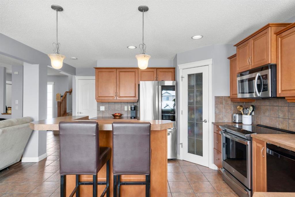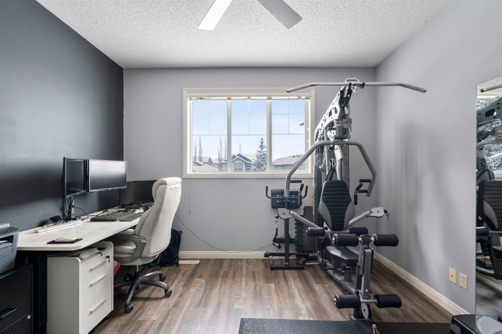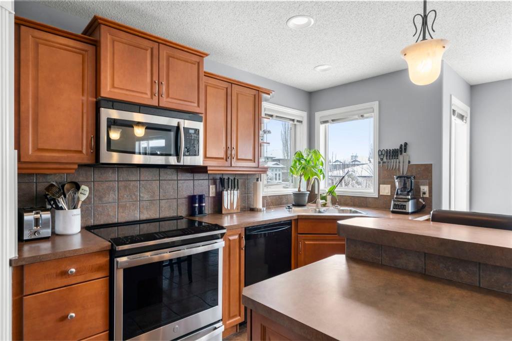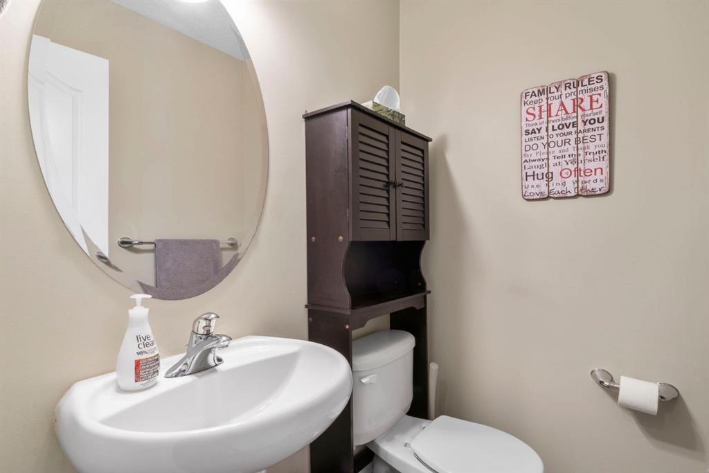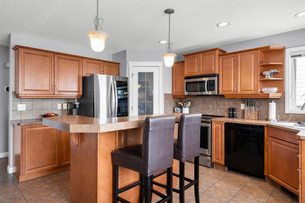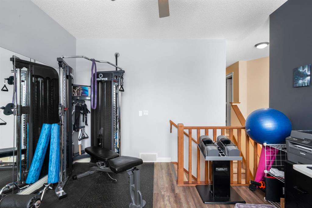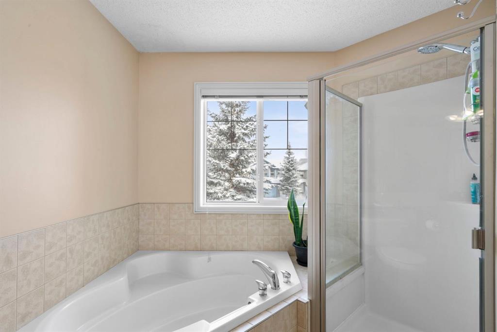 WELCOME TO THIS LOVINGLY MAINTAINED ONE-OWNER TWO-STOREY HOME WITH A DOUBLE ATTACHED GARAGE IN THE SOUGHT-AFTER COMMUNITY OF COVENTRY HILLS! Pride of ownership shines throughout, offering 2,368 SQ FT of functional living space, a family-friendly layout, and thoughtful upgrades including a newer roof (2022), new attic insulation and venting (2022), central air conditioning (2020), garage door (2025), and a newer deck with adjacent concrete pad (2021). Step inside to an open-concept main level designed for both everyday living and entertaining. The spacious living room features a cozy gas fireplace and large windows, creating a bright and inviting atmosphere. The kitchen is well-appointed with updated appliances, a center island, and a convenient pantry, seamlessly connecting to the dining area and overlooking the backyard. Step outside to the deck and concrete pad with back alley access, complete with two natural gas lines for a BBQ and fire table perfect for summer gatherings or relaxing outdoors. A powder room and laundry area complete the main level. The upper level showcases a unique split staircase leading to a versatile bonus room, ideal for a family lounge, home office, or gym. The spacious primary bedroom offers a peaceful retreat with a walk-in closet and a large 4-piece ensuite featuring a soaker tub and separate shower. Two additional well-sized bedrooms and a shared 4-piece bathroom complete this level, providing excellent space for growing families. The fully finished, professionally completed and permitted basement adds even more functional living space, featuring a recreation room, a fourth bedroom, and rough-ins for a future bathroom offering flexibility for customization. The double attached garage is fully insulated, providing added comfort and convenience year-round. The location is hard to beat with quick access to Deerfoot Trail and Stoney Trail, making commuting around Calgary simple. Calgary International Airport, shopping centres, transit hubs, and the Vivo Recreation Centre are all nearby. Families will love having multiple schools within walking distance, including rare K–12 access within the community, along with a bus stop for the elementary school just steps outside the home. Enjoy an abundance of walking paths, bike trails, parks, and green spaces close by. A move-in ready home offering space, comfort, and an unbeatable location.