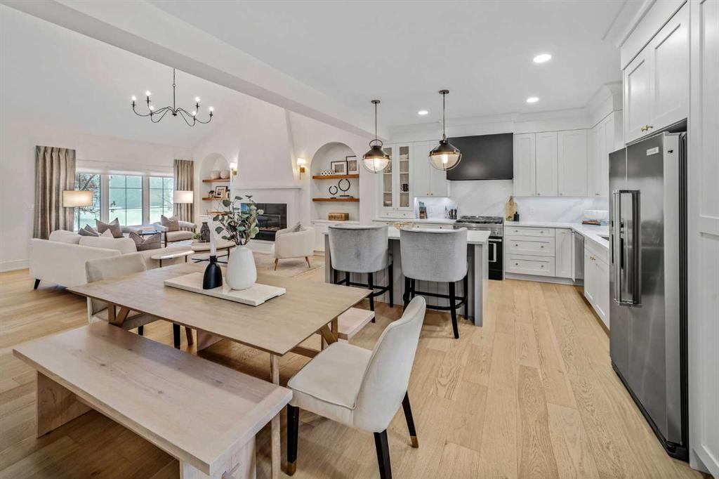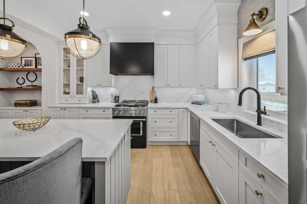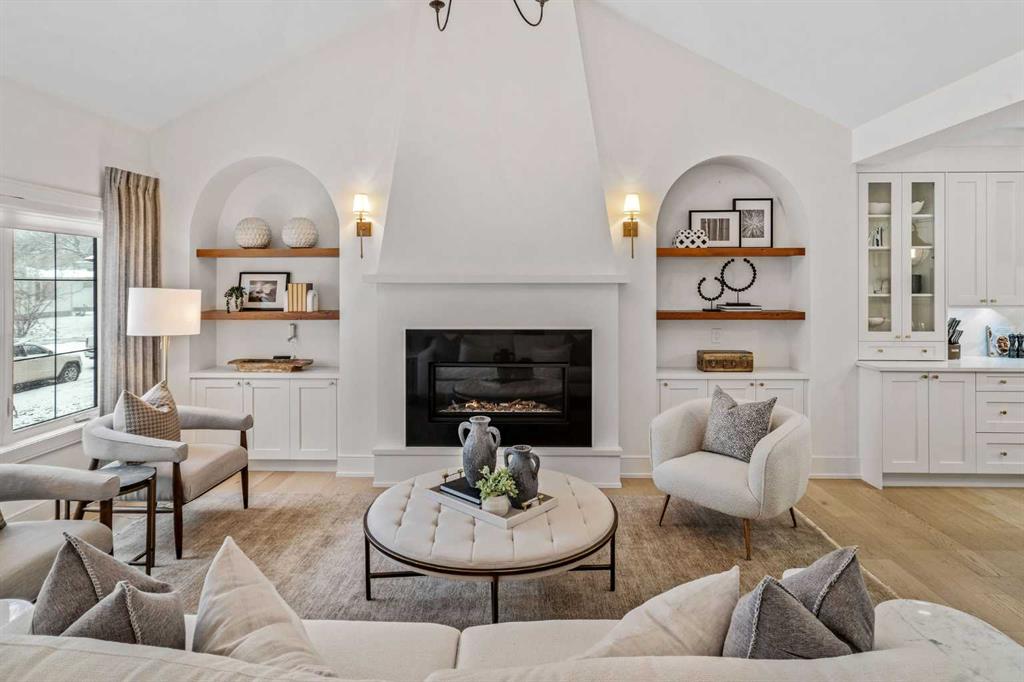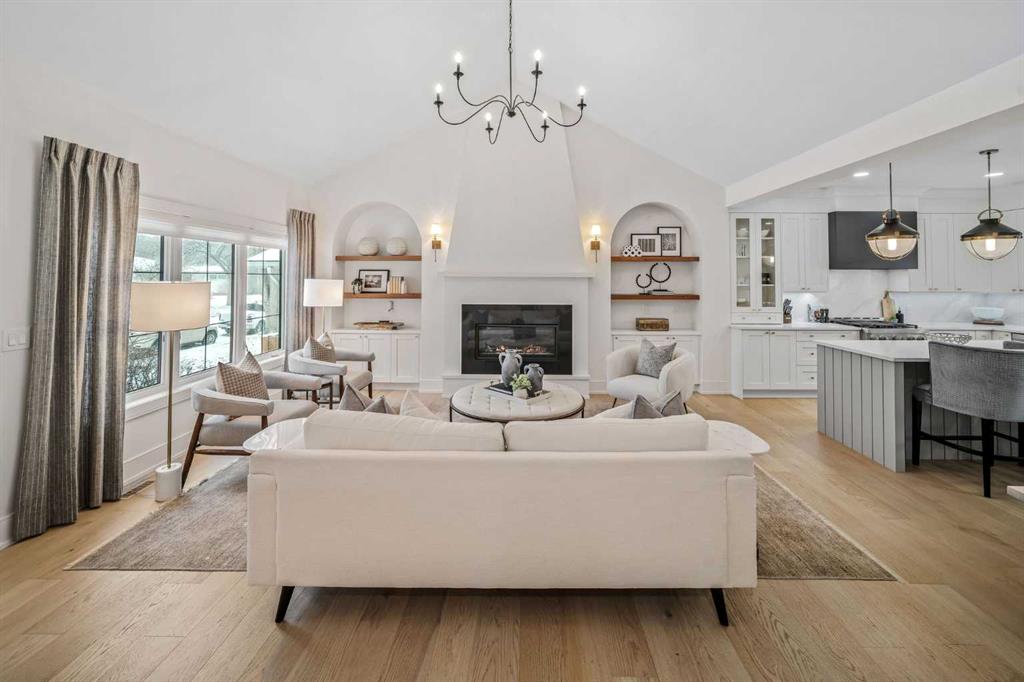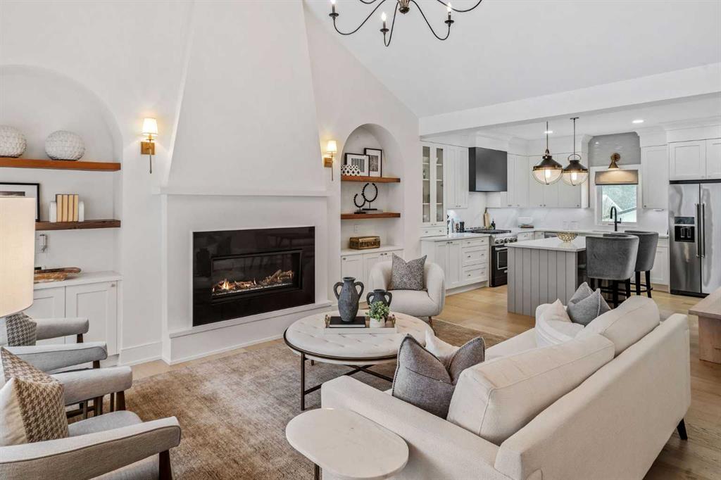 OPEN HOUSES ON FRIDAY, SAT & SUNDAY- APRIL 3RD, 4TH & 5TH - 1pm to 3pm: Welcome to the kind of home that stops scrolls and starts conversations. This modern craftsman bungalow offers over 2700 sqft of beautifully developed luxury living, featuring 2 bedrooms on the main level, 3 additional bedrooms below, and 3 full baths, blending timeless architecture with designer appointed interiors. Soaring vaulted ceilings and an airy open concept layout create an immediate sense of space, while the living room is anchored by a stunning fireplace framed with custom arched built ins, perfect for cozy evenings or elevated entertaining. Natural light pours through expansive windows, enhancing the home’s soft, curated palette. The chef inspired kitchen features sleek custom cabinetry, quartz countertops, a statement hood fan, premium stainless steel appliances, and a generous island with breakfast bar seating, ideal for morning coffee rituals or gathering with friends. Along the backyard facing wall, a beautifully integrated coffee bar, extensive built in storage, and thoughtfully designed pantry shelving elevate both form and function, while a private mudroom entrance to the kitchen keeps daily living effortlessly tucked away. The main floor hosts two bedrooms, including a show stopping primary retreat with vaulted ceilings, subtle shiplap detailing, and a spa caliber ensuite with oversized custom shower and walk in closet, offering a true sense of escape at the end of the day. The second bedroom, currently styled as an office, offers flexible living for today’s lifestyle. The dining area connects seamlessly to the main living spaces, creating the perfect backdrop for everything from intimate dinners to lively celebrations. Downstairs, the fully developed lower level expands your lifestyle with a spacious family room ready for movie nights, a flexible gym or yoga space, sleek wet bar for effortless hosting, three additional bedrooms, a full bath, and dedicated laundry room. Outside, a beautifully curated backyard blends architectural concrete with low maintenance turf, featuring a custom patterned patio that defines a dedicated bbq and entertaining area, along with a raised composite deck designed for lounging and gathering. A gas line has been extended to the deck for a future fire table, creating the perfect setting for summer evenings and quiet moments alike, all framed by mature trees, curated rock beds, and full privacy fencing, plus a heated double detached garage. This architectural stunner pairs its undeniable curb appeal with everyday comfort, including air conditioning for warm Calgary summers. Ideally located in one of Calgary’s most desired neighbourhoods, you’re just steps to the shops, eateries, and cafes of Lakeview, with quick access to North Glenmore Park, top rated schools, and major routes for easy city or mountain escapes. This home offers the ultimate lifestyle, and it is ready to impress.