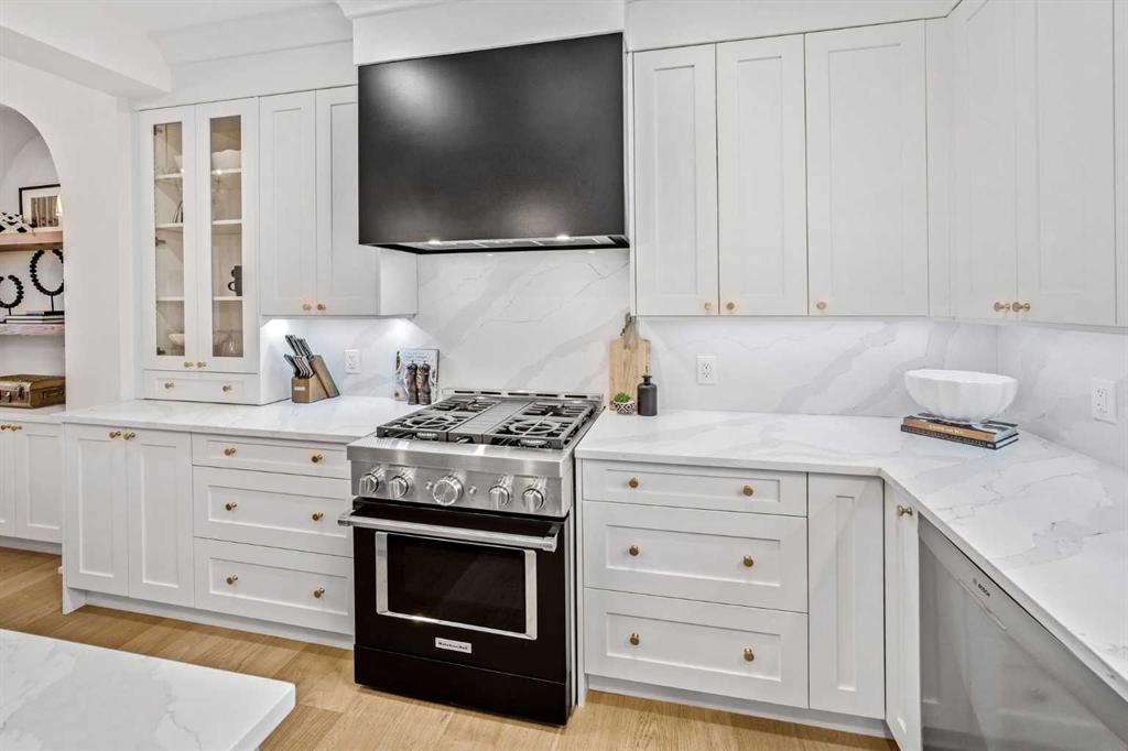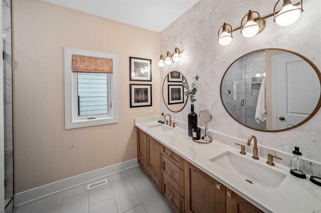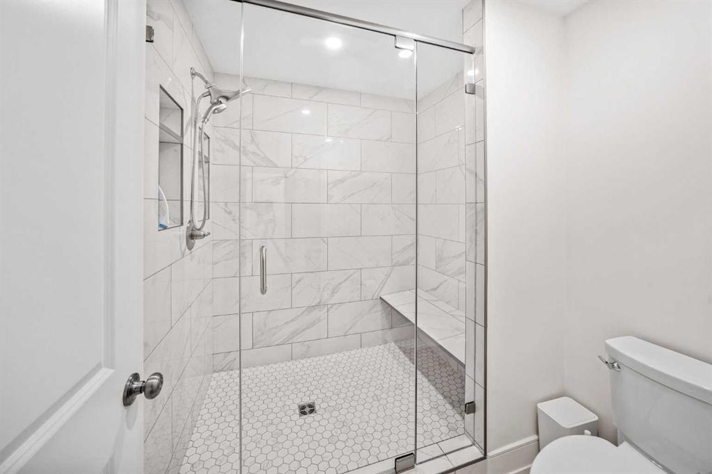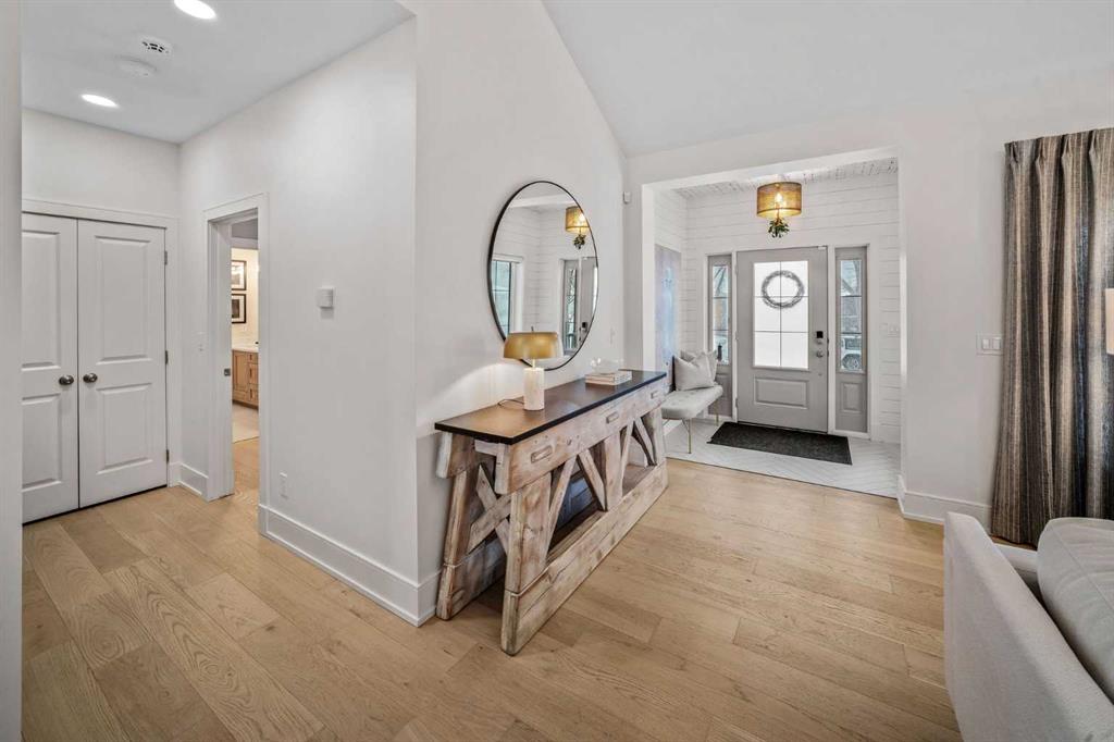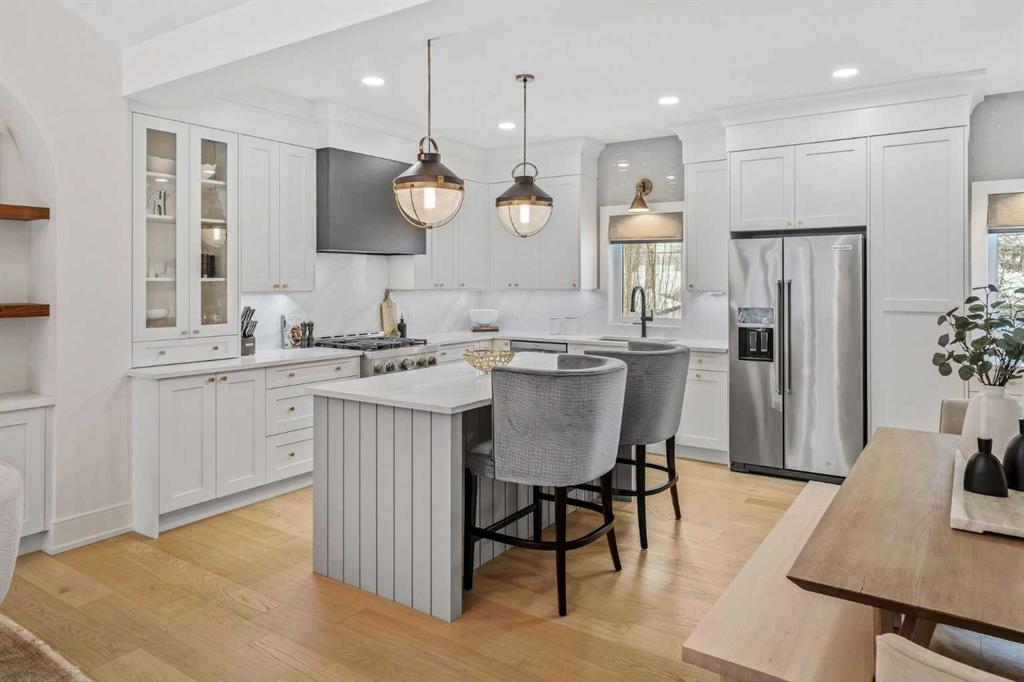 OPEN HOUSES ON FRIDAY, SAT & SUNDAY- APRIL 3RD, 4TH & 5TH - 1pm to 3pm: Welcome to the kind of home that stops scrolls and starts conversations. This modern craftsman bungalow offers over 2700 sqft of beautifully developed luxury living, featuring 2 bedrooms on the main level, 3 additional bedrooms below, and 3 full baths, blending timeless architecture with designer appointed interiors. Soaring vaulted ceilings and an airy open concept layout create an immediate sense of space, while the living room is anchored by a stunning fireplace framed with custom arched built ins, perfect for cozy evenings or elevated entertaining. Natural light pours through expansive windows, enhancing the home’s soft, curated palette. The chef inspired kitchen features sleek custom cabinetry, quartz countertops, a statement hood fan, premium stainless steel appliances, and a generous island with breakfast bar seating, ideal for morning coffee rituals or gathering with friends. Along the backyard facing wall, a beautifully integrated coffee bar, extensive built in storage, and thoughtfully designed pantry shelving elevate both form and function, while a private mudroom entrance to the kitchen keeps daily living effortlessly tucked away. The main floor hosts two bedrooms, including a show stopping primary retreat with vaulted ceilings, subtle shiplap detailing, and a spa caliber ensuite with oversized custom shower and walk in closet, offering a true sense of escape at the end of the day. The second bedroom, currently styled as an office, offers flexible living for today’s lifestyle. The dining area connects seamlessly to the main living spaces, creating the perfect backdrop for everything from intimate dinners to lively celebrations. Downstairs, the fully developed lower level expands your lifestyle with a spacious family room ready for movie nights, a flexible gym or yoga space, sleek wet bar for effortless hosting, three additional bedrooms, a full bath, and dedicated laundry room. Outside, a beautifully curated backyard blends architectural concrete with low maintenance turf, featuring a custom patterned patio that defines a dedicated bbq and entertaining area, along with a raised composite deck designed for lounging and gathering. A gas line has been extended to the deck for a future fire table, creating the perfect setting for summer evenings and quiet moments alike, all framed by mature trees, curated rock beds, and full privacy fencing, plus a heated double detached garage. This architectural stunner pairs its undeniable curb appeal with everyday comfort, including air conditioning for warm Calgary summers. Ideally located in one of Calgary’s most desired neighbourhoods, you’re just steps to the shops, eateries, and cafes of Lakeview, with quick access to North Glenmore Park, top rated schools, and major routes for easy city or mountain escapes. This home offers the ultimate lifestyle, and it is ready to impress.