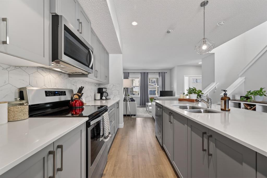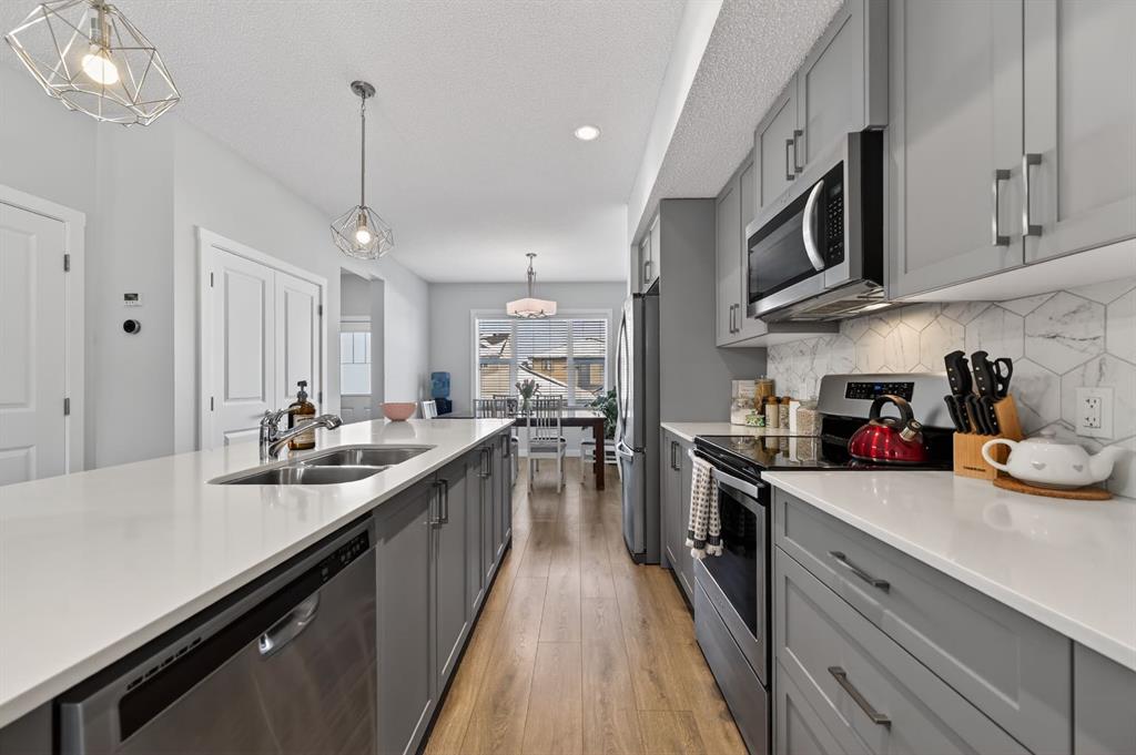 Welcome to this beautiful home, crafted by Shane Homes in the desirable Hillcrest community. This two-storey Duplex features Smart Home technology, appears brand new and boasts exceptional curb appeal. This home is a prime opportunity for you. It includes a spacious front veranda, beautiful landscaping and a stone facade. The bright, open-plan interior is impressive, with nine-foot ceilings on the main level, a spacious front room with large windows and a formal living area. The dining area, spacious kitchen and island, all with gleaming quartz countertops, perfectly complement the upgraded stainless appliances and grey cabinets. Upstairs, you will find a spacious primary suite with a walk-in closet, complete with organizers and a 3 piece en-suite. Two other nicely appointed bedrooms and a convenient upstairs laundry room and 4 piece main bath complete the upper level. The unspoiled basement offers design potential. The backyard features a large deck ideal for barbecues, a fully fenced area and a double garage measuring 19’4” x 21’2”. Located near schools, parks and shopping, this home presents a fantastic opportunity. Book your private viewing today.