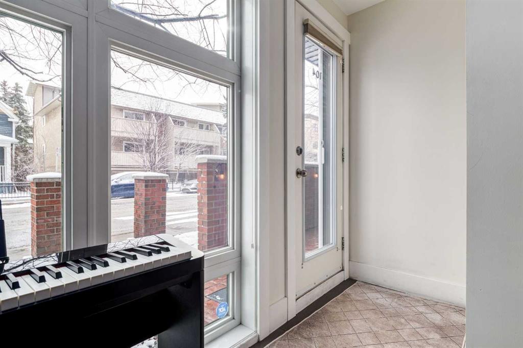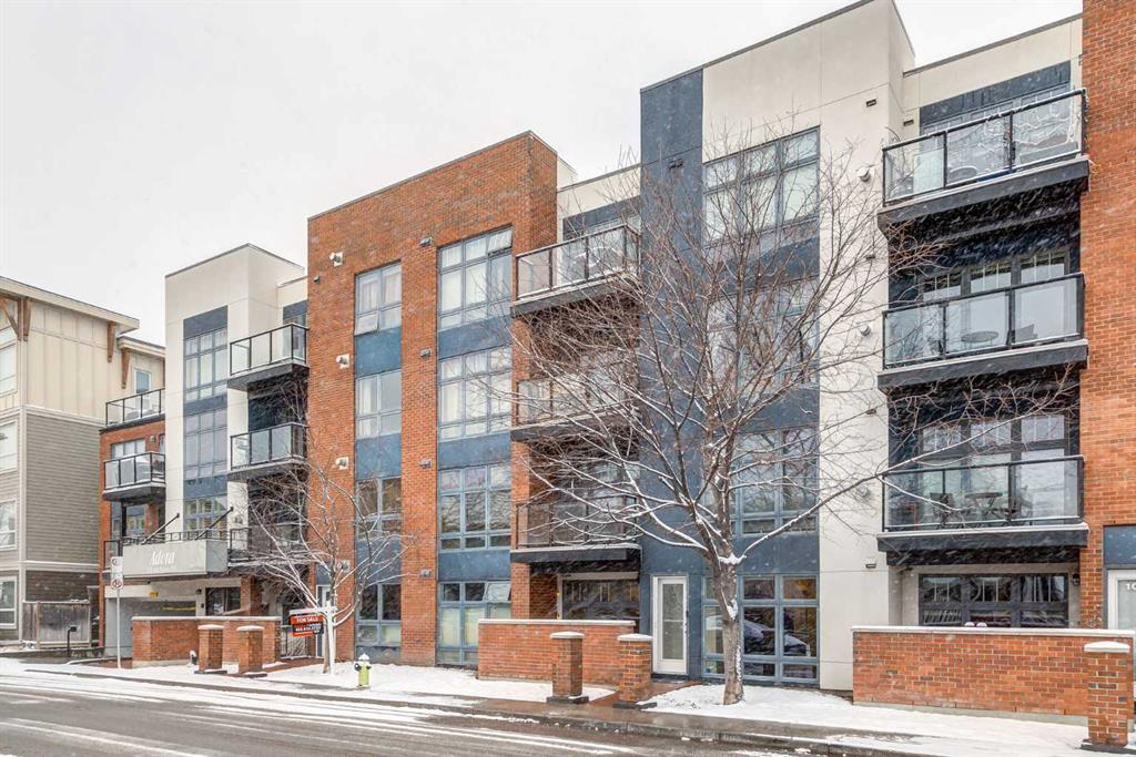 Welcome to an exceptional opportunity in vibrant Renfrew—where convenience meets character. This unique main-floor residence offers the rare advantage of a private exterior entrance for quick access without having to go through the building, paired with a bright, patio complete with a gas hookup—ideal for sunrise coffees and effortless summer grilling. Spanning 582 sq. ft., the thoughtfully designed interior is flooded with natural light through expansive floor-to-ceiling windows and kept comfortable year-round with in-floor heating. The contemporary kitchen is both stylish and functional, showcasing rich maple cabinetry, polished quartz countertops, stainless steel appliances, and a versatile eating bar that’s perfect for casual dining or entertaining. The well-appointed bedroom features a generous double closet along with a dedicated workspace nook—perfect for those working from home. A clean, modern four-piece bathroom, in-suite laundry, and premium Hunter Douglas window coverings add everyday comfort and practicality. This unit also includes a covered parking stall (#1) and an assigned storage locker (#2), ensuring all your needs are met. Residents of Adora enjoy access to a rooftop terrace with sweeping downtown skyline views, as well as the convenience of elevator access. Situated just steps from the Bow River pathway system, local parks, the Calgary Zoo, and the vibrant shops and cafés of Renfrew and Bridgeland, this location offers an unbeatable urban lifestyle with quick access to downtown and transit. Whether you’re a first-time buyer or investor seeking a turnkey property, this move-in-ready condo delivers on all fronts. Schedule your private showing today!!