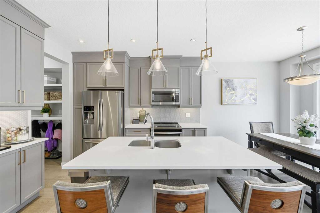 Located on a quiet street just steps from parks and scenic pathways, this beautifully upgraded family home offers nearly 2,800 sq. ft. of modern living space. The bright, open-concept main floor features hardwood flooring, 9’ ceilings, and upgraded stainless steel appliances including a spacious fridge and electric range, walk-through pantry, and large island. The main level also includes a spacious living room with gas fireplace, dining area overlooking the backyard, and a den/office. Upstairs offers 3 bedrooms, including a primary suite with walk-in closet and spa-like ensuite featuring a double vanity, walk-in shower, and soaker tub, along with upper laundry. The partially finished basement includes 2 bedrooms and 1 bathroom, with one bedroom and the bathroom fully completed, offering excellent potential for future development or extended family living. Enjoy the fully landscaped, private backyard with stamped concrete patio and gazebo, perfect for entertaining. Situated in the family-friendly South Windsong community close to schools, shopping, parks, and amenities. Move-in ready and beautifully maintained—this home is a must-see!!