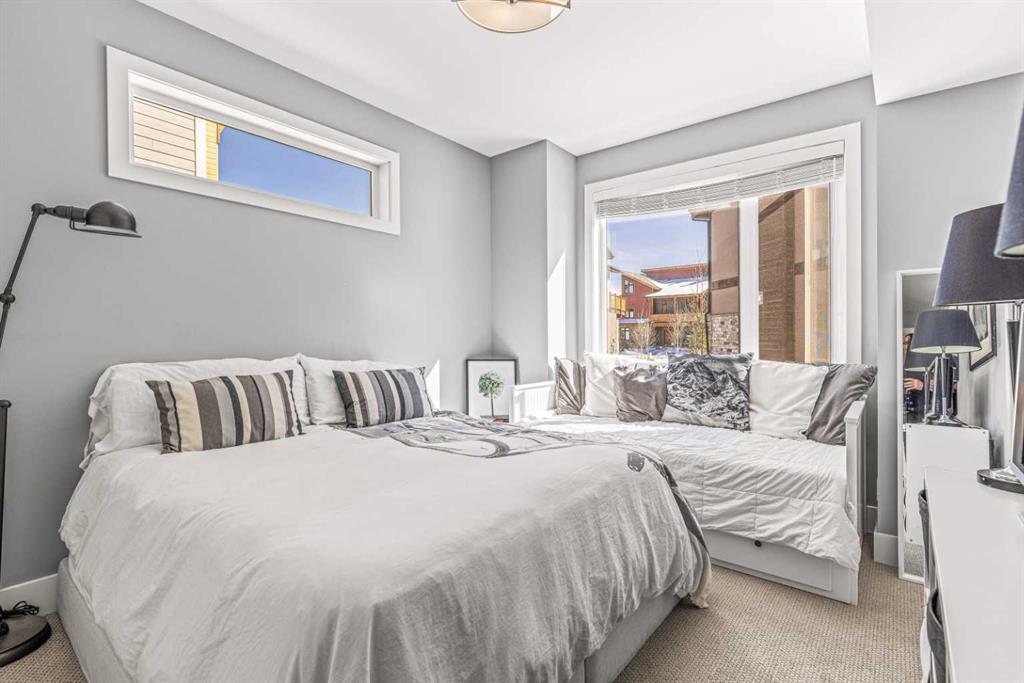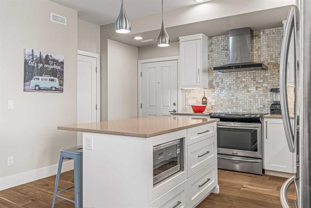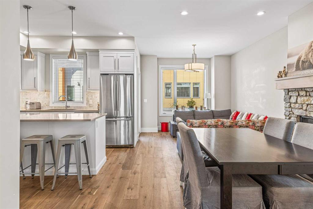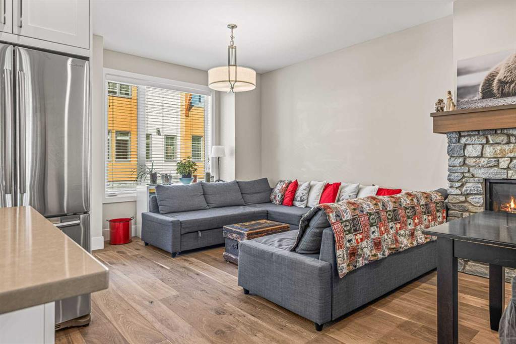 Located in the highly desirable Three Sisters Mountain Village, this meticulously maintained single-level end unit presents an open-concept floor plan with modern finishes. The kitchen boasts sleek quartz countertops, stainless steel appliances, and luxury vinyl plank flooring, seamlessly extending to the spacious deck. The unit features two large bedrooms and two bathrooms, with lovely mountain views. Residents enjoy easy access to nearby hiking and biking trails, playgrounds, the renowned Stewart Creek Golf Course, and in close proximity to “The Gateway” commercial space, which promises an IGA along with additional amenities. The property includes a single attached garage and a separate heated gear and storage area, ideal for full-time living or a weekend retreat—all complemented by low condo fees!