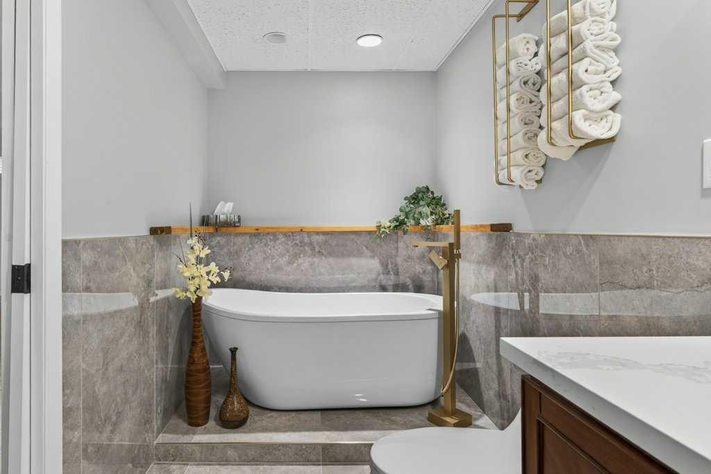 Welcome to prestigious Willow Park! This beautifully renovated bungalow sits on a meticulously landscaped 50’ x 110’ lot on a quiet, tree-lined street. With over 2,300 sq ft of finished living space (1,243 sq ft up + 1,101 sq ft down), this home offers 5 spacious bedrooms, 2 stylish bathrooms, and an oversized single garage. Step inside to a bright, open main floor featuring a fully renovated kitchen (2022) with white shaker cabinetry, stainless steel appliances (including a convection oven and fridge with water/ice), dimmable pot lights, and smooth painted ceilings. The main bathroom has been completely transformed with a custom vanity and a luxurious glass walk-in shower. The basement has a second primary bedroom ensuite with heated ceramic tiles in the bathroom and around the bedroom. It also includes an outdoor hot tub and an upgraded electric panel. The house is surrounded with a beautiful concrete pathway. This home is loaded with upgrades: