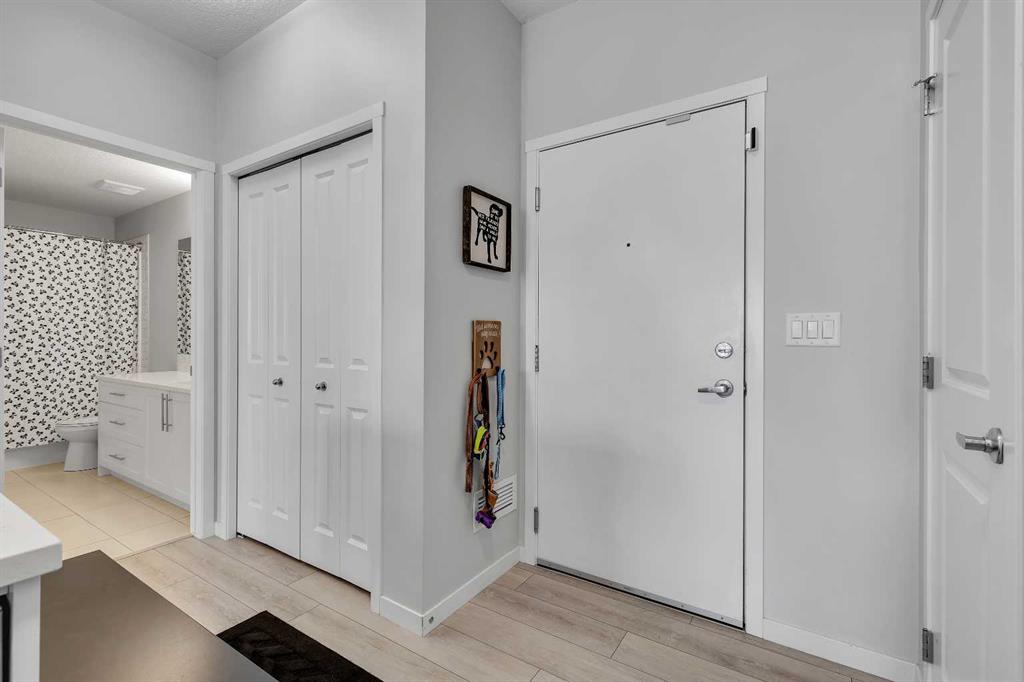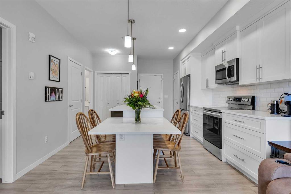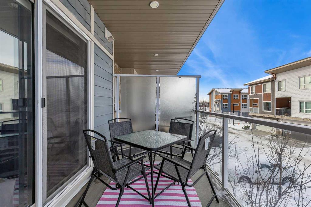 2nd floor original owner west facing unit over looking a green space, located in the Lake community of Harvest Hills. Shows pride of ownership, the upgrades include: LVP flooring, stainless steel appliances, closet organizer in 2nd bedroom, pull out drawers in kitchen & bathroom, quartz counters, gas line for bbq & underground parking. This bright open unit features 2 bedrooms, full bathroom, laundry, spacious living room offering patio doors that lead to the west facing deck & a good size kitchen that offers a larger island that has a lower section for eating. Close to schools, shopping, Vivo, Library, bus, green spaces restaurants & all other amenities. Click on link to view 3D walk through.