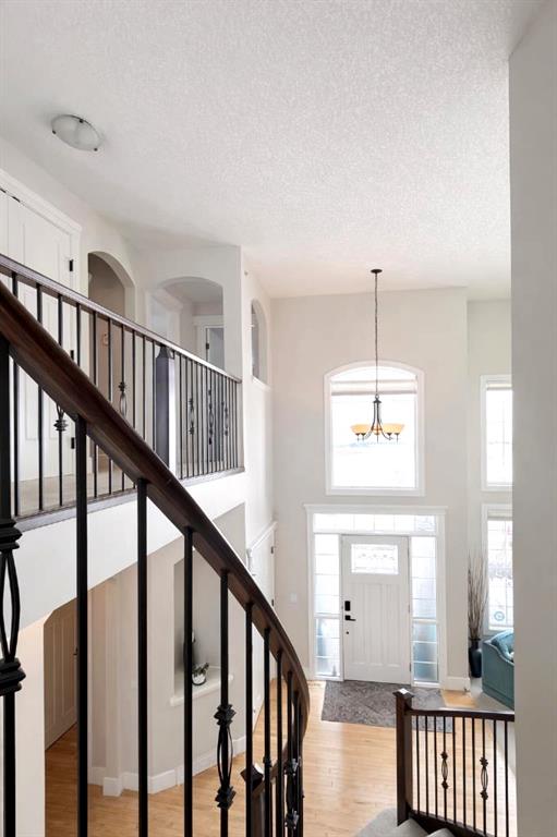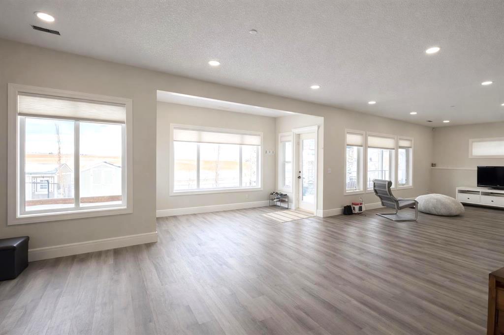 **OPEN HOUSE Saturday April 4th 2pm-4pm** Introducing this amazing luxury home in the prestigious ‘Lakes of Muirfield’—offering over 4,200 sq ft of developed living space, perfectly positioned backing onto the canal and golf course with greenspace to the side and rear, creating a rare private setting with no neighbours behind! This stunning residence showcases 4 bedrooms and 4 bathrooms, impressive curb appeal, and a grand interior featuring hardwood flooring and a striking curved staircase. The main level boasts a vaulted family room with oversized windows open to above, a formal dining room, and an elegant open-to-above living room, flooded with natural light. The spacious kitchen is designed for both function and style with rich cappuccino cabinetry, a corner pantry, a large sit-up island with prep sink, an additional main sink overlooking the views, and a bright dining nook with tray ceiling and direct access to the large deck with gas line for BBQ—perfect for entertaining. A private office/den with sleek sliding pocket doors and a powder room complete this level. Upstairs, a grand double-door entry leads to the luxurious primary retreat featuring a spa-inspired ensuite with oversized shower, standalone soaker tub, dual vanities, and a generous walk-in closet, while two additional bedrooms—both with walk-in closets—along with a full bathroom and convenient upper laundry complete the upper floor, all enhanced by open-to-below design elements that elevate the home’s sense of space and elegance. The fully developed basement offers vinyl plank flooring throughout, a large recreation/entertainment space, gym area, fourth bedroom, and full bathroom, with direct access to a covered patio and beautifully landscaped yard featuring a pergola and shed, all set against serene canal and golf course views. Note, New roof, siding & trim! Ideally located just minutes to Strathmore, Langdon, and Chestermere, with an easy 20-minute commute to Calgary and close proximity to the new De Havilland plant—this is luxury living in a peaceful, scenic setting.