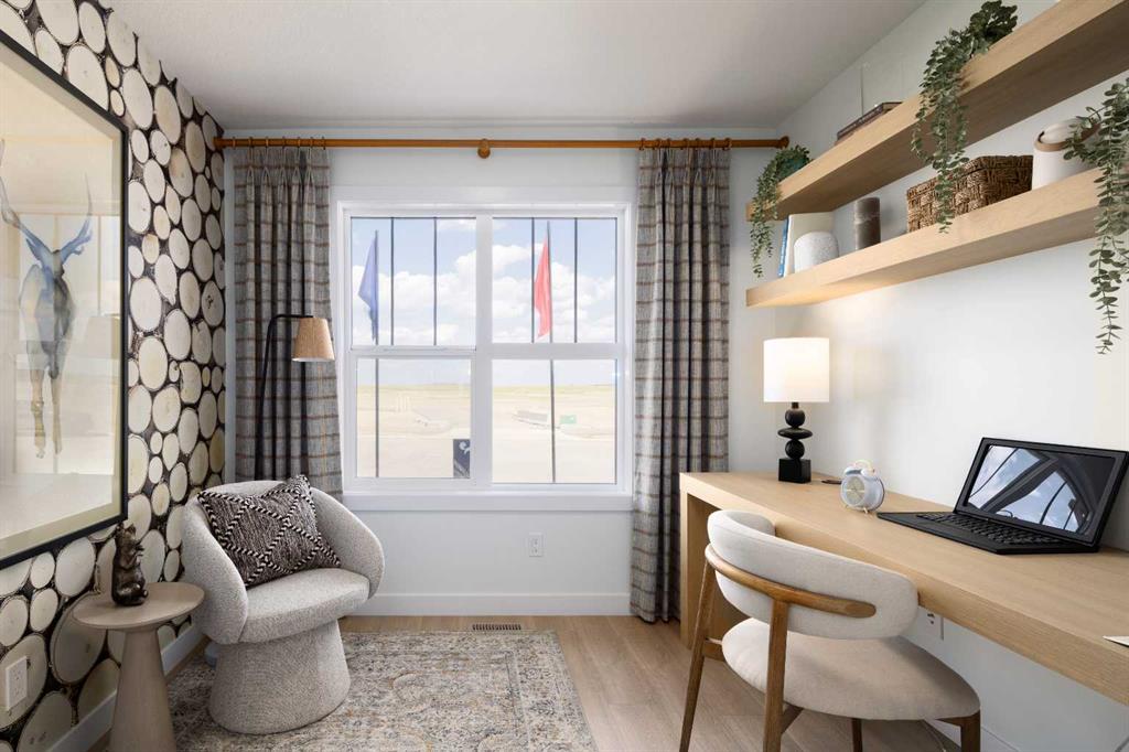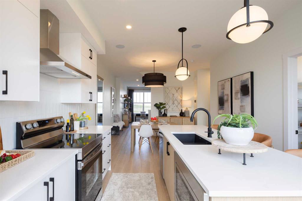 ** Brand New No Condo Fee Townhome Built by Genesis Homes ** Quick Possession Available | 1,734 SqFt | 3 Beds | 2.5 Baths | Double Attached Garage | End Unit | Summer 2026 Possession | Open Concept Layout | Elevated Finishes Throughout | Quartz Countertops | Designer Backsplash | Full Height Cabinetry | Stainless Steel Builder Appliance Package | Walk-in Pantry | Wide Plank LVP Flooring | Upper Level Laundry | Smart Home Features | Private Balcony | BBQ Gas Line | James Hardie Siding | Welcome to the Alicia model by Genesis Homes—offering 1,734 SqFt of thoughtfully designed living space in a brand new end unit townhome with NO condo fees. Perfectly suited for families, professionals, or investors, this home blends modern style with everyday functionality. The main level welcomes you with a spacious foyer and direct access to your double attached garage, providing convenience and extra storage. Head upstairs to a bright and airy open-concept living space where large windows flood the home with natural light. The kitchen is beautifully appointed with quartz countertops, full height cabinetry, a designer backsplash, stainless steel appliances, and a walk-in pantry—ideal for both daily living and entertaining. The central island with bar seating seamlessly connects to the dining area and spacious living room, creating the perfect flow for hosting or relaxing. Step out onto your private balcony complete with a BBQ gas line—perfect for summer evenings. The upper level features three sizeable bedrooms, including a comfortable primary retreat with a walk-in closet and a private ensuite bath. Bedrooms two and three share a well-appointed full bathroom, and the upper floor laundry adds everyday convenience right where you need it most. Finished with durable James Hardie siding and equipped with smart home features, this home offers both style and peace of mind. Located just moments from essential amenities and nestled close to a picturesque park, you’ll enjoy easy access to shops, dining, and outdoor activities. Take in breathtaking mountain views and sunsets as you stroll by the serene pond. Don’t miss your opportunity to own this stunning Alicia model—book your showing today! *Interior photos are representative of 145 Wild Rose Way SE *Alicia Model
