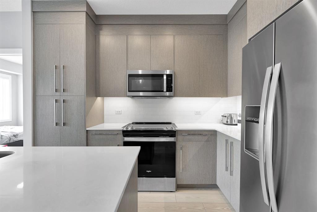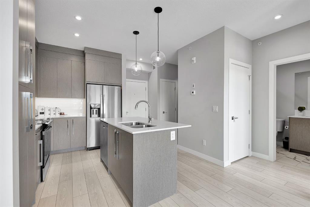Experience elevated living featuring 2 spacious bedrooms, 2 beautifully appointed bathrooms, and a versatile den, this thoughtfully designed home provides the perfect balance of function and style. Step inside to discover a bright and airy open-concept layout, enhanced by large windows that flood the space with natural light while framing the stunning mountain backdrop. The living and dining areas flow seamlessly together, creating an inviting space for both quiet evenings and effortless entertaining. The top-floor location ensures added privacy, reduced noise, and an elevated sense of tranquility. The modern kitchen is both stylish and functional, featuring sleek quartz countertops, stainless steel appliances, and ample cabinetry, perfectly designed for everyday living and hosting alike. The primary bedroom serves as a peaceful retreat, complete with generous space and a private ensuite bathroom. The second bedroom is equally well-sized, ideal for guests, family, or additional workspace, complemented by a second full bathroom. Enjoy your morning coffee or unwind at the end of the day while taking in the serene mountain views, an ever-changing natural backdrop that enhances the overall living experience. Located in a quiet, well-established neighbourhood, this residence offers a peaceful setting without sacrificing convenience. With easy access to public transit, shopping centres, dining, and everyday essentials, everything you need is just moments away. Additional highlights include secure underground parking and a dedicated storage unit, providing both comfort and practicality. Residents of this meticulously maintained building enjoy a selection of desirable amenities, including a fully equipped fitness centre and a pet spa, perfect for active lifestyles and pet-friendly living. This is a rare opportunity to own a top-floor home that combines scenic beauty, modern finishes, and exceptional convenience in one inviting package. Experience it for yourself, book your private tour today.