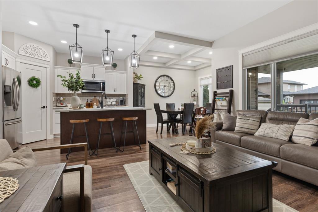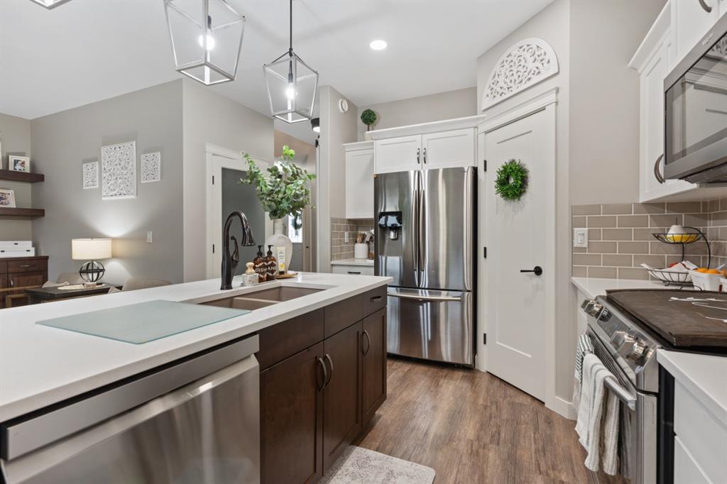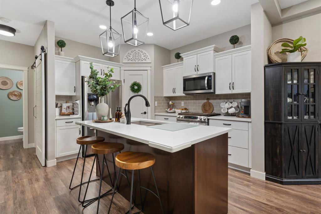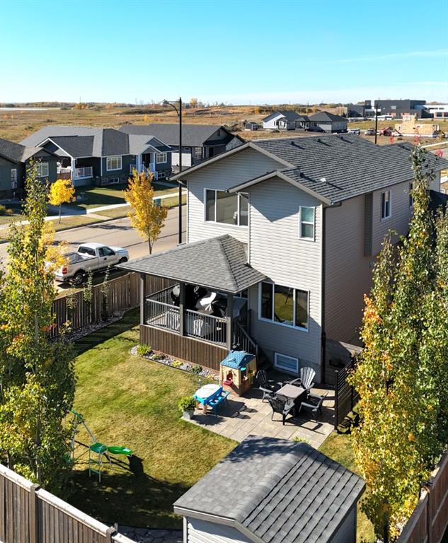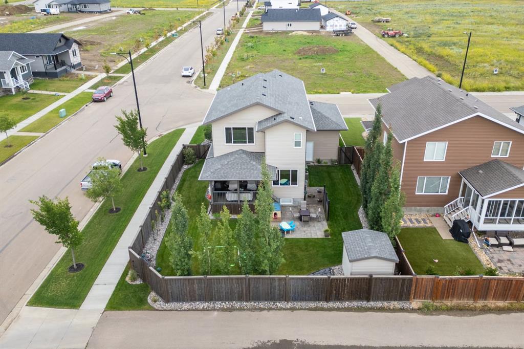 Welcome to this exceptional, immaculately maintained two-storey home, perfectly situated on a coveted corner lot in the prestigious community of Valleyview West. From the moment you arrive, the pride of ownership is unmistakable, this home presents like new and stands out as one of the most pristine offerings on the market. Thoughtfully designed for modern family living with a refined touch, the main floor welcomes you with a bright, airy foyer and striking open staircase that sets the tone for the space beyond. The open-concept layout seamlessly connects the living, dining, and kitchen areas, where expansive east-facing windows flood the home with natural light and beautifully frame the backyard like a living piece of art. A stunning gas fireplace anchors the living room, creating a warm and sophisticated gathering space, while high-end vinyl plank flooring adds both durability and style. The kitchen is as functional as it is beautiful, featuring crisp white cabinetry, gleaming quartz countertops, upgraded stainless steel appliances, and a spacious island perfect for everything from busy mornings to weekend baking. A walk-through pantry offers effortless access to the garage an everyday luxury you’ll appreciate time and time again. Step outside from the dining area to your covered deck, overlooking a professionally landscaped, fully fenced backyard designed for both relaxation and play. With a lower patio, storage shed, and ample green space, it’s the ideal setting for family time or effortless entertaining. The main floor is completed by a stylish powder room and a thoughtfully designed laundry and mudroom with direct garage access, perfectly suited to busy family life. Upstairs, a cozy bonus room offers the perfect retreat for movie nights or quiet evenings in. Three bedrooms include a serene primary suite featuring a walk-in closet and a spa-inspired ensuite, while a well-appointed 4-piece bathroom comfortably serves the additional bedrooms. The fully finished basement extends your living space with a welcoming family room complete with wet bar, an additional bedroom, and a full 3-piece bathroom, ideal for guests or growing families, all finished to the same exceptional standard as the rest of the home. Additional highlights include central air conditioning, on-demand hot water, Dricore subflooring in the basement, and a beautifully curated outdoor space with covered deck and patio for year-round enjoyment. Located just steps from scenic valley views, parks, walking trails, and the new high school, this home offers a rare blend of executive style, thoughtful design, and true family comfort.