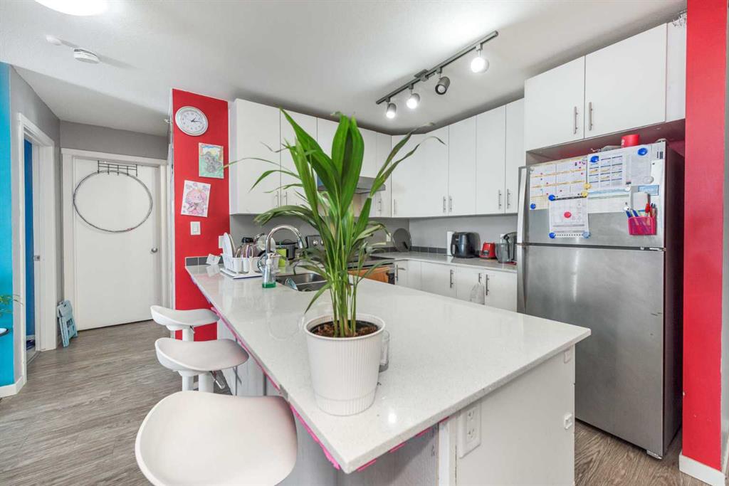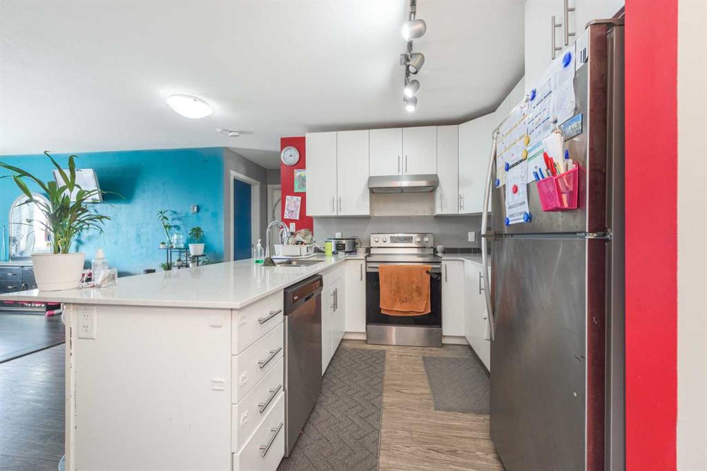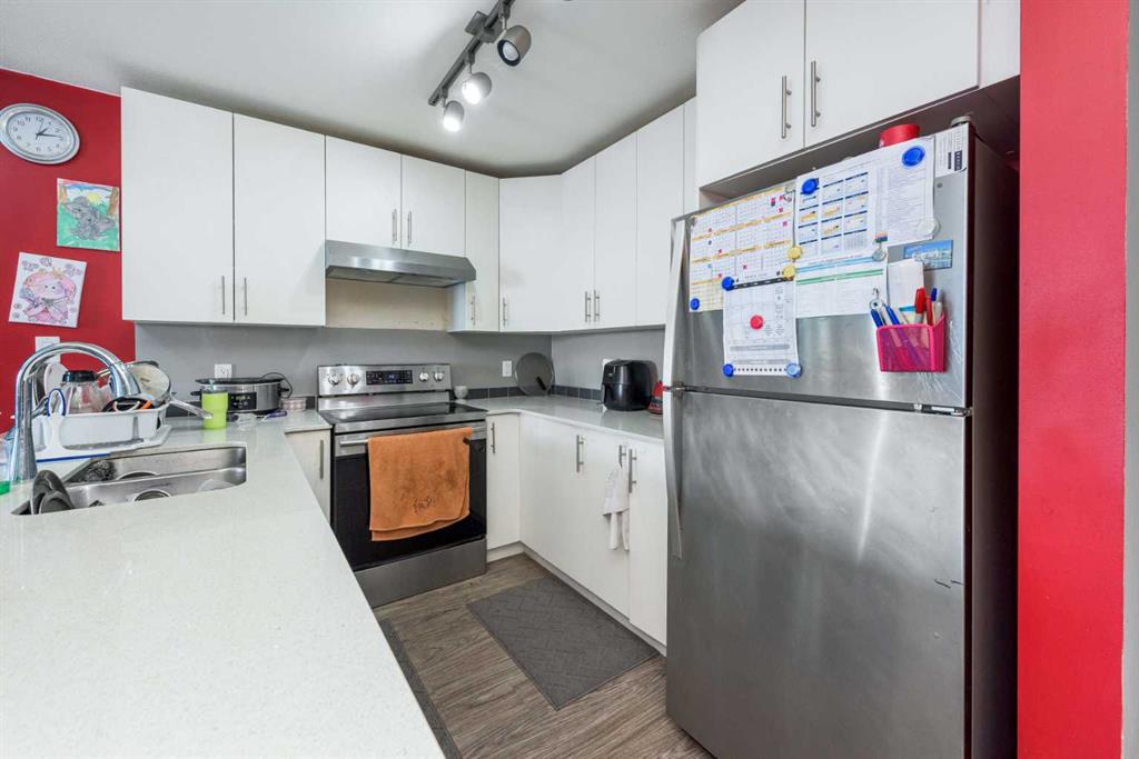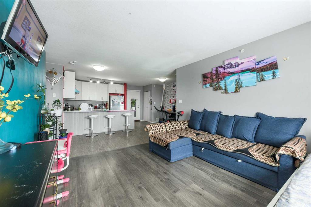 WELCOME to this Top floor 2 bedroom condo in a 4 storey high apartment building. The impressive noise reducing features include triple pane windows and floor & wall assemblies engineered to provide top rated soundproofing. This spacious unit 839 sqft boasts an open floor plan with contemporary island kitchen, with white quartz countertops, stainless steel appliances and laminate flooring. The Dining space is ideal for entertaining family and friends. Abundance of storage including large laundry room with washer and dryer. The garden door opens to the large covered South facing balcony with ample space for relaxing and year round BBQ's. SOUTH FACING BALCONY MEANS SUN LIGHT THE WHOLE DAY. BUILDING COMPLEX FEATURES THE ENTERTAINMENT FACILITY WHICH INCLUDES THE FITNESS GYM AND PARTY HALL WITH FULL KITCHEN THAT HAS A GATHERING CAPACITY UPTO 25 PERSONS . The titled, heated underground parking and 35 plus visitor parking stalls completes this lovely home. Enjoy an affordable carefree lifestyle. Near by Amenities Includes various shopping plazas including restaurants, Dollar store, and Gas stations, Combined Primary and secondary School is at the walking distance, Calgary International Airport is 10 minutes away. Building complex also features Bicycle storage, fenced pet play area and vegetable grow garden which includes elevated grow beds.