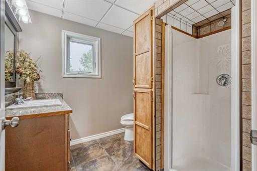 Tranquility, Peaceful, Beauty, are just a few words to describe this remarkable property. Sitting on top of the hill with stunning views of the valley, this 15 acre property has mature trees, a creek bordering the property, open meadows, wild berries, and marsh lands. Located on the edge of Carbon, you feel like you are away from it all yet you can walk to groceries, restaurants, the swimming pool, beach volleyball, tennis court, ball diamond, and the kids can walk to school. Not only that, the property has municipal water and sewer – WOW! Adding even more value is the ability to subdivide the property if desired (with municipal approval). Easy commutes to Calgary (under an hour), Airdrie (45 min), or Drumheller (20 min). The home rests beautifully amongst a variety of mature trees and rolling landscape… walk the property and pick saskatoon berries off the bursting bushes, and in the winter, enjoy the amazing toboggan hill and flat meadow as a great place to build a hockey rink. With 2,543sq’ above grade, there is plenty of room in this home where pride of ownership boasts stunning condition. Develop the 817sq’ unfinished basement for a total of 3,360sq’. 3 bedrooms, 3.5 bathrooms, this home would be fantastic as a multi generational home, Bed & Breakfast, or AirBnb. Enter the home to find a spacious foyer leading to the converted log cabin turned bedroom! Complete with vaulted paneled ceiling, lofted storage and half bath. An additional 4-piece bathroom can be accessed from the hallway. The mudroom features of storage and front load washer and dryer. Acting as a secondary entrance to the home, the mudroom can be entered through the expansive east facing enclosed porch. The heart of the home is the massive kitchen with hardwood floors and vaulted ¼ sawn white oak paneled ceiling detail. The spacious family room and living room features a Mt Vernon Quadrafire 50lb hopper pellet stove and access to a west facing deck. Another bedroom and 3-piece bathroom complete the main level. Upstairs in the master retreat! Vaulted ceilings, spacious walk-in closet, 4-piece ensuite with soaker tub, and private west facing deck to take in the unbelievable views across the valley! There are so many other incredible features in this home… All bathroom and bedroom walls are insulated for privacy, bedrooms have solid core doors, the ceiling below the master bedroom is insulated, Jeldwin and Lux windows, vaulted ceilings nearly everywhere in the home, Central Vacuum, metal roof, R/O to the laundry room sink and kitchen fridge, NEW 2-stage furnace, and NEW propane hot water tank (2021). Throughout the property, there are several out-buildings including, a couple sheds, heated workshop, storage, and lean-to. A brand you deck on the edge of the hill is an amazing place for lunch or your morning coffee. There is plenty of room to build a secondary workshop or large garage. Gas line is at the edge of the property or keep the propane for heating. Come and see this spectacular acreage!