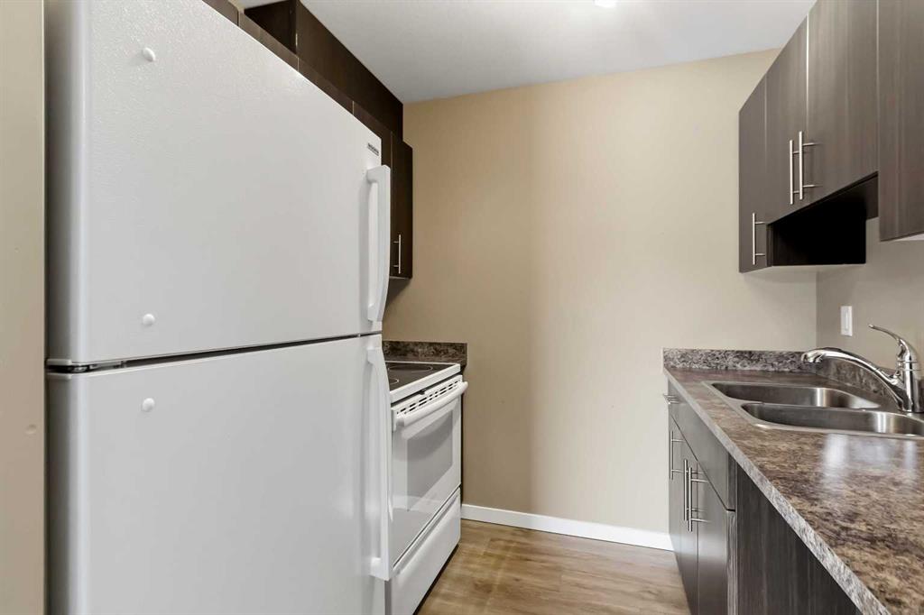 Top-floor, single-level townhouse in one of Fort McMurray's most established communities. Three bedrooms, over 900 sq ft, and move-in ready. This one checks the boxes without breaking the budget. Inside, you'll find a bright, open layout anchored by a corner fireplace, rich espresso brown cabinetry, white appliances, and in-suite laundry. A full bathroom, separate storage room, and underground heated parking round out everything you need for comfortable, low-maintenance living. Step out onto the southwest-facing balcony and catch those Fort McMurray sunsets. Parks, trails, and river access are right at your doorstep, and with direct access to the bus route, the commute is equally effortless. Professionally painted and cleaned (carpets included) and available for immediate possession. **Hood fan and dishwasher on order and will be included in the purchase.