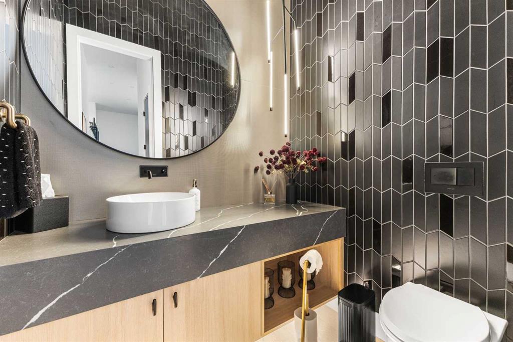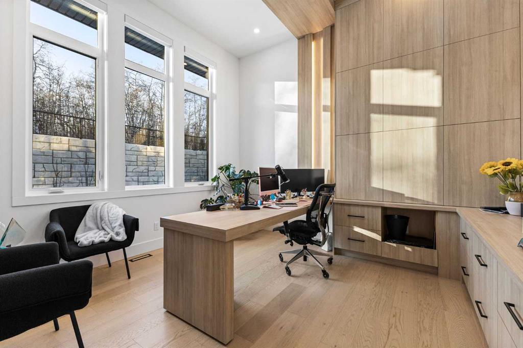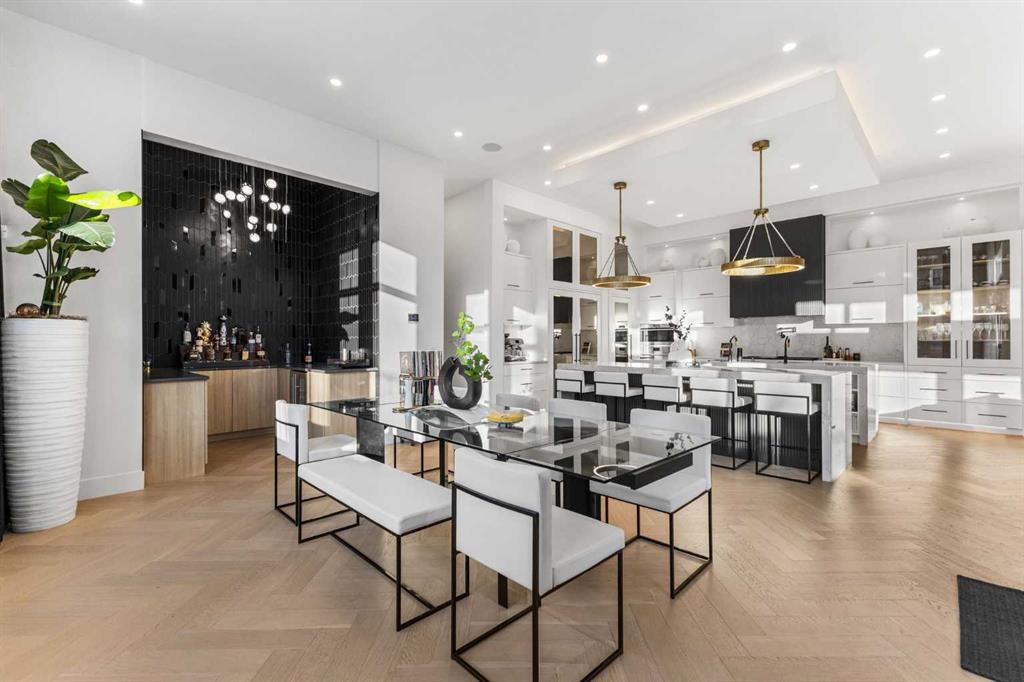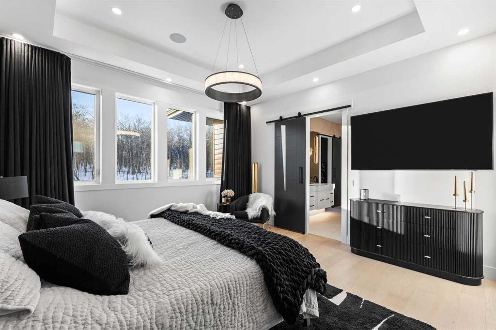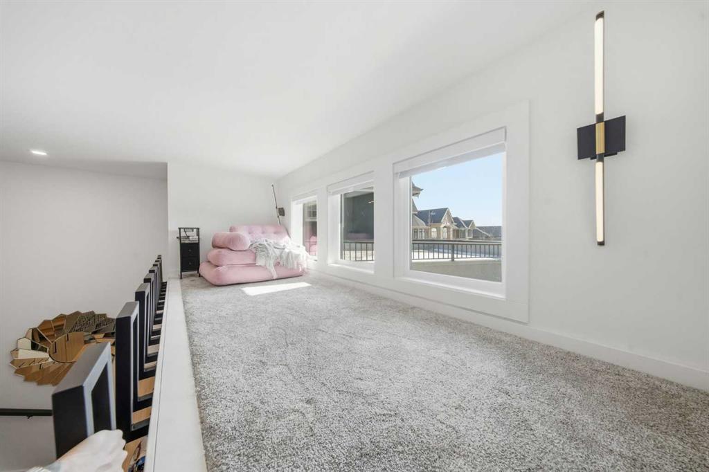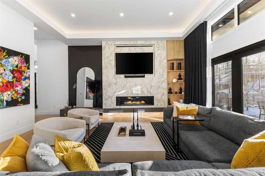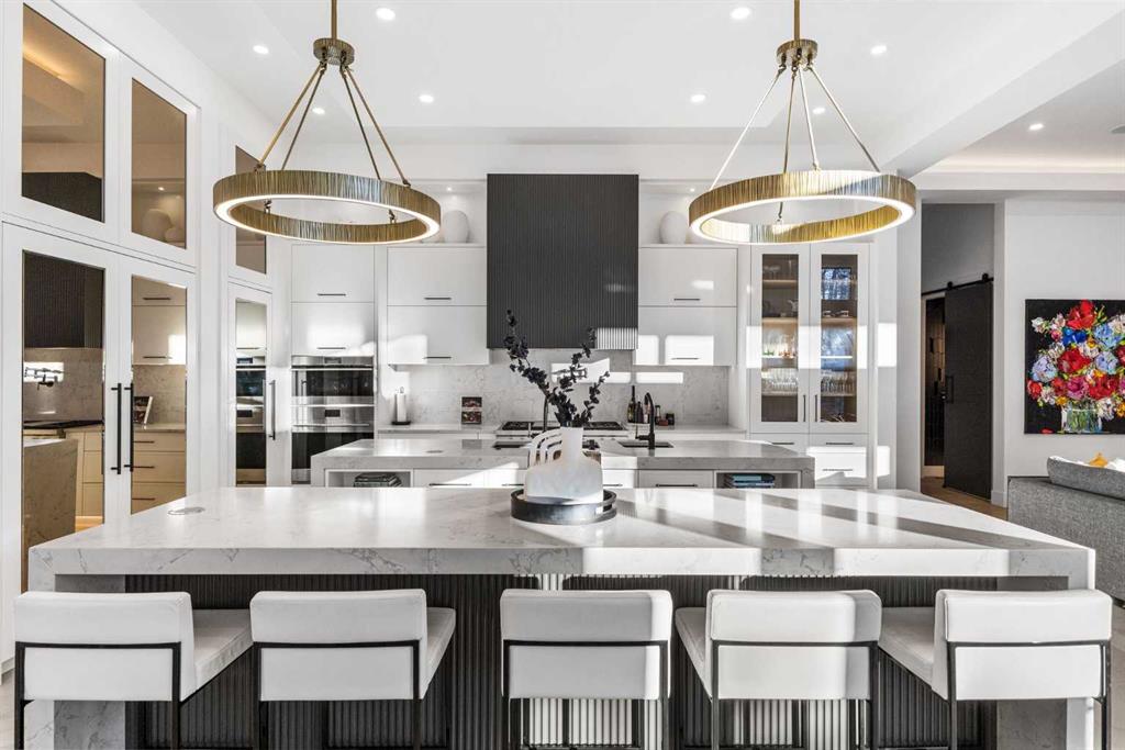 Homes like this don't come up often. Almost 7,000 sq ft of total living space, soaring 12-foot open-concept ceilings on the main floor, Sub-Zero and Wolf appliances, full Control4 automation, triple pane windows, motorized blinds and custom drapes throughout, and the kind of finishes that make it clear no corners were cut this is the kind of property that stops you the moment you walk through the door. The main floor is built for real life and serious entertaining. The kitchen is expansive with a walk-in pantry and a servery right beside the dining room, making hosting seamless from start to finish. Two accordion doors open wide from the main living area directly to the deck and yard, making the transition from indoor to outdoor entertaining completely seamless. The living room is generous without feeling cavernous, and there's a proper main-floor office for those who work from home and need a space that feels like one. A main-floor bedroom with its own ensuite rounds things out beautifully ideal for guests, in-laws, or a nanny suite. Upstairs, the 9-foot ceilings keep things feeling spacious without the grandeur of the main floor just the right scale for a private retreat. The primary suite is the kind of space you don't want to leave. His closet is massive and hers is something else entirely, the kind of boutique-style dressing room that makes getting ready feel like an occasion. A spa-calibre 5-piece ensuite w Steam Shower completes the retreat. Two more bedrooms and a 4-piece bath complete the upper floor, along with a dedicated laundry room right where you need it. The lower level is a genuine surprise and at 10-foot ceilings, it never feels like a basement. A dedicated gym, a wet bar, a private office, and a fifth bedroom it functions as a home within a home. The first rec room is a true home theatre, originally roughed in for a golf simulator with the infrastructure still in place. The second is a perfect billiards room that connects to the bar exactly as it should. This level handles movie nights, teenagers, and out-of-town guests without anyone feeling on top of each other. Then there's the garage - over 1,100 sq ft with a 10-foot door for the boat, the sled, or whatever oversized toys are in the mix. With the footprint to accommodate car stackers, serious collectors will immediately see the potential here. The outdoor space is something you don't expect until you see it. One of the largest lots in the community at a third of an acre, professionally landscaped and thoughtfully designed for how people actually spend their summers. Underground irrigation keeps everything lush without the effort. Gemstone lighting sets the mood after dark. A gazebo and dedicated firepit area give you every reason to stay outside long after dinner. The upper deck is gas-wired and ready for those evenings that stretch well past sunset. The yard is roughed in for a pool, and backing onto a treed community park means the privacy and greenery extend well beyond your property line.